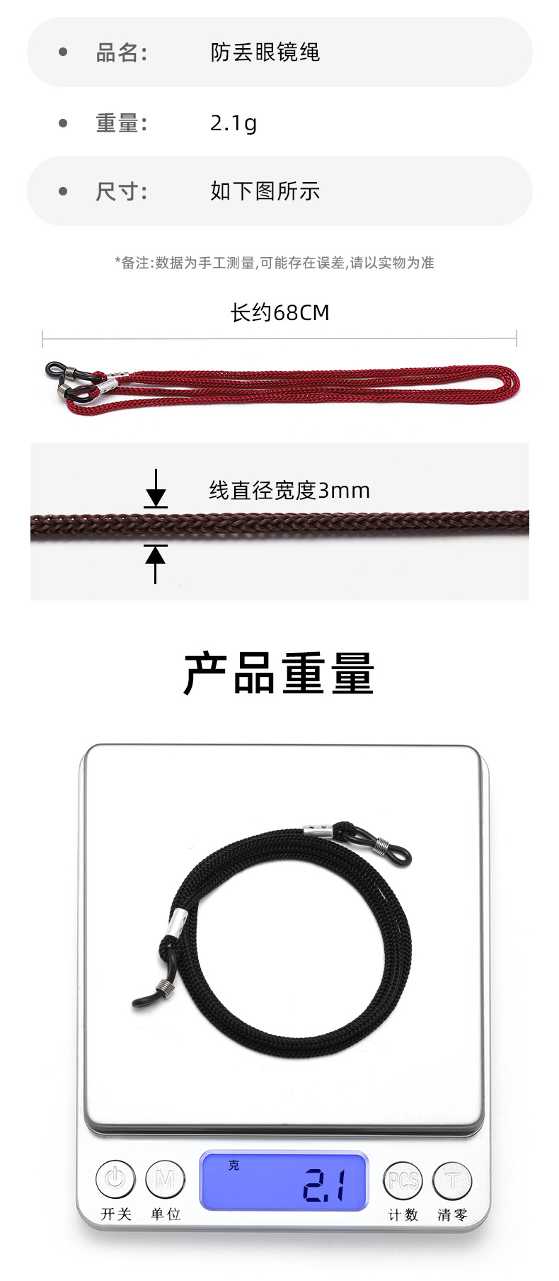 黑色眼镜绳调节老花镜近视太阳镜绳带挂绳挂脖眼镜链防丢防摔绳