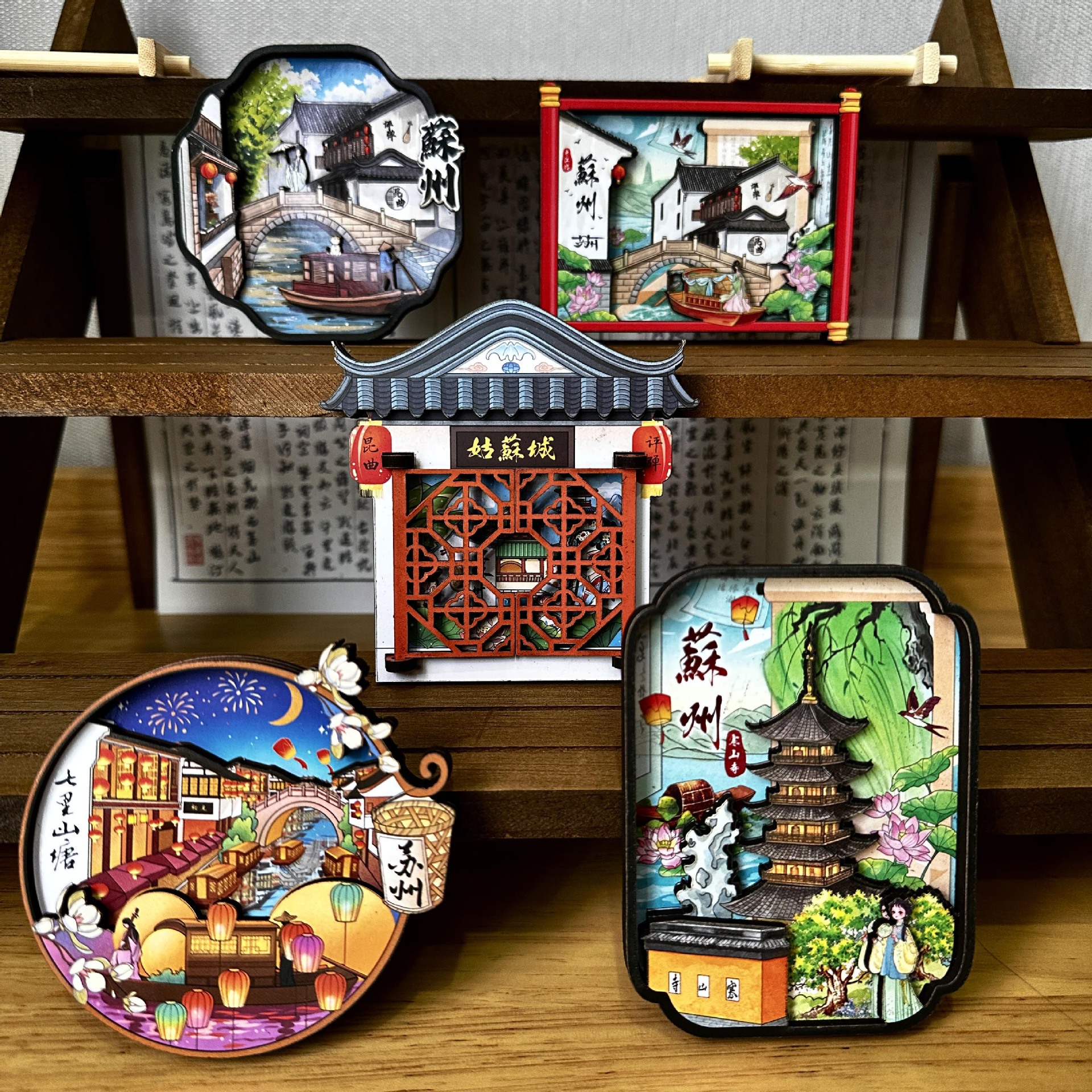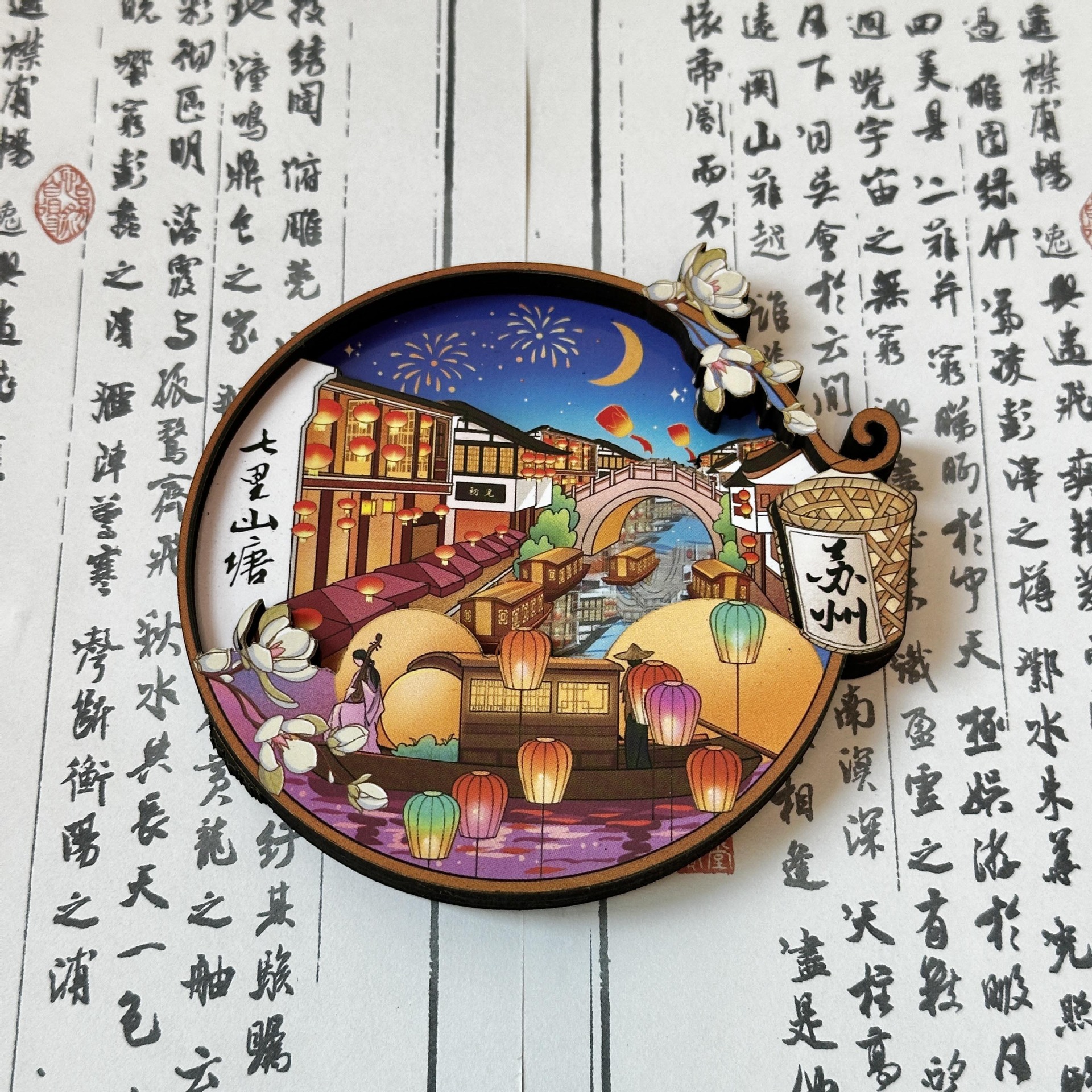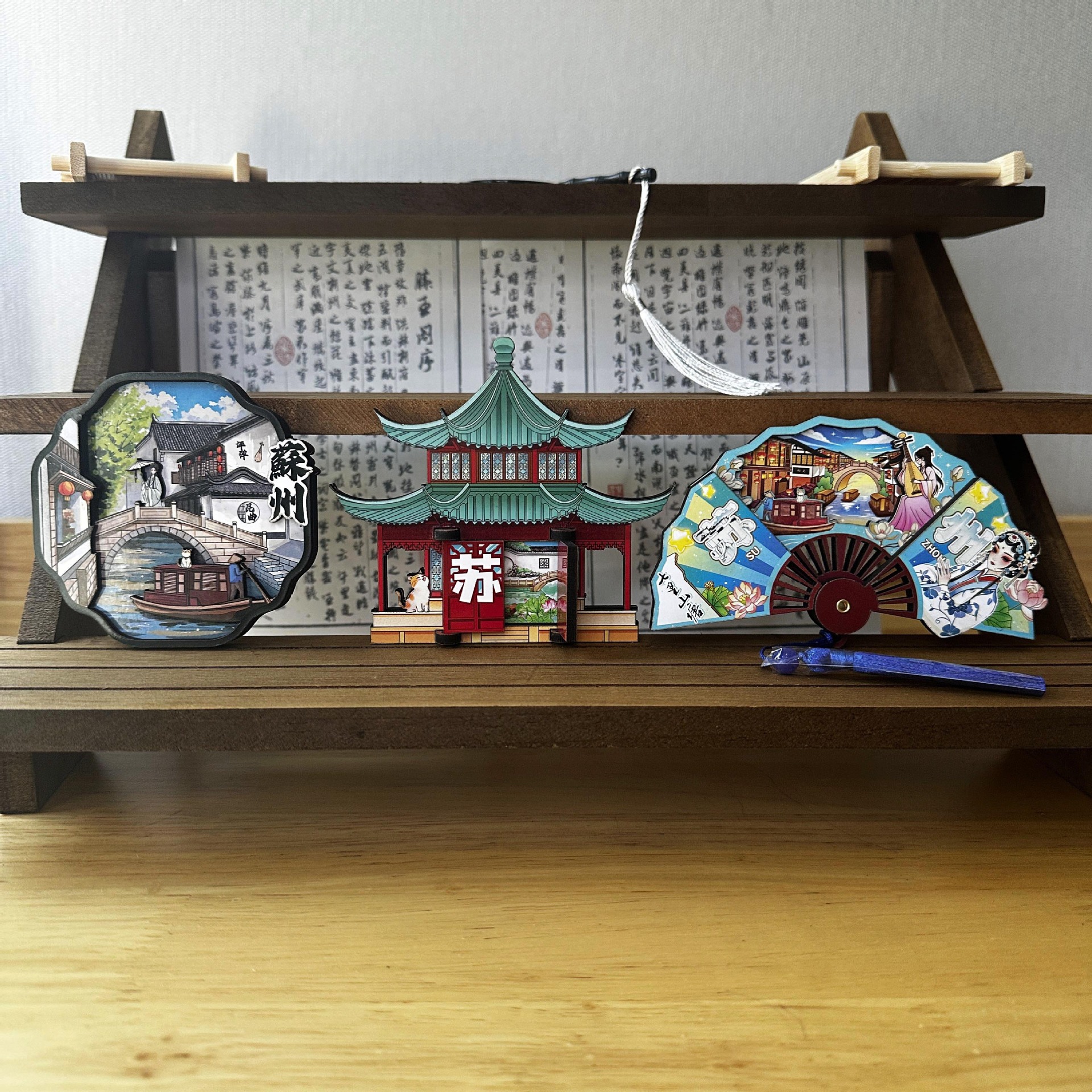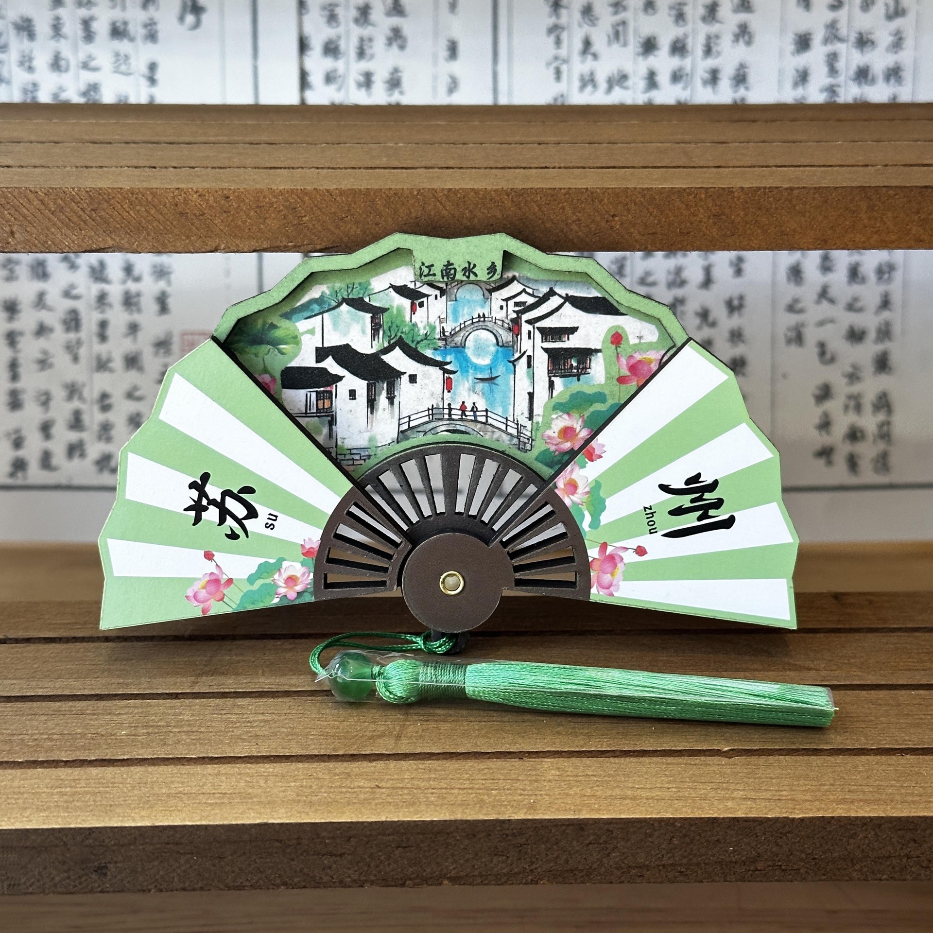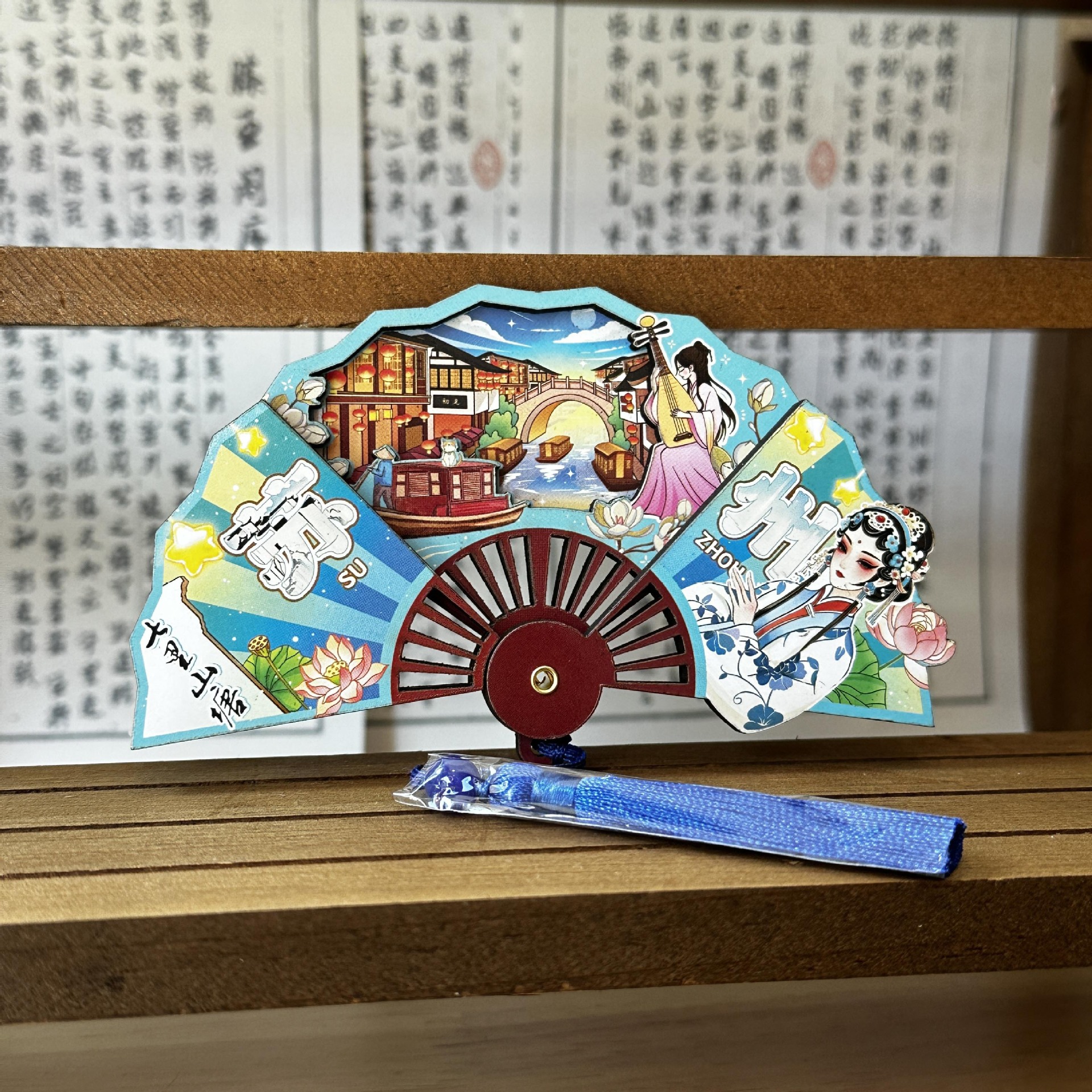 Suzhou wooden China-Chic window opening refrigerator with tassel fan, cultural and creative tourist city landmark, creative souvenir gift
