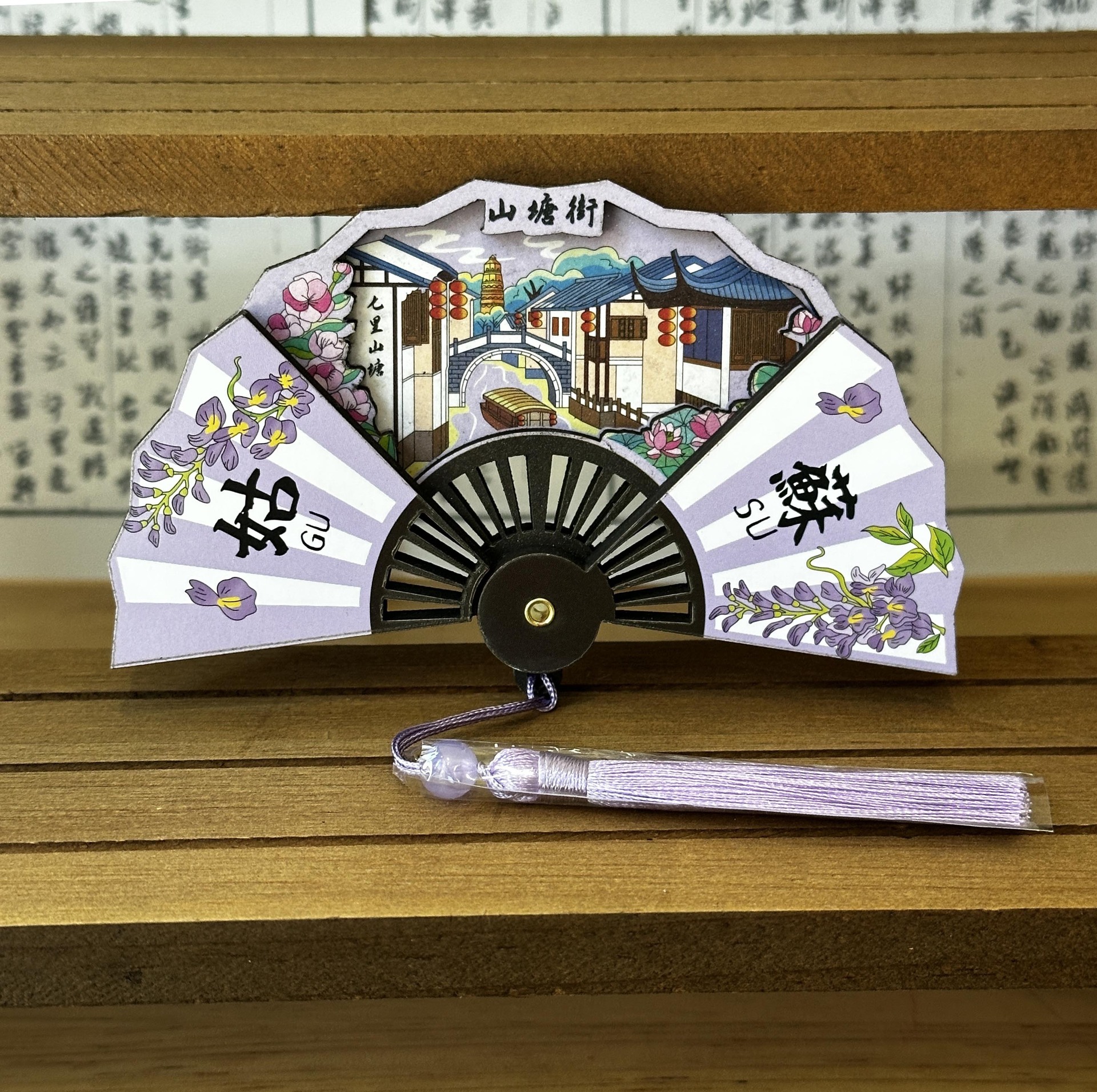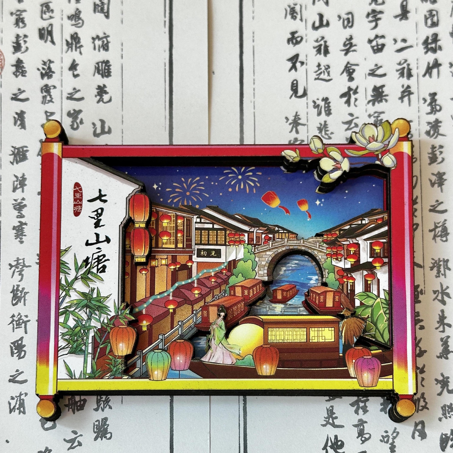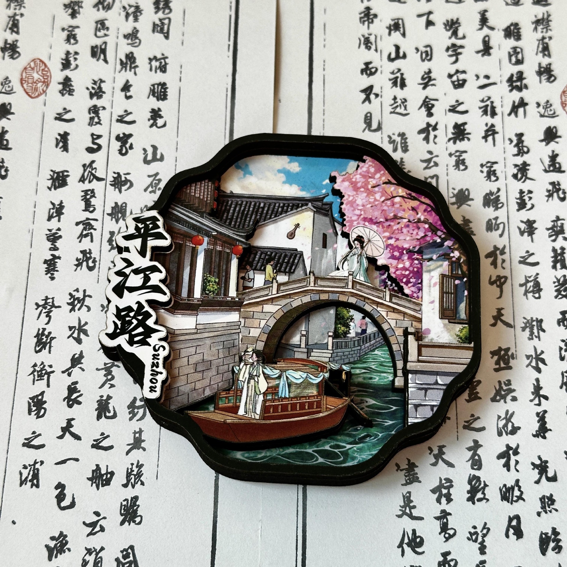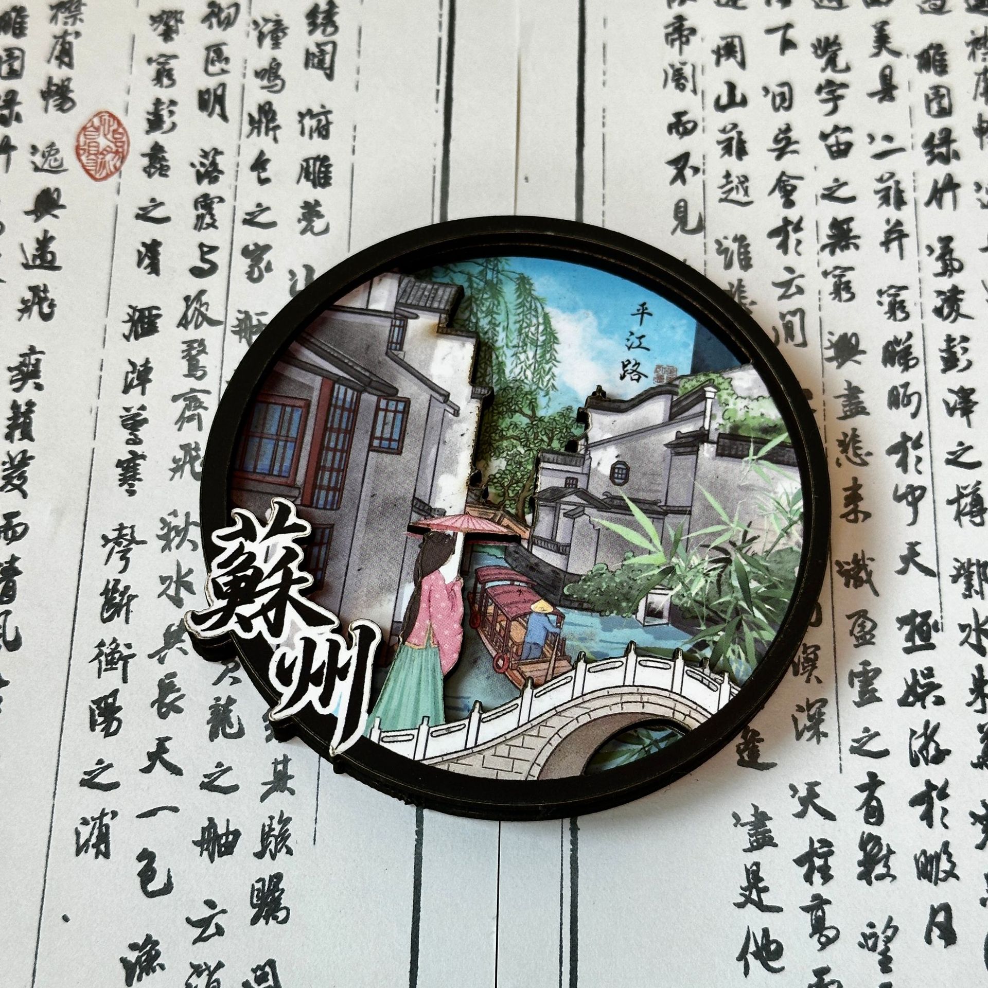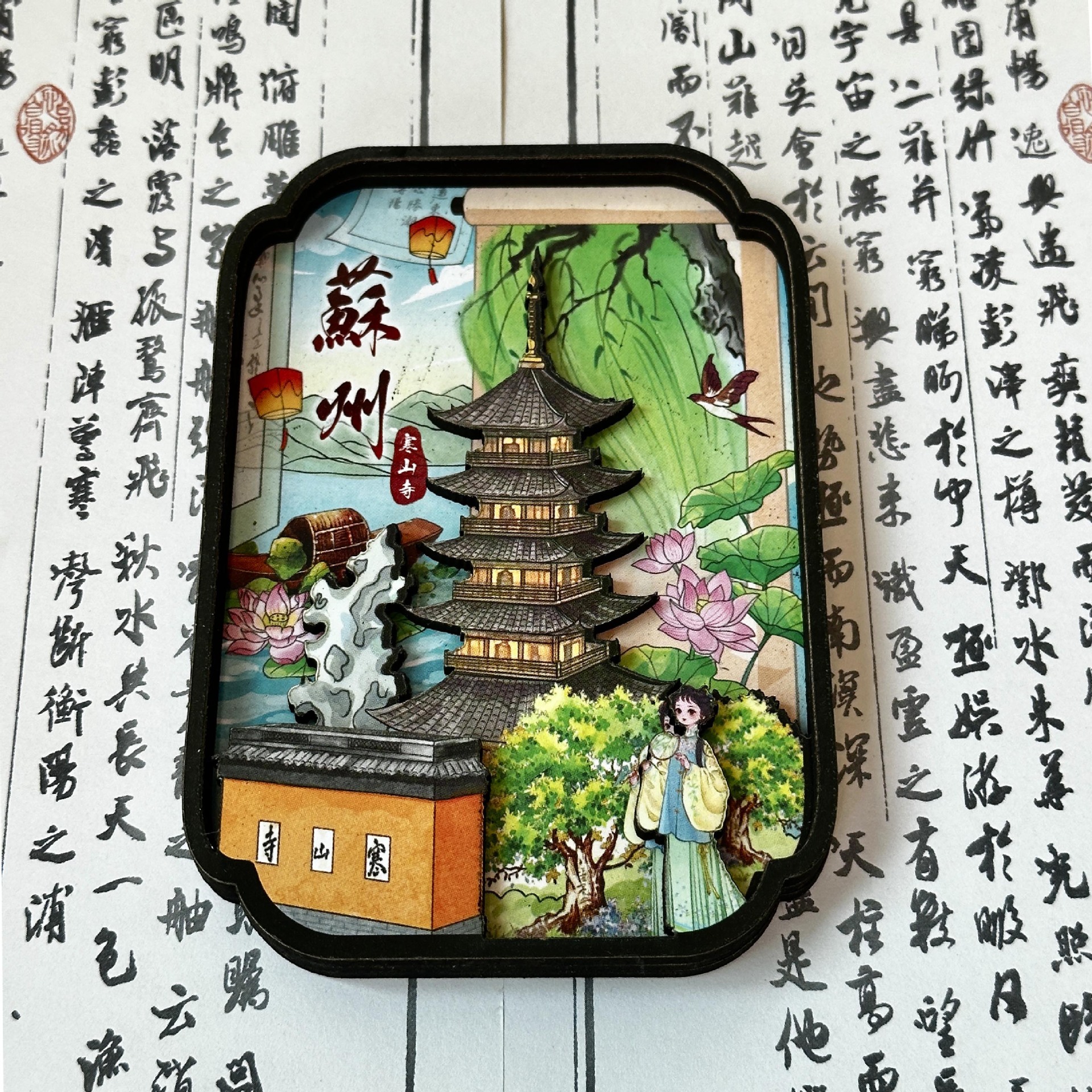 Suzhou wooden China-Chic window opening refrigerator with tassel fan, cultural and creative tourist city landmark, creative souvenir gift