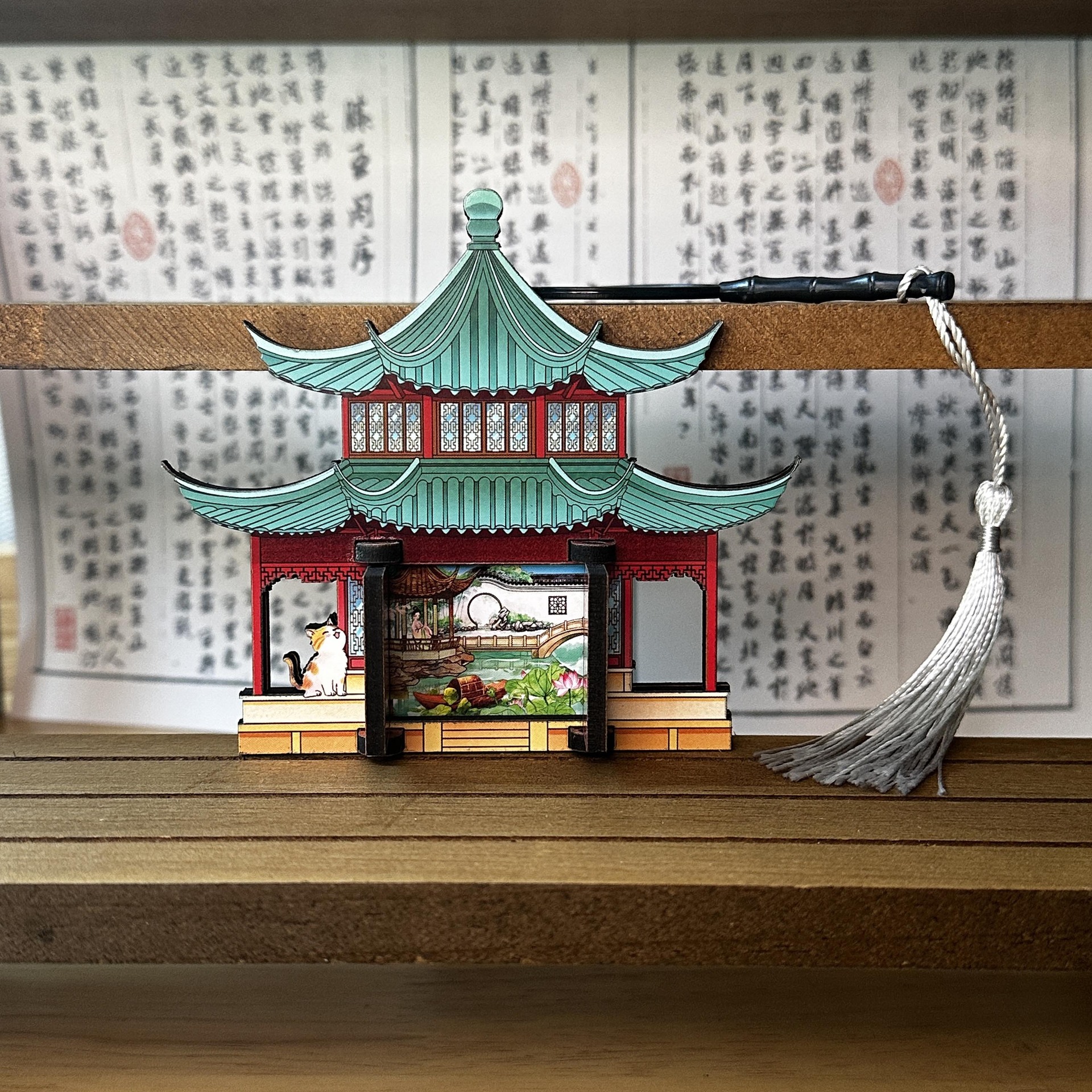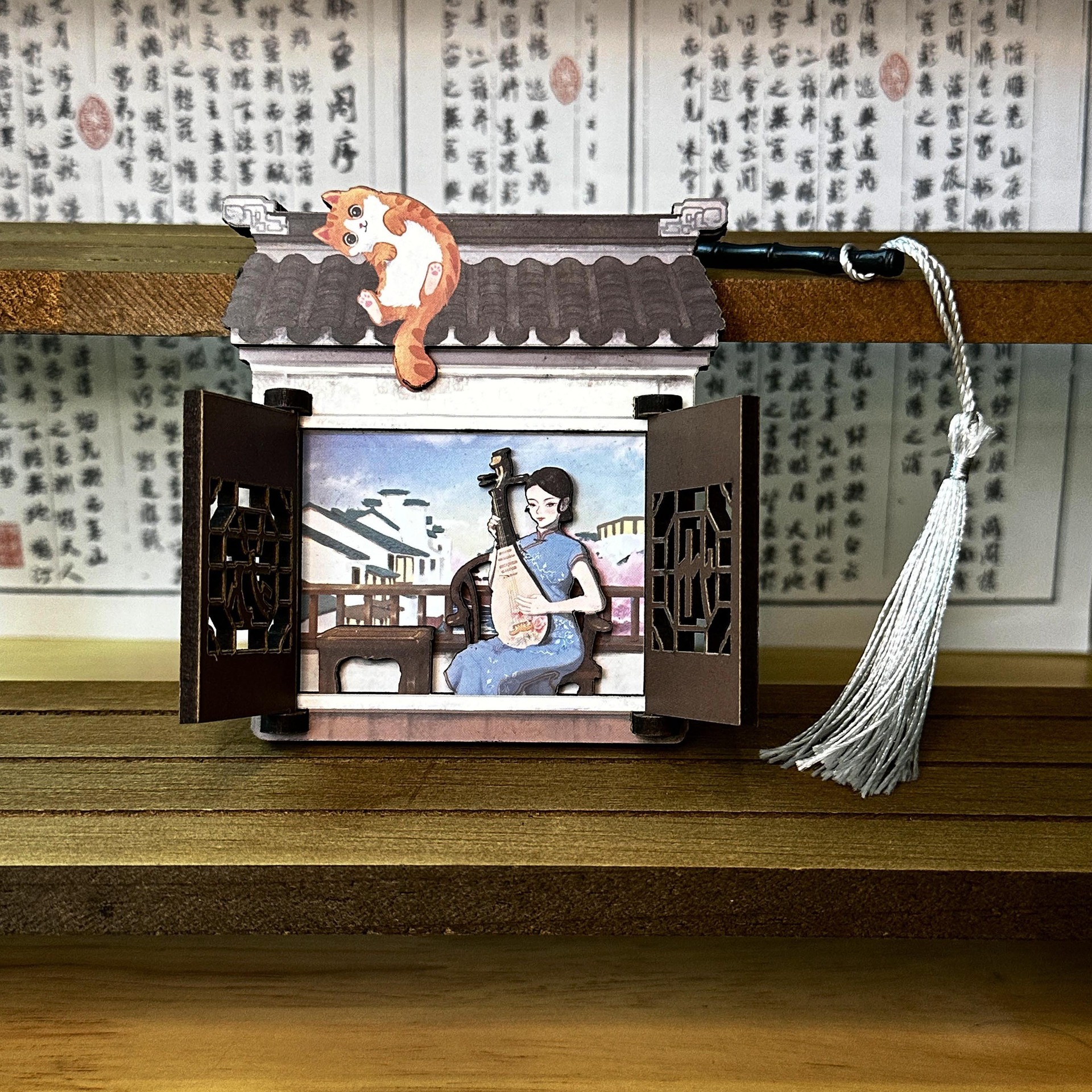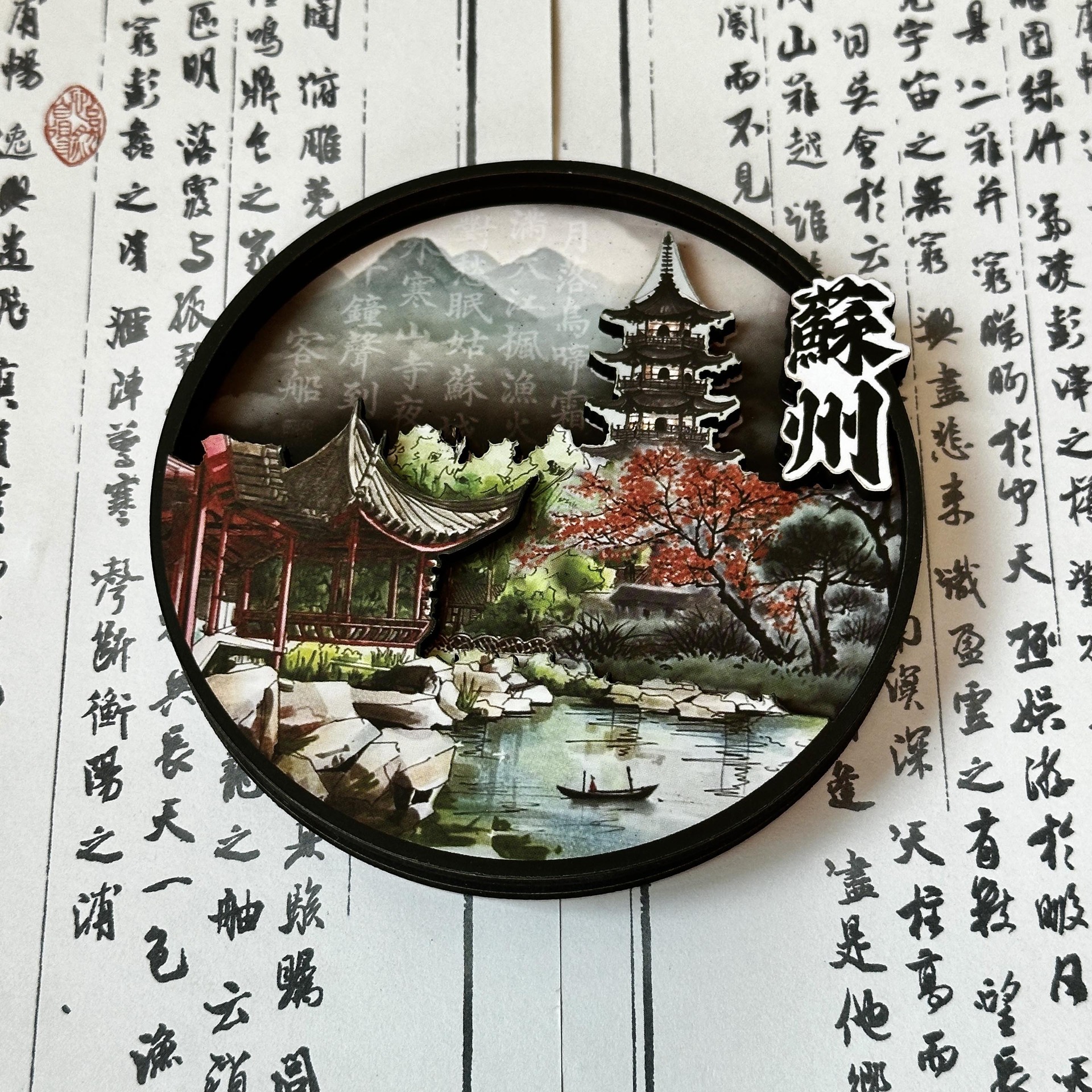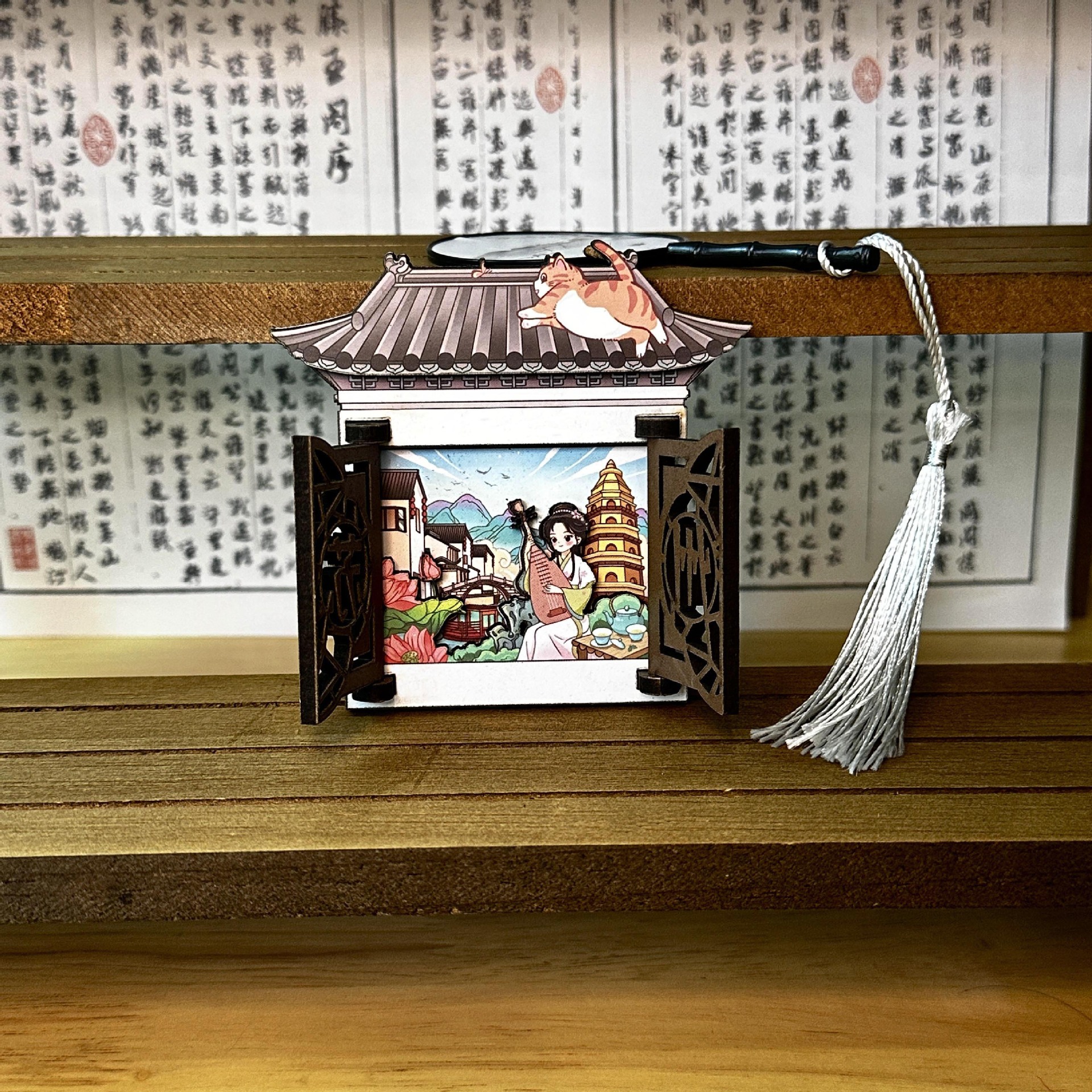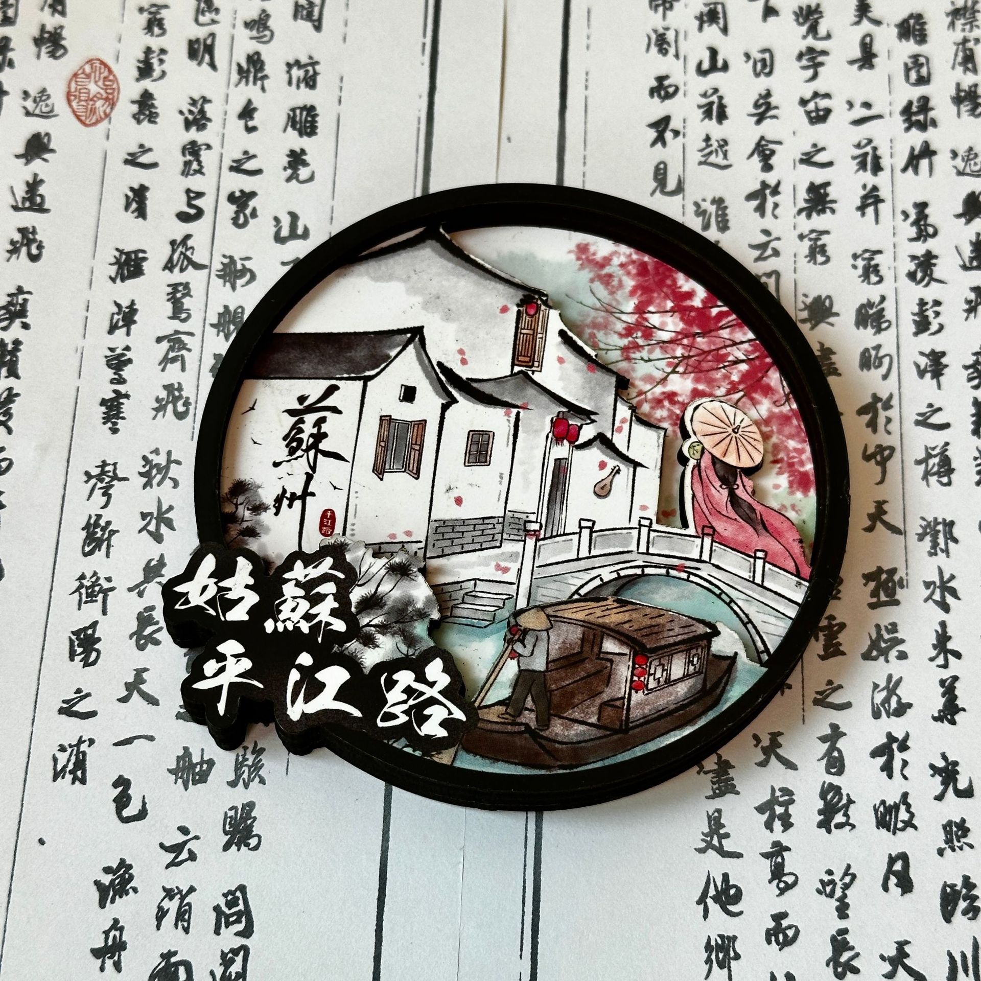 Suzhou wooden China-Chic window opening refrigerator with tassel fan, cultural and creative tourist city landmark, creative souvenir gift