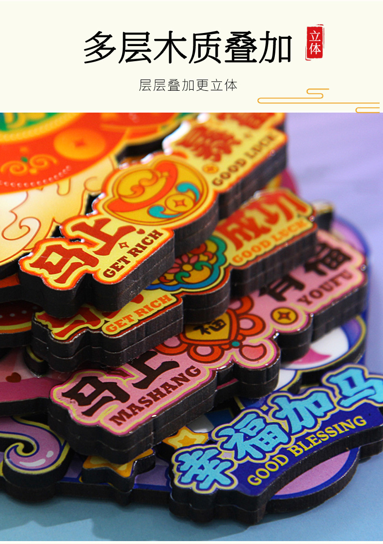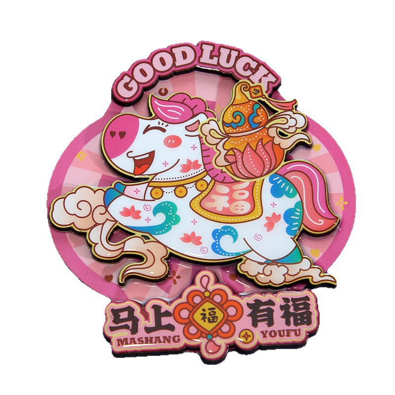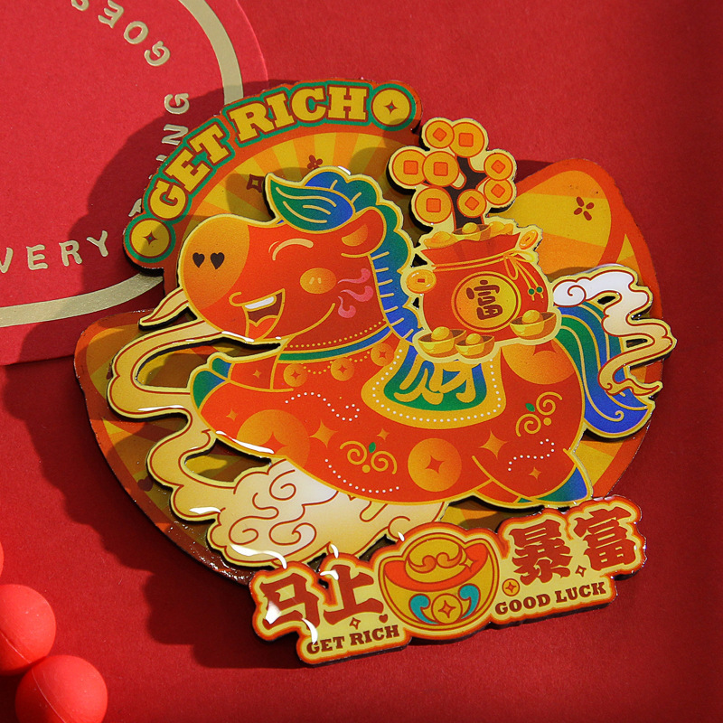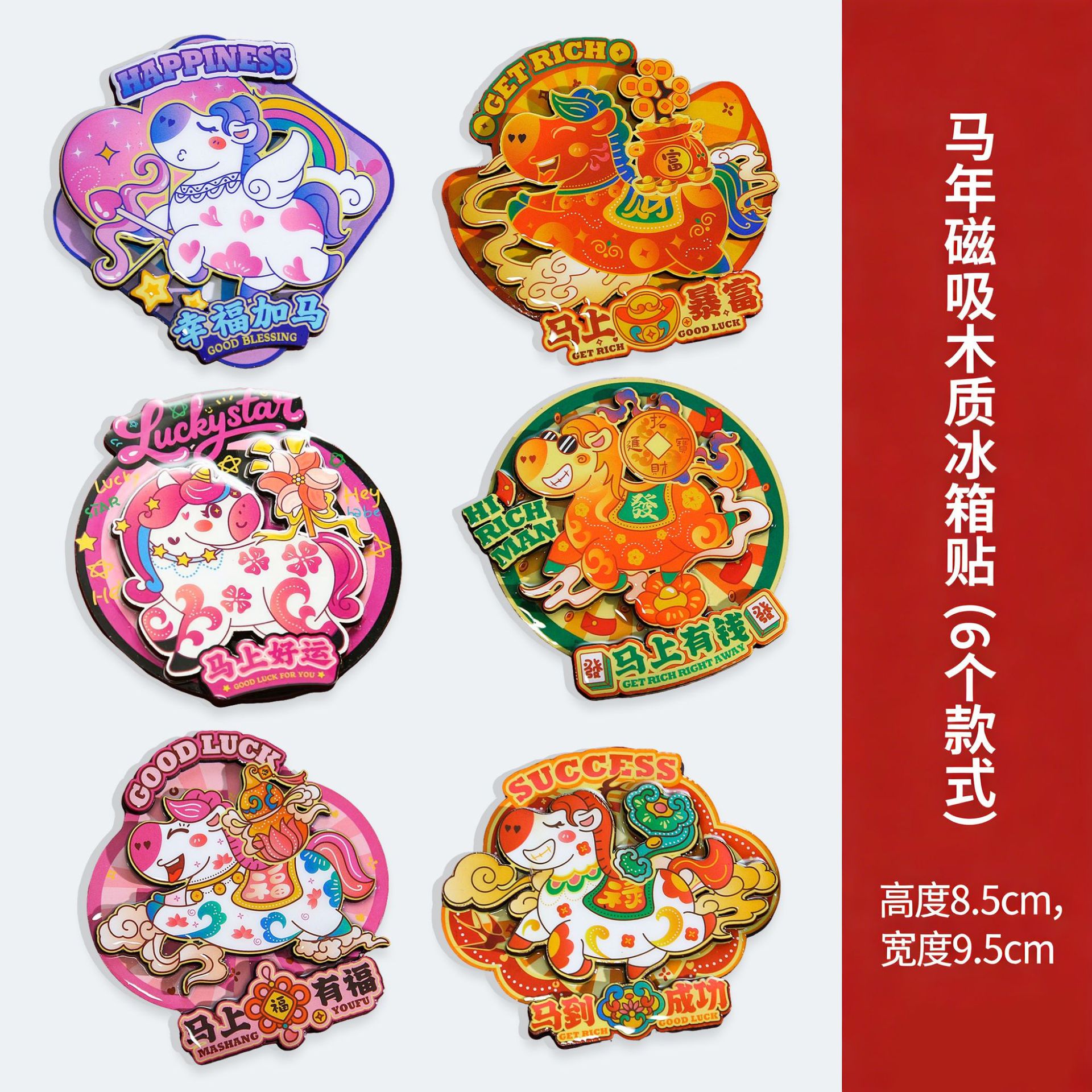 2026 Year of the Horse New Edition Instant Wealth, Lucky Fortune, Refrigerator Sticker Cartoon Cute Cultural and Creative Wood 3D Stereoscopic