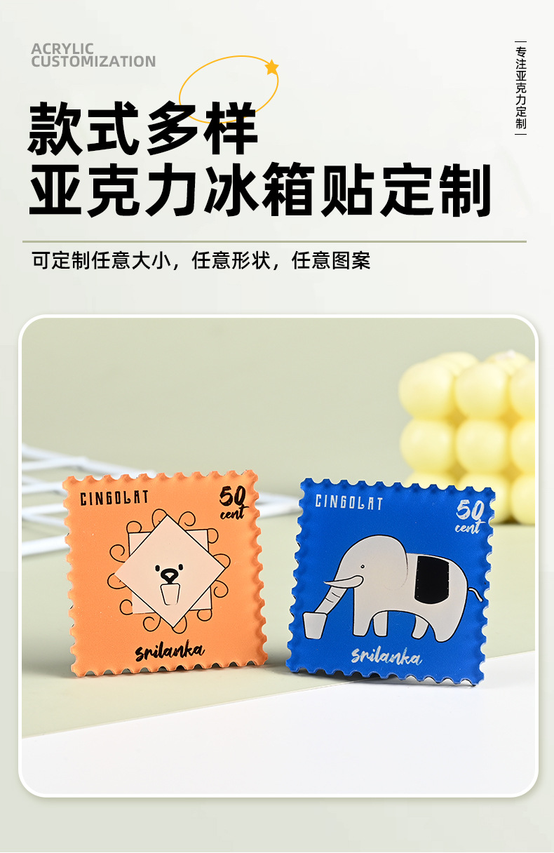Cartoon animal refrigerator stickers, customized stamps, drip molded refrigerator decoration stickers, acrylic shaped DIY carved magnetic stickers