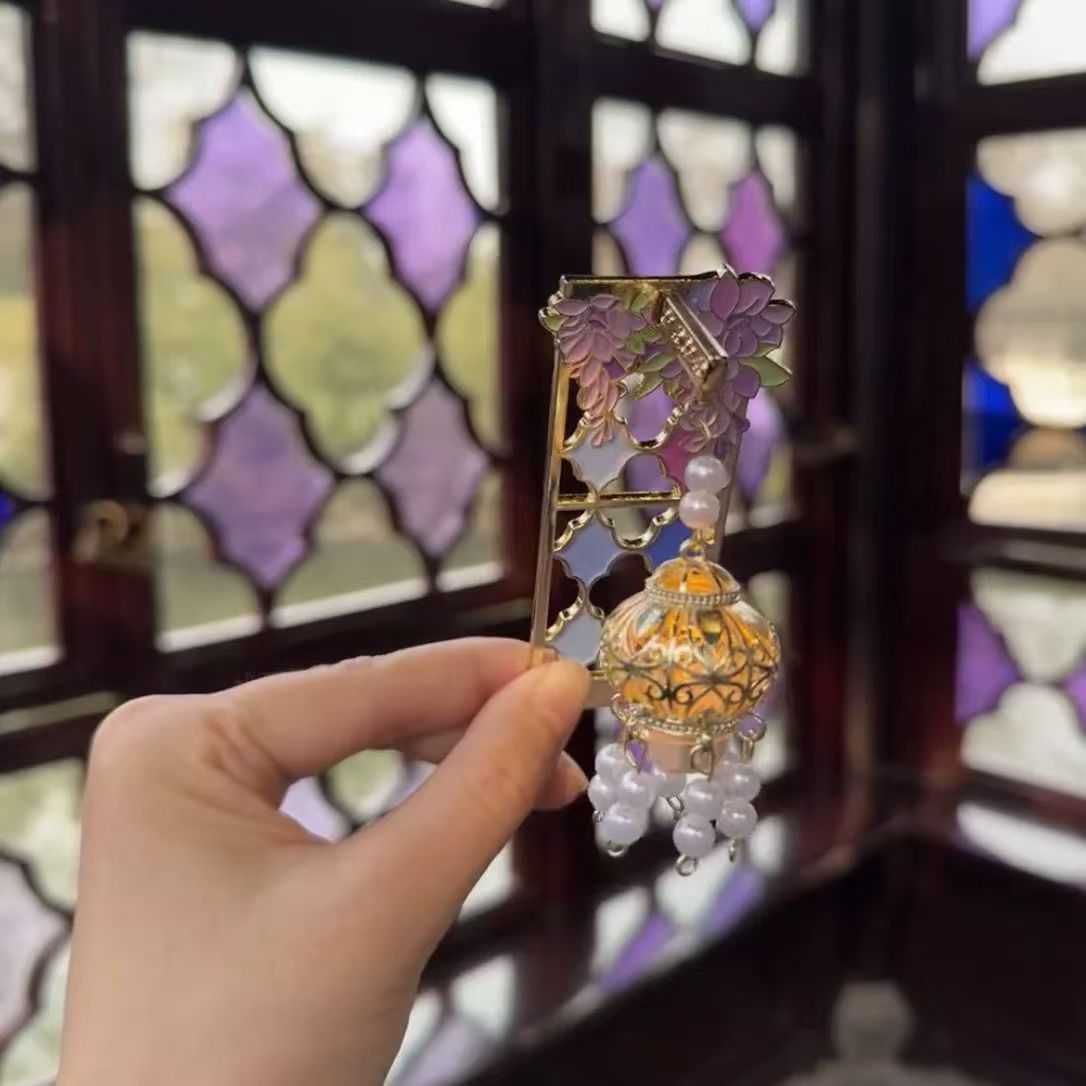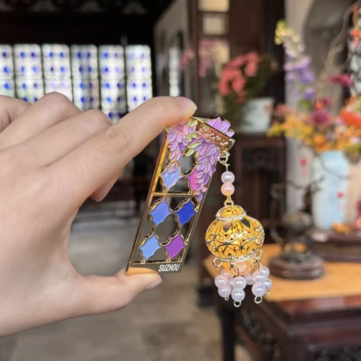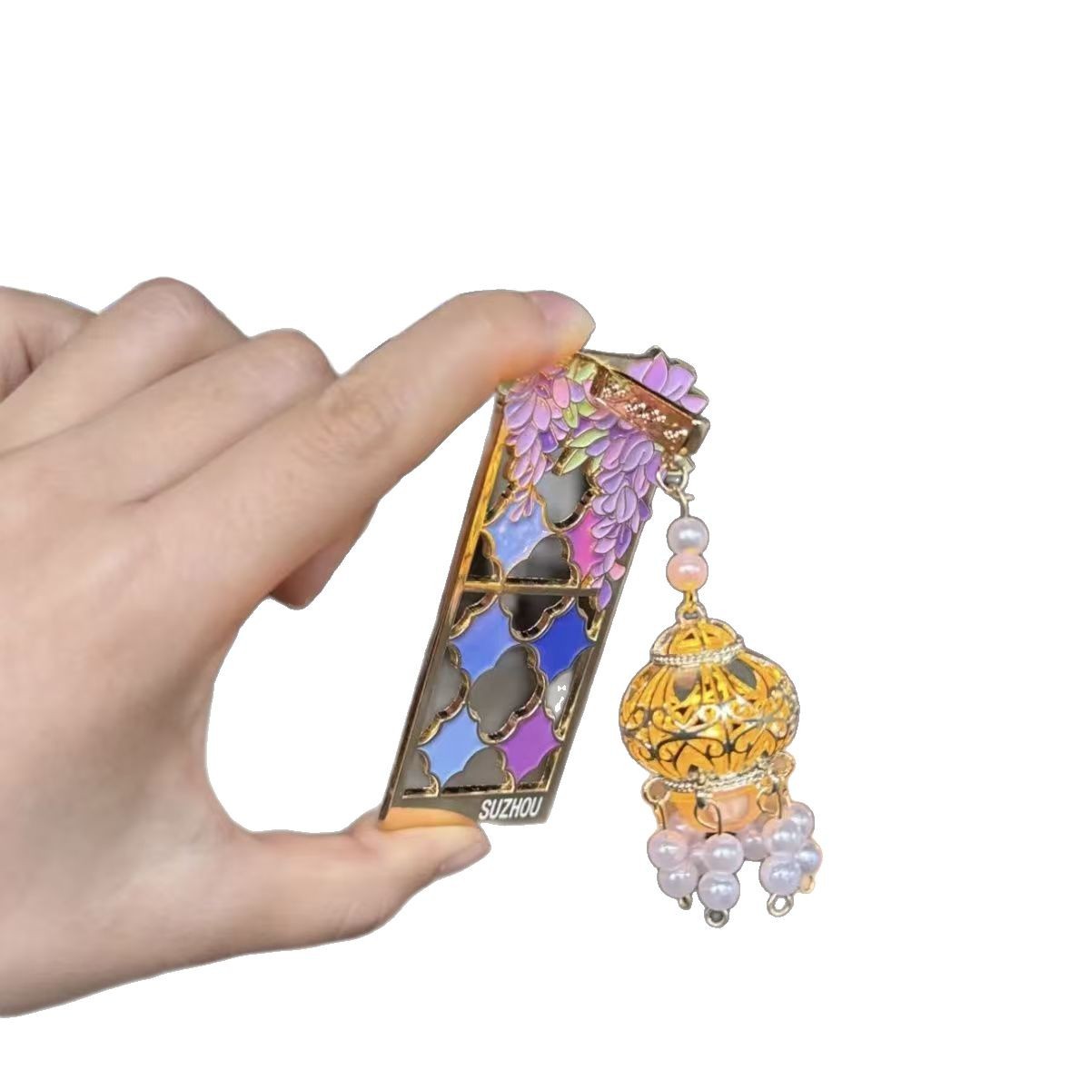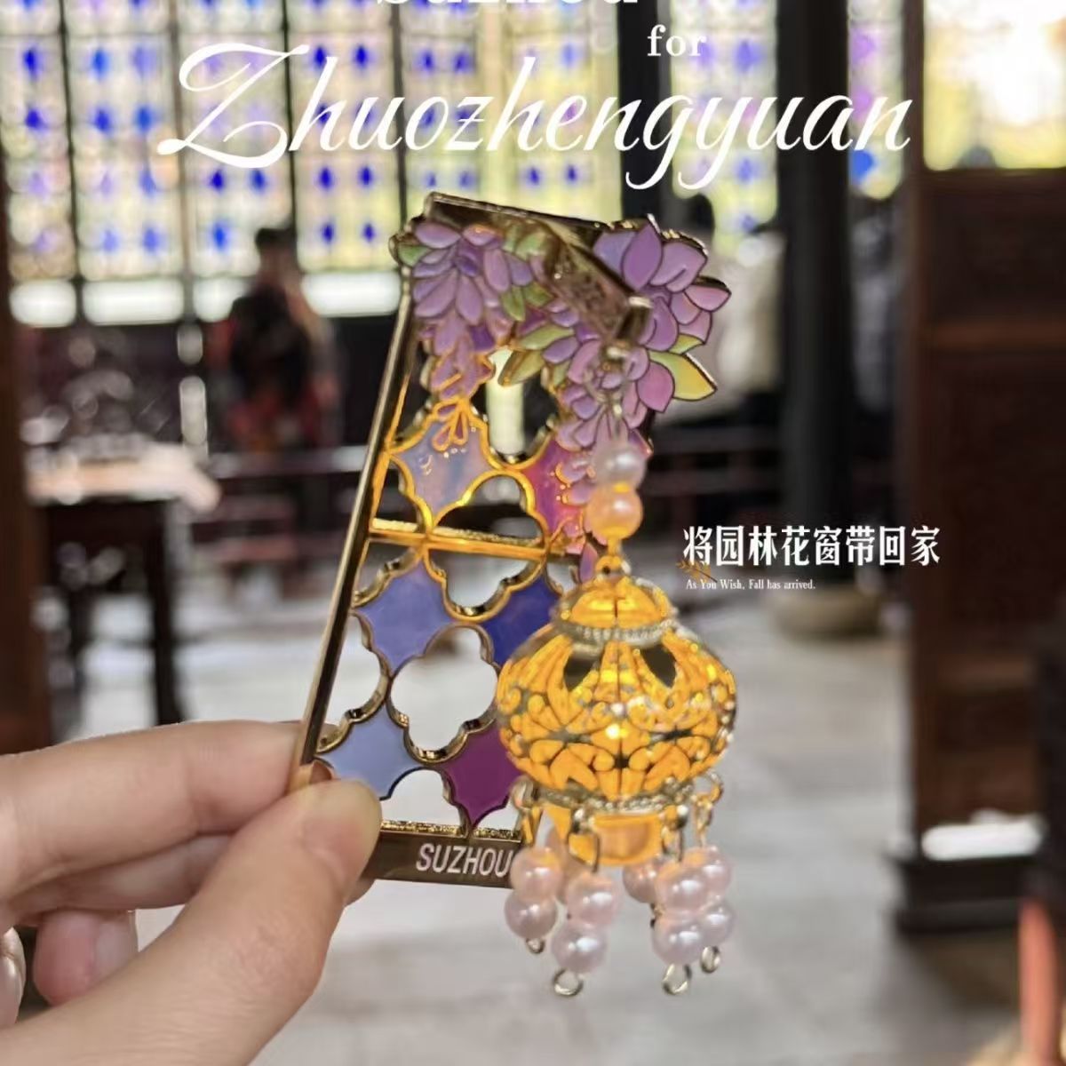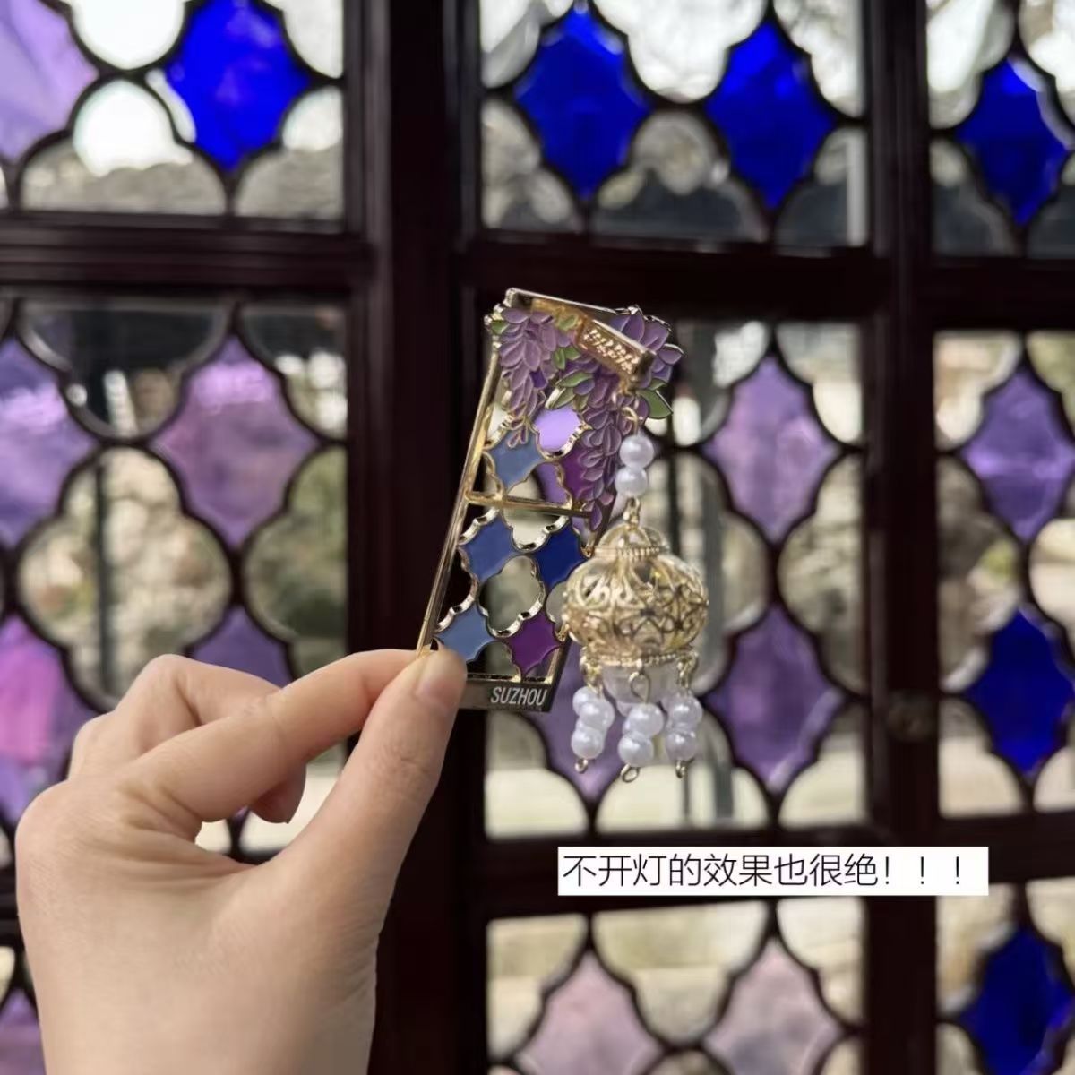 Suzhou Cultural and Creative Humble Administrator's Garden Mandarin Duck Pavilion Purple Vine Flower Transparent Flower Window Luminous Lantern Refrigerator Sticker Tourism Commemorative Gift