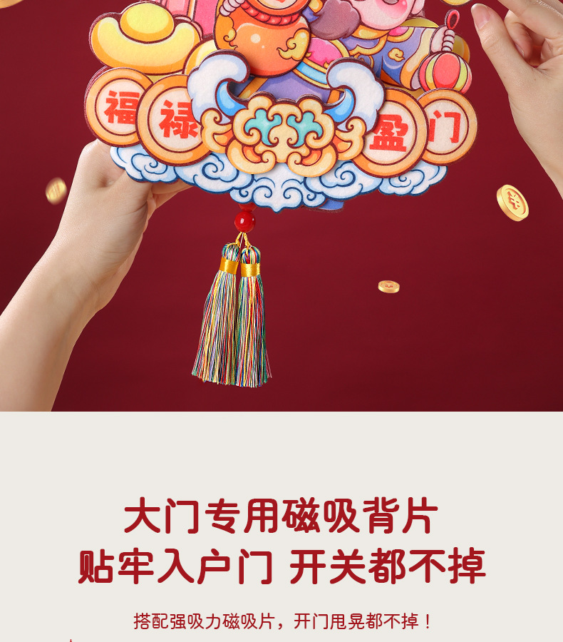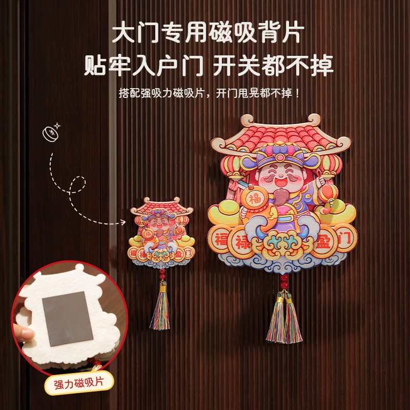 Новый Год Лошади Креативные страны Чао Фу Шэньминь дверь наклеить новогодний мультфильм Милый декор холодильник наклеить деньги ручной магнитный отсос наклейка