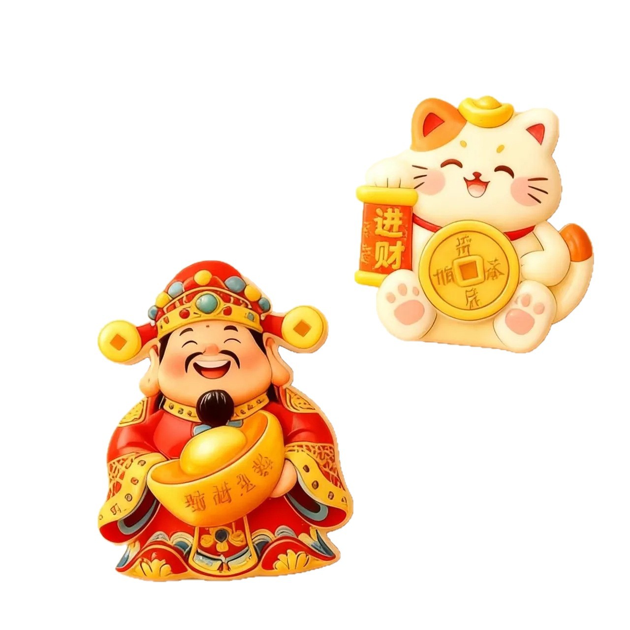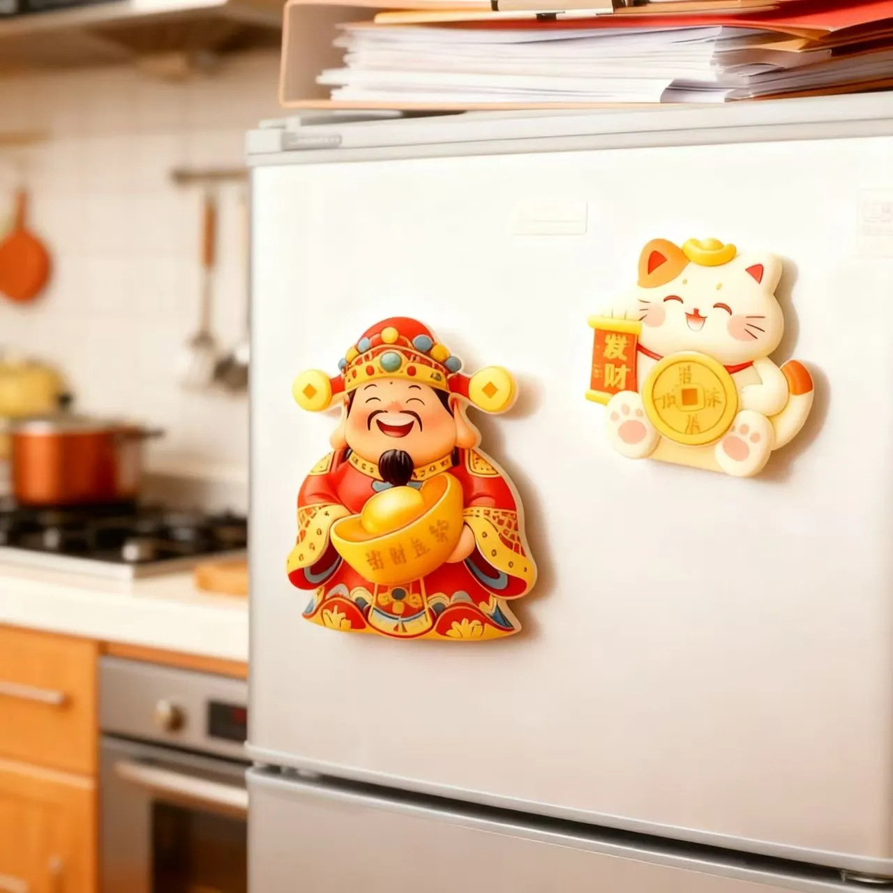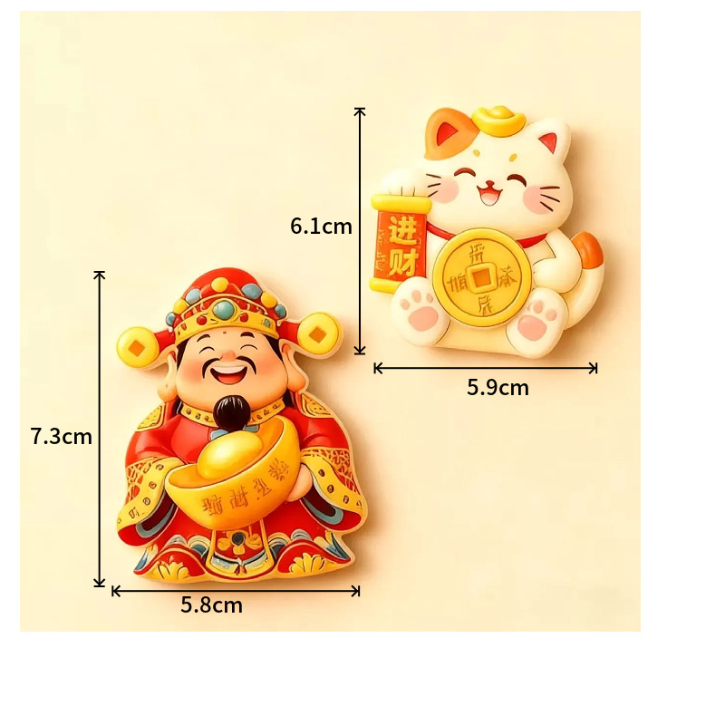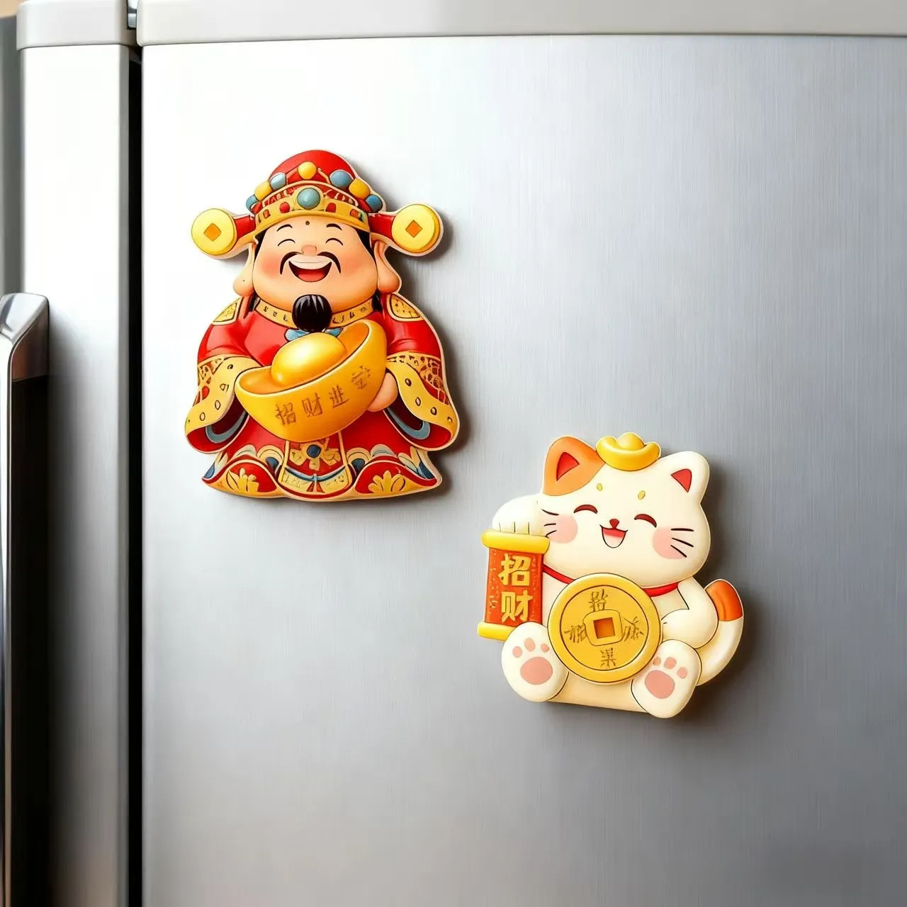 Cute and Creative God of Wealth, Lucky Cat, Refrigerator Sticker, Cartoon 3D Magnetic Tape, Refrigerator Door Decoration, Rotating and Joyful Ornament