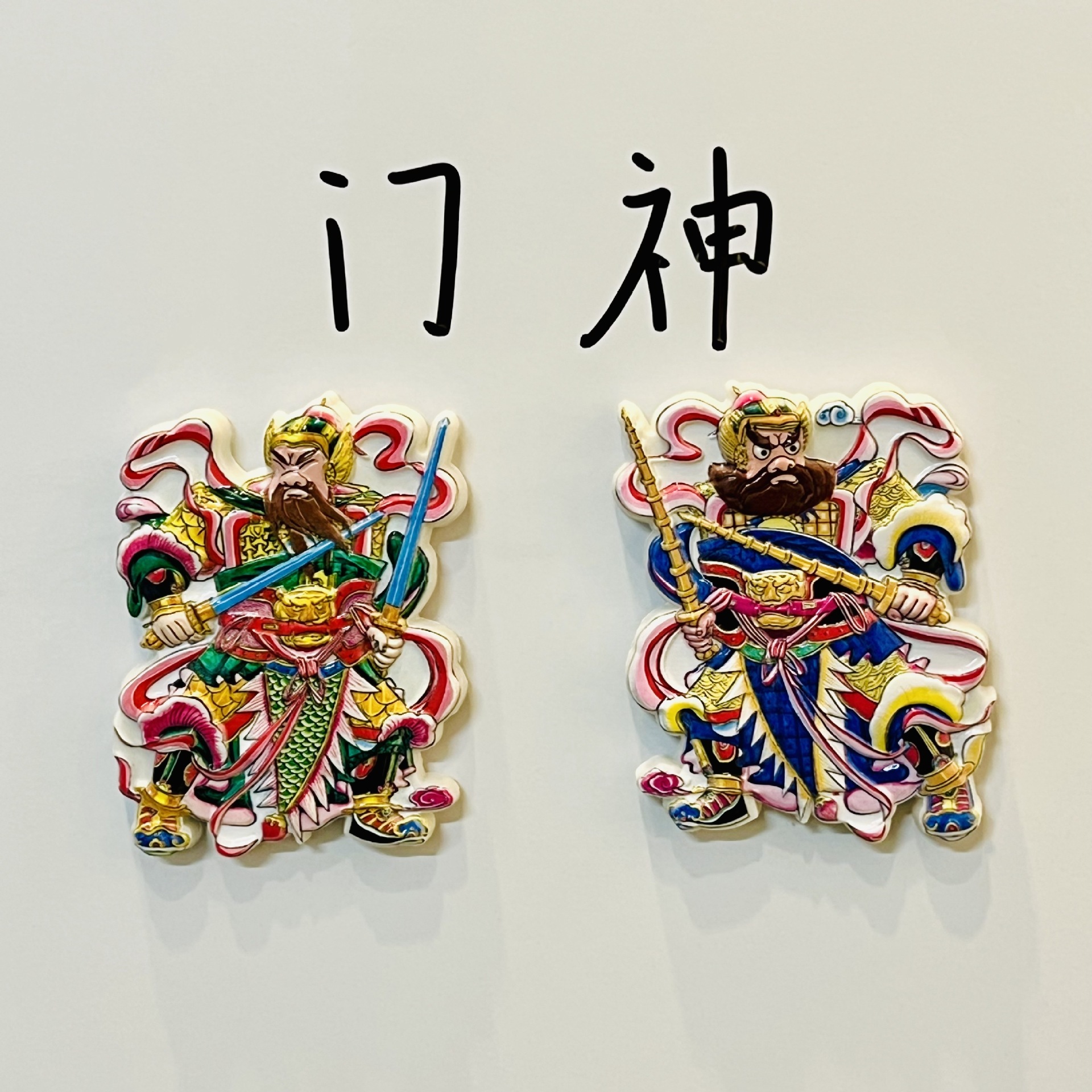 Китайский традиционный стиль творчества Весенний фестиваль Дверь Бог украшает дом трехмерная живопись праздничные подарки холодильник наклейка магнитная