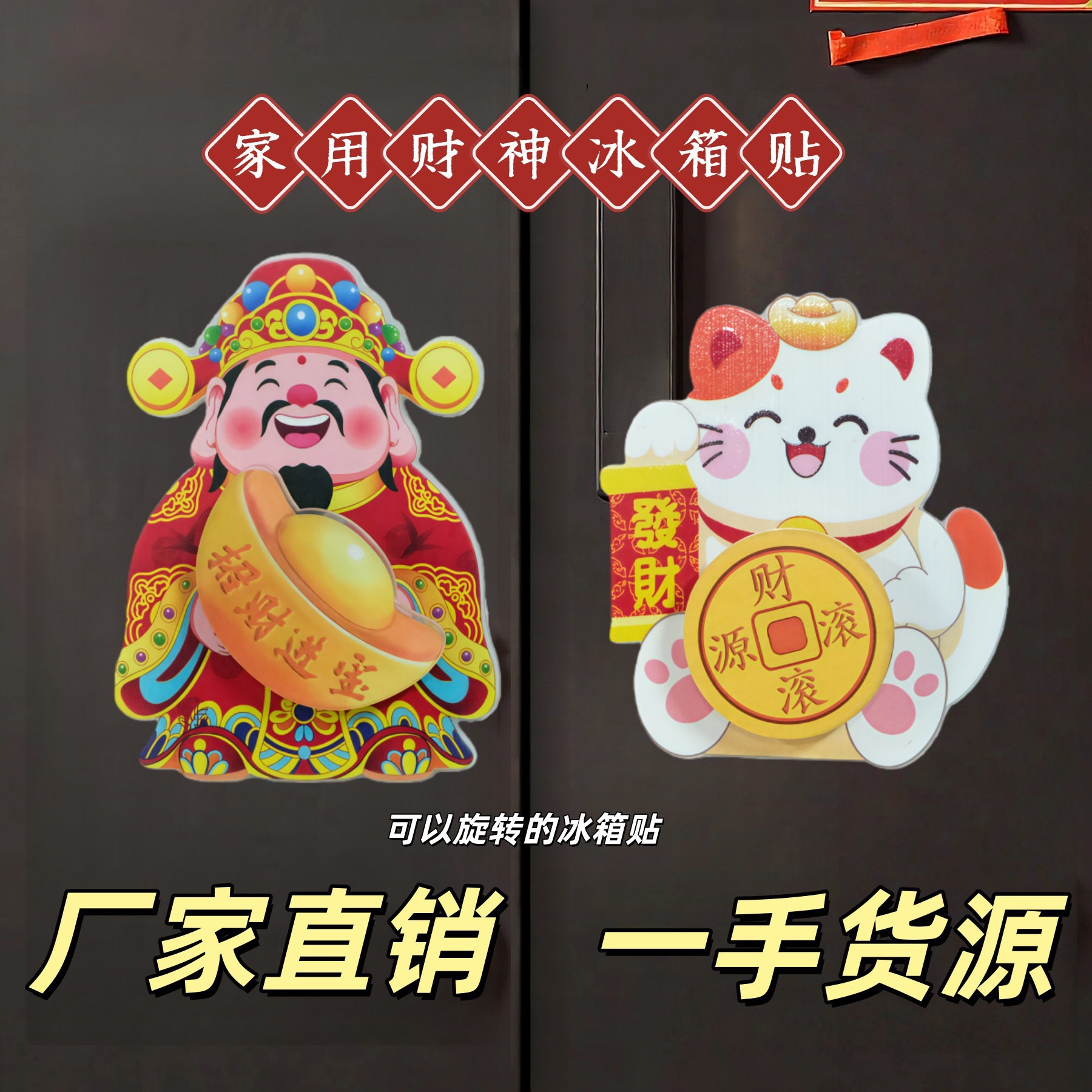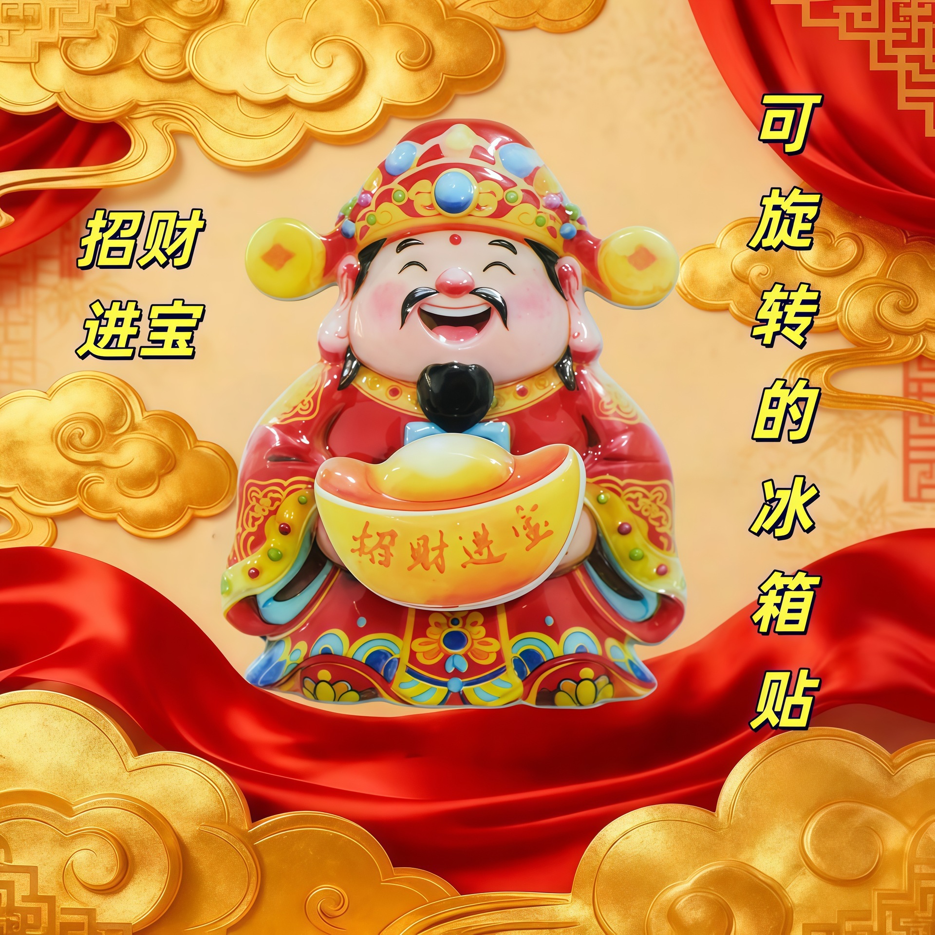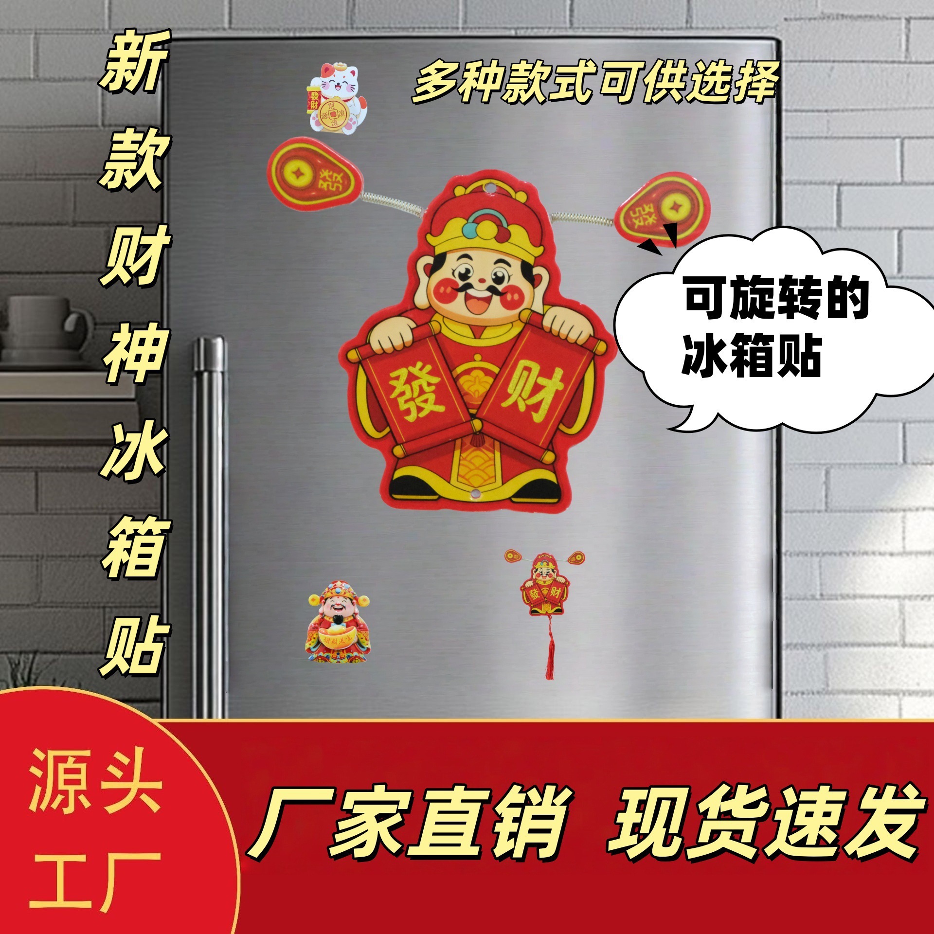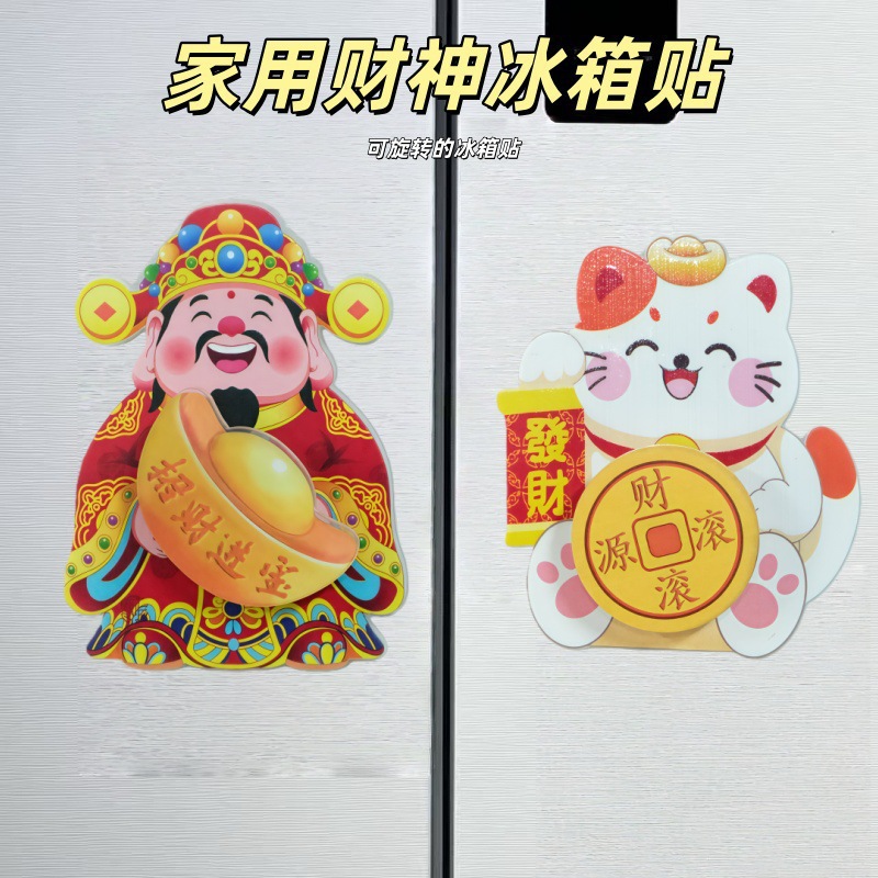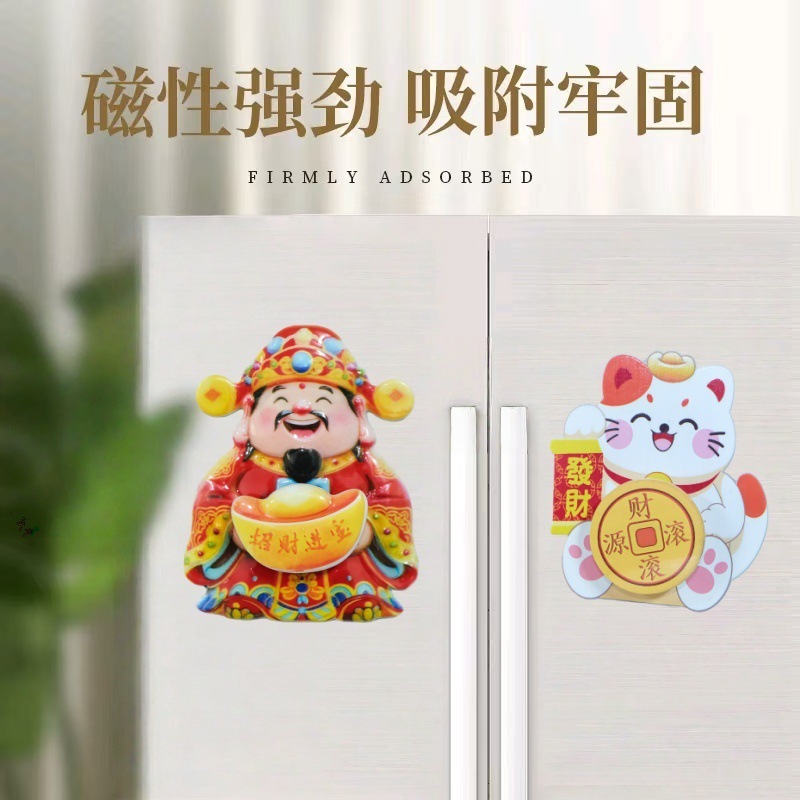 New Year's refrigerator with magnetic stickers shaking the head of the God of Wealth, magnetic suction ornaments swaying the God of Wealth, attracting wealth and blessings, and festive ornaments