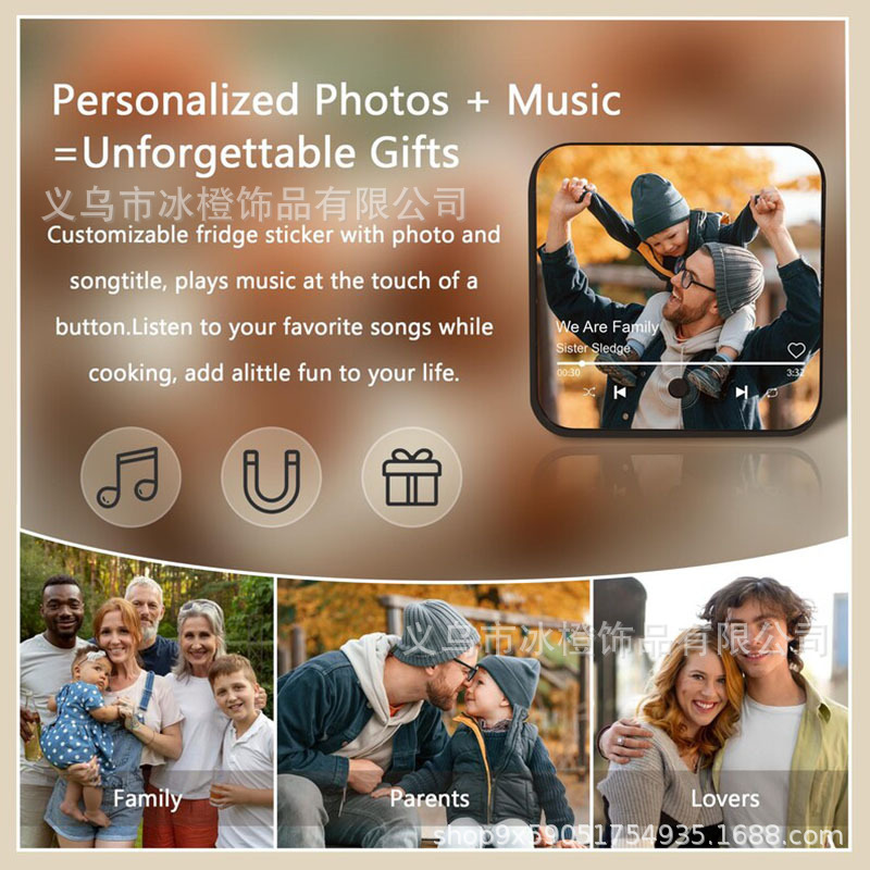 New personalized music refrigerator sticker with customized album, magnetic refrigerator sticker that can play songs, music box