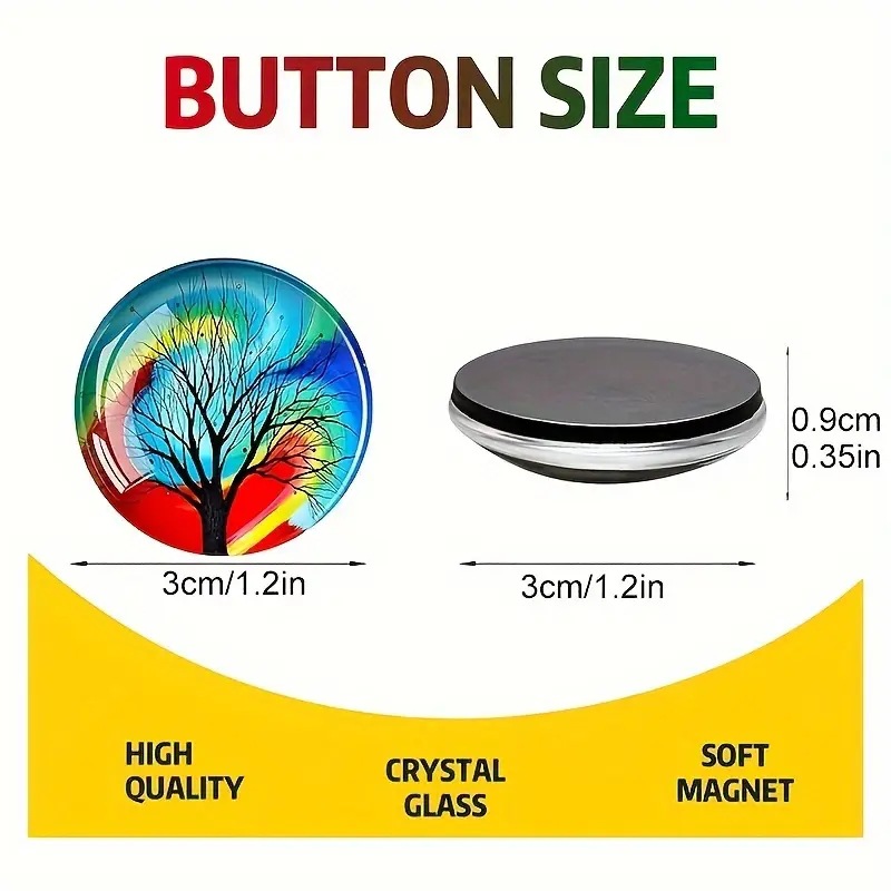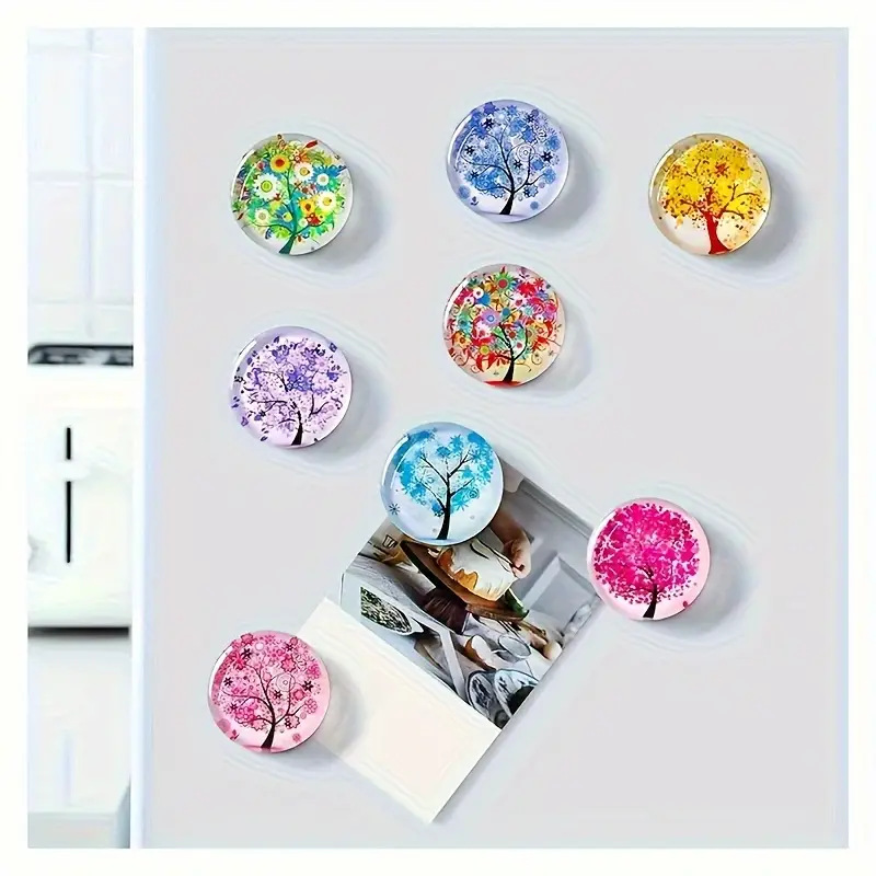 12 pieces of Tree of Life refrigerator magnets - round glass decoration with strong adhesion refrigerator sticker