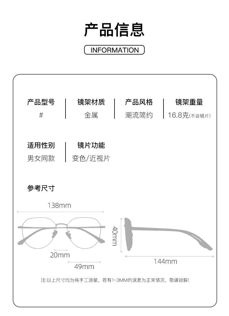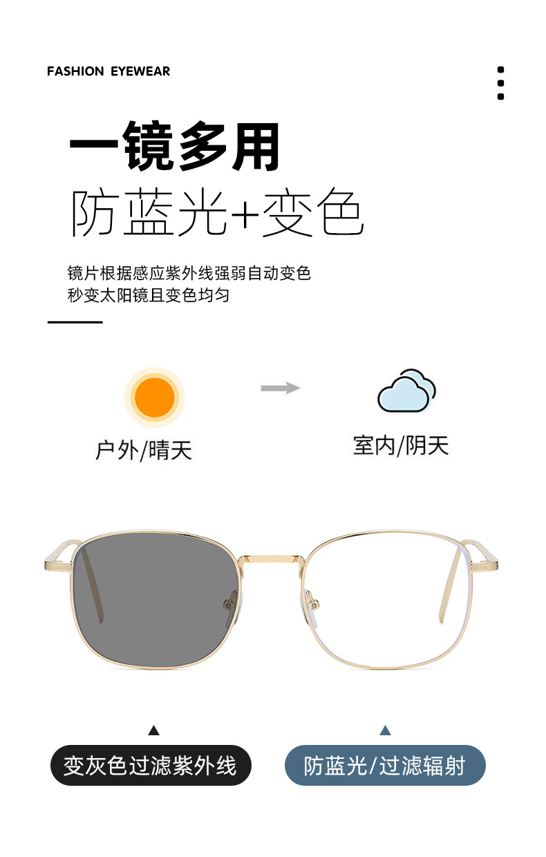 | 镜片功能 | 抗辐射;抗紫外线;变色;防蓝光 |