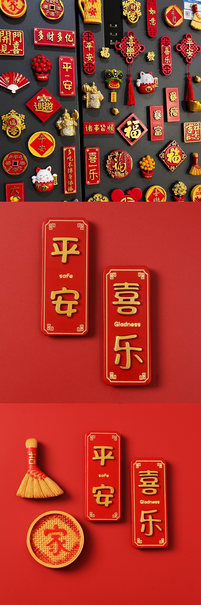Китайский ветряной холодильник с магнитной наклейкой Новогодние праздники 3D трехмерные декоративные наклейки
