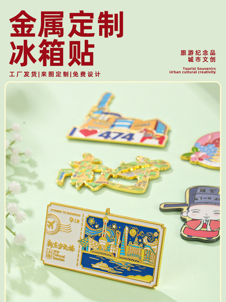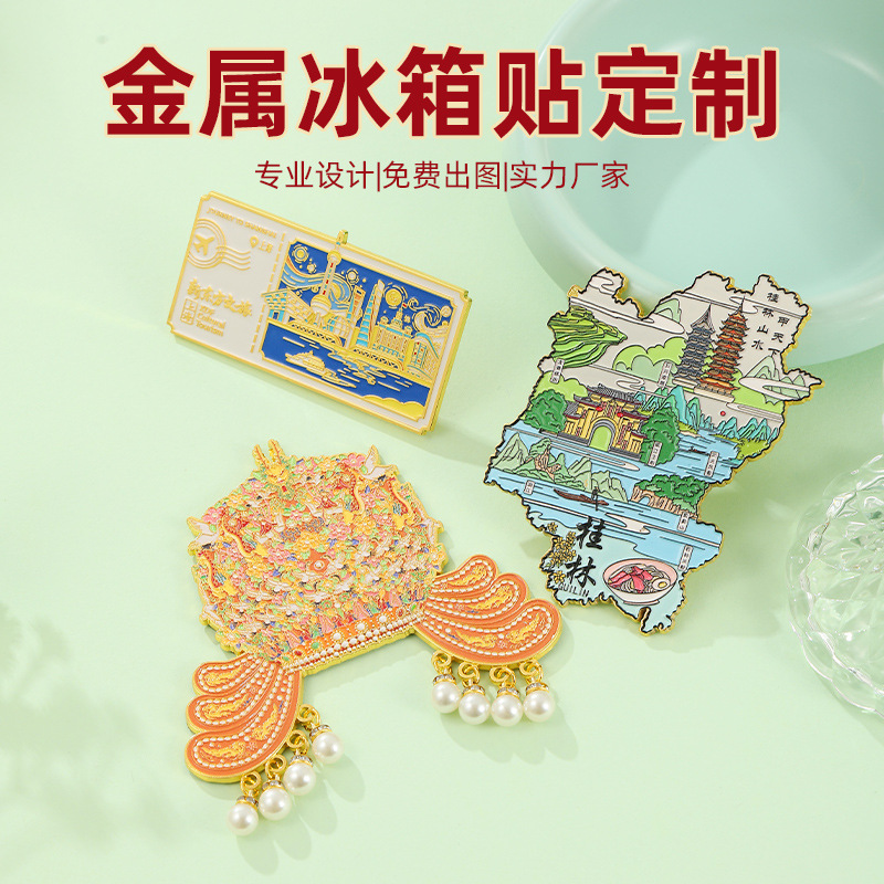 Customized metal refrigerator stickers, cultural and creative peripheral scenic spots, IP souvenirs, enterprise anniversary gifts, magnetic suction stickers, customization