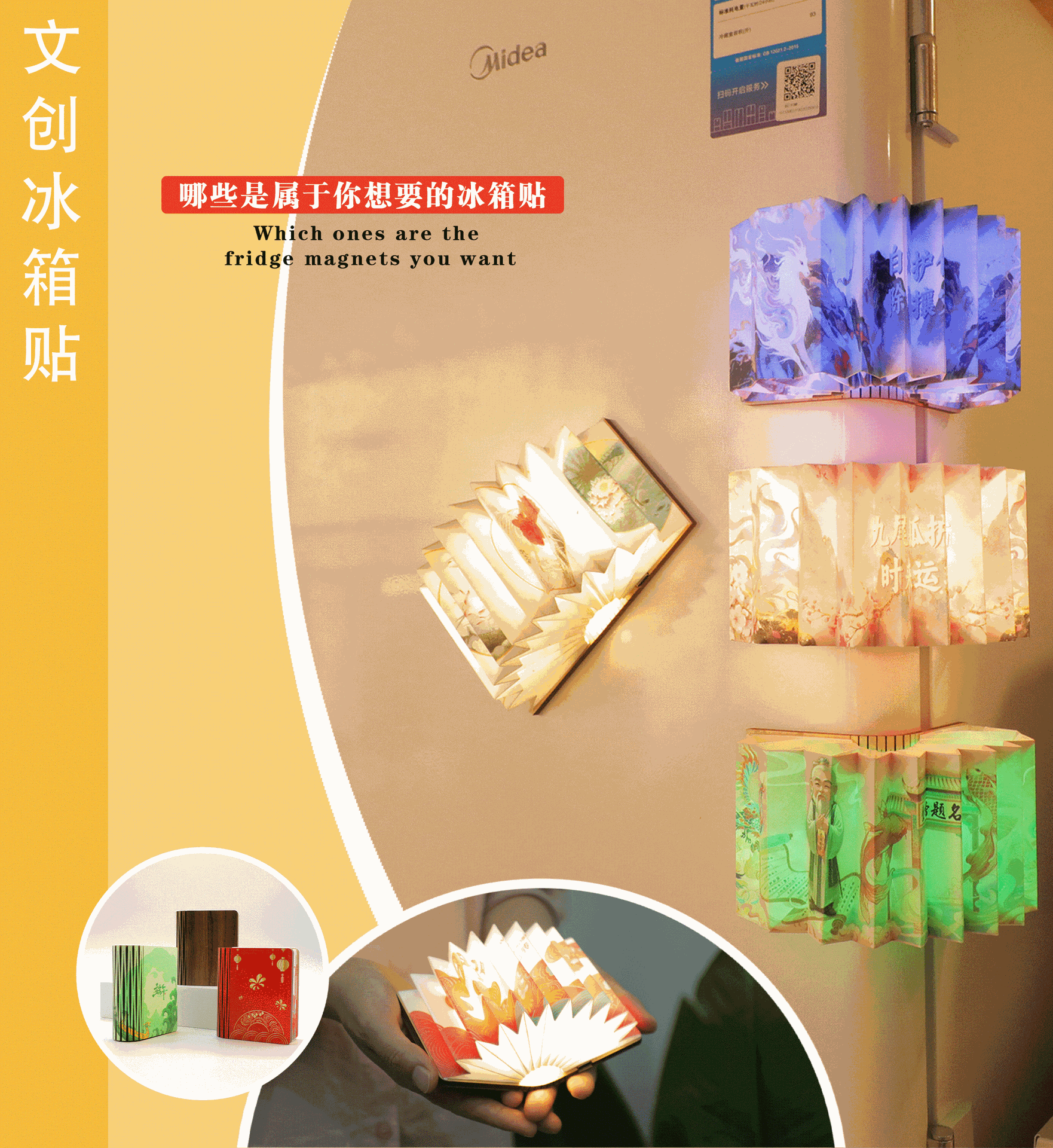 Складной веерный холодильник, светящийся книжный свет, индивидуальный рисунок, китайский ветер, светодиодная атмосфера, ночная лампа, творческий маятник