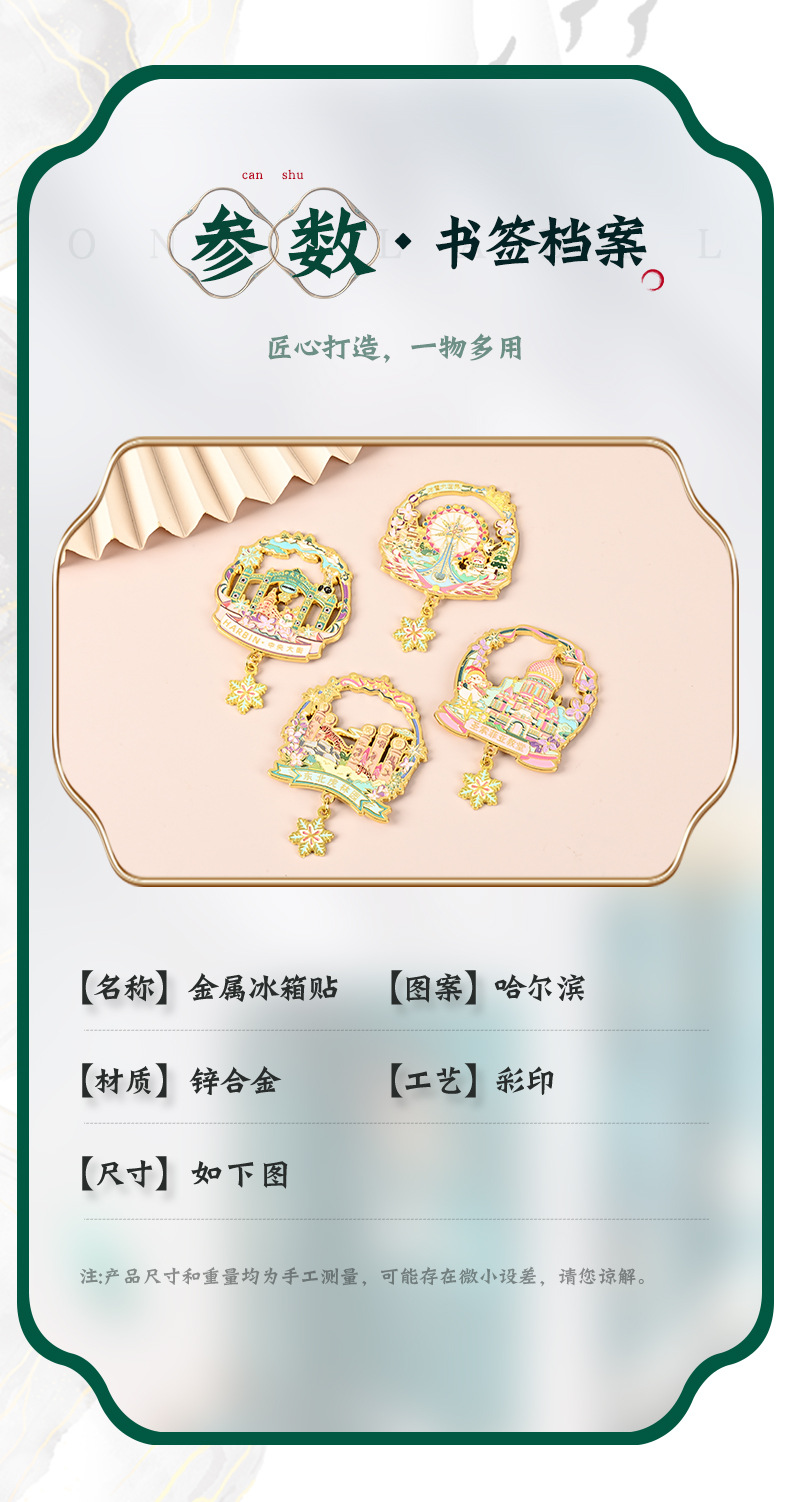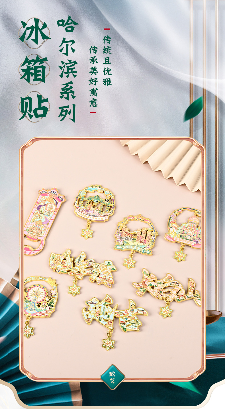 Harbin series metal refrigerator stickers Central Street Changbai Mountain Ice and Snow World Scenic Area cultural and creative magnetic stickers