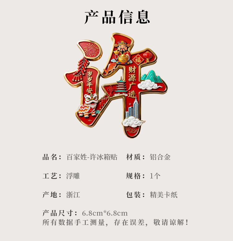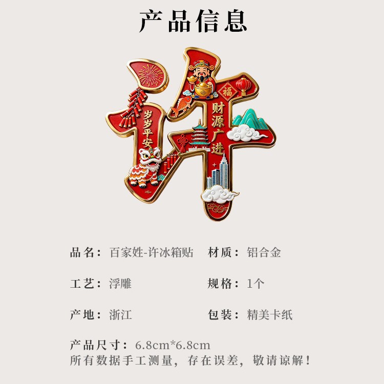Hundred Family Surnames, Xu Surnames, Text, Metal Relief, Refrigerator Stickers, Magnetic Absorption, Cultural Creativity, Collection, Wholesale, Refrigerator Stickers, Gifts