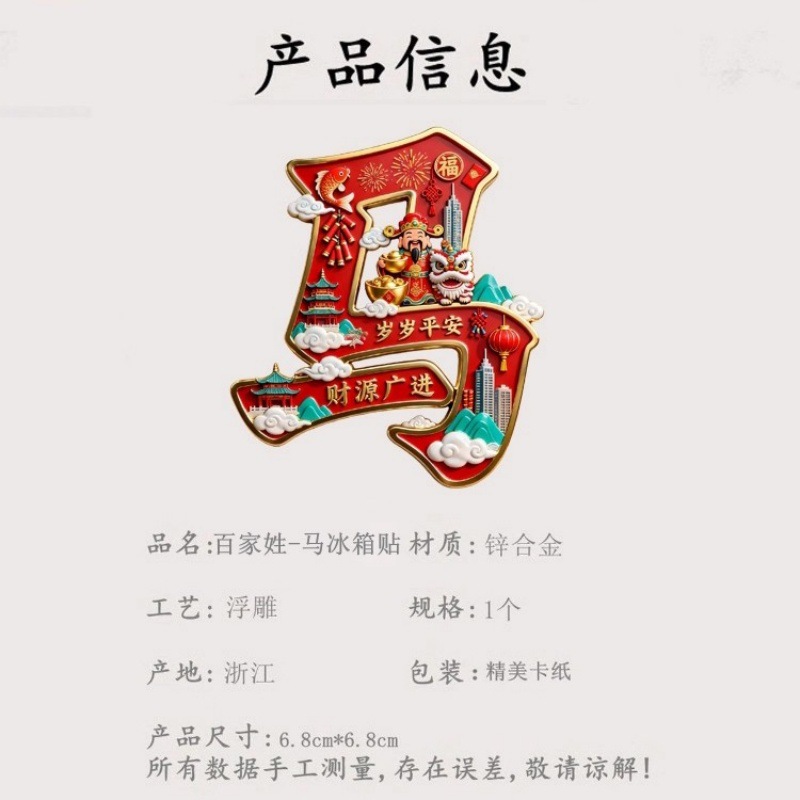 Hundred Family Surnames, Horse Surnames, Text, Metal Relief, Refrigerator Stickers, Magnetic Absorption, Cultural Creativity, Collection, Wholesale, Refrigerator Stickers, Gifts