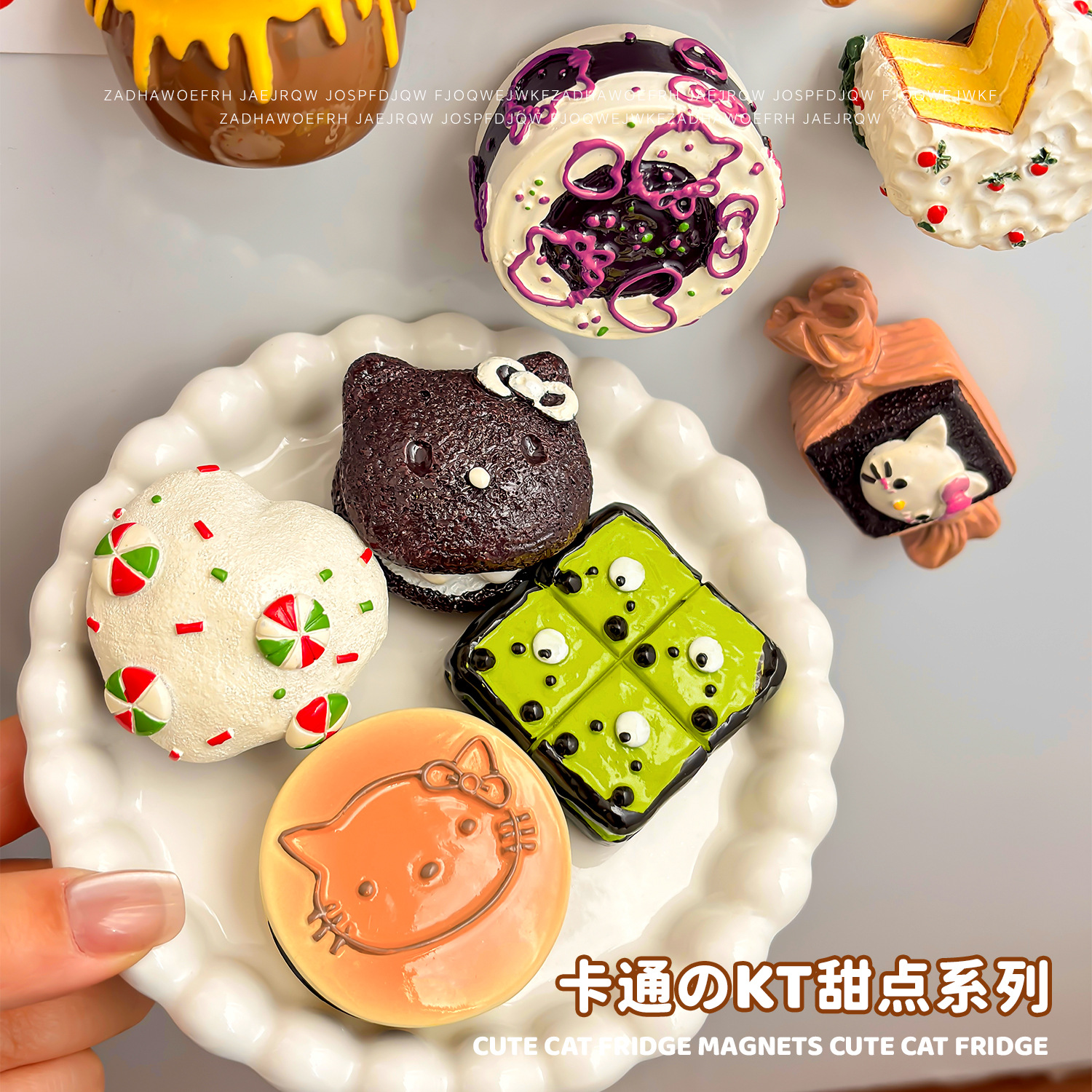 卡通甜品食玩磁吸冰箱贴可爱KT小熊磁性贴猫咪蓝莓蛋糕家居装饰品