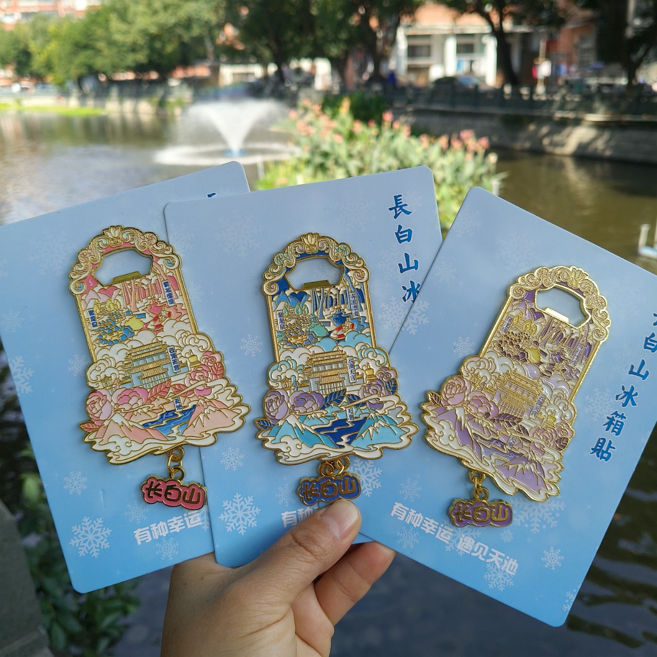 Jilin Changbai Mountain Cultural and Creative Series Metal Refrigerator City Tourism Bottle Opener Magnetic Refrigerator Sticker Cross border Wholesale