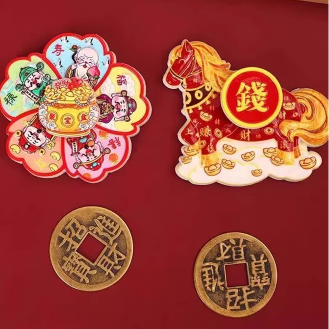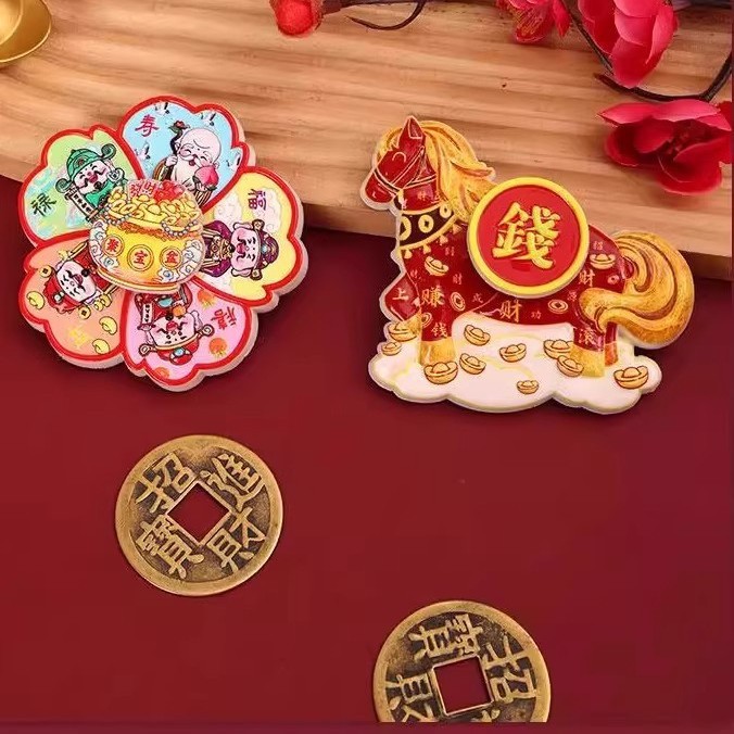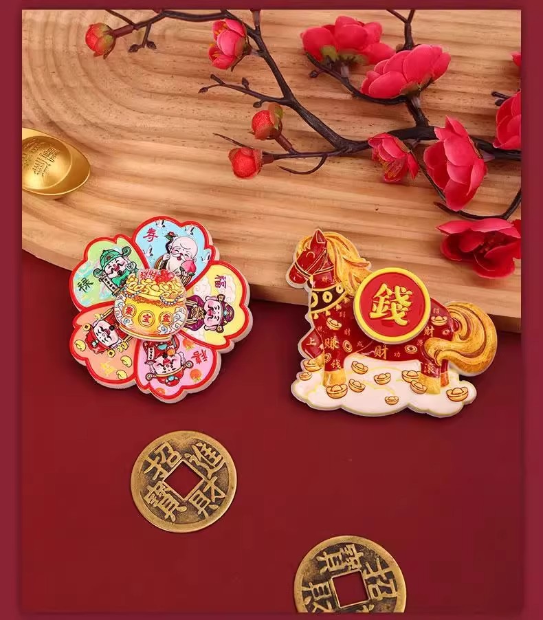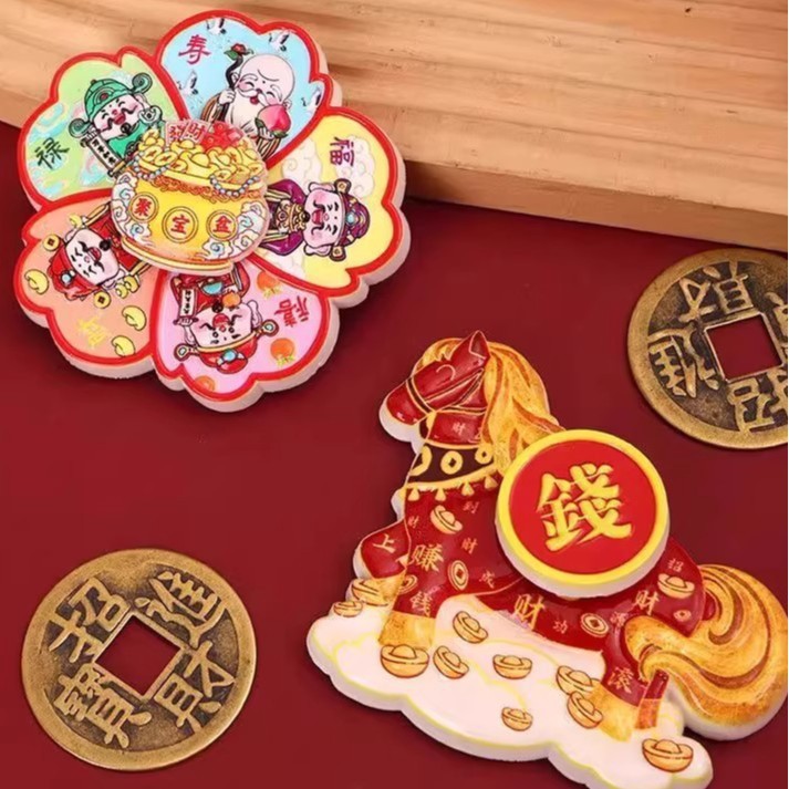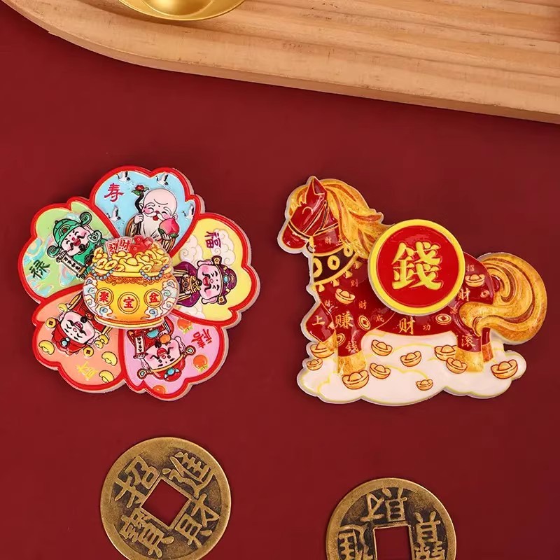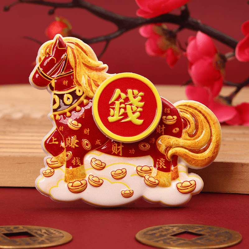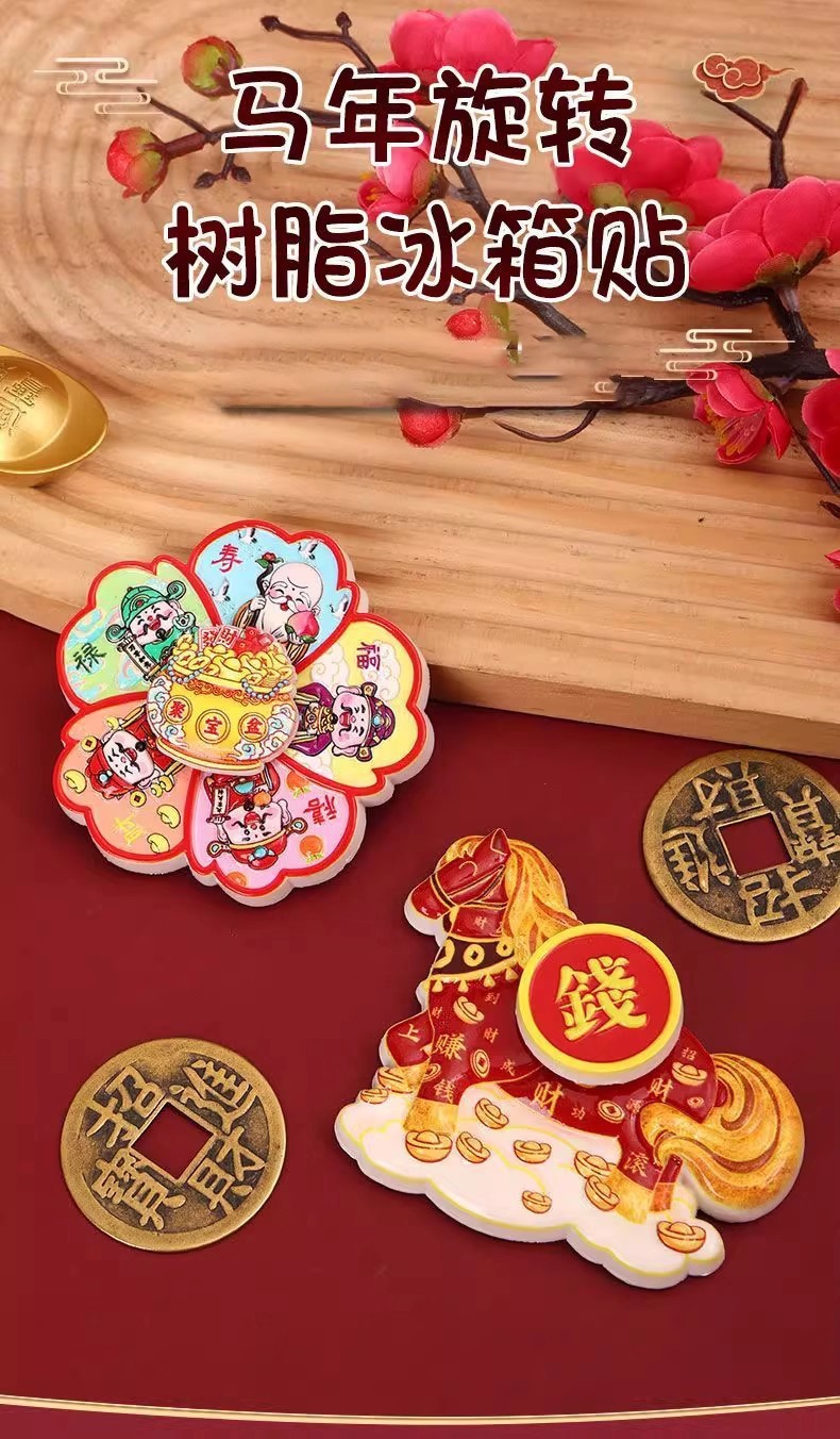 Cartoon Cute Instant Money Transfer Rotating Refrigerator Paste 2026 Year of the Horse Magnetic Absorption Nafu Resin Healing Home Decoration Paste