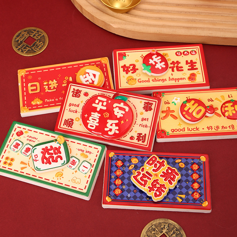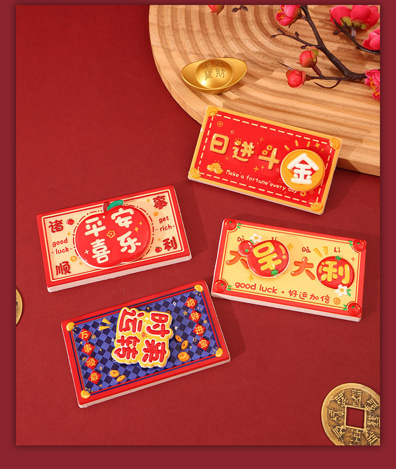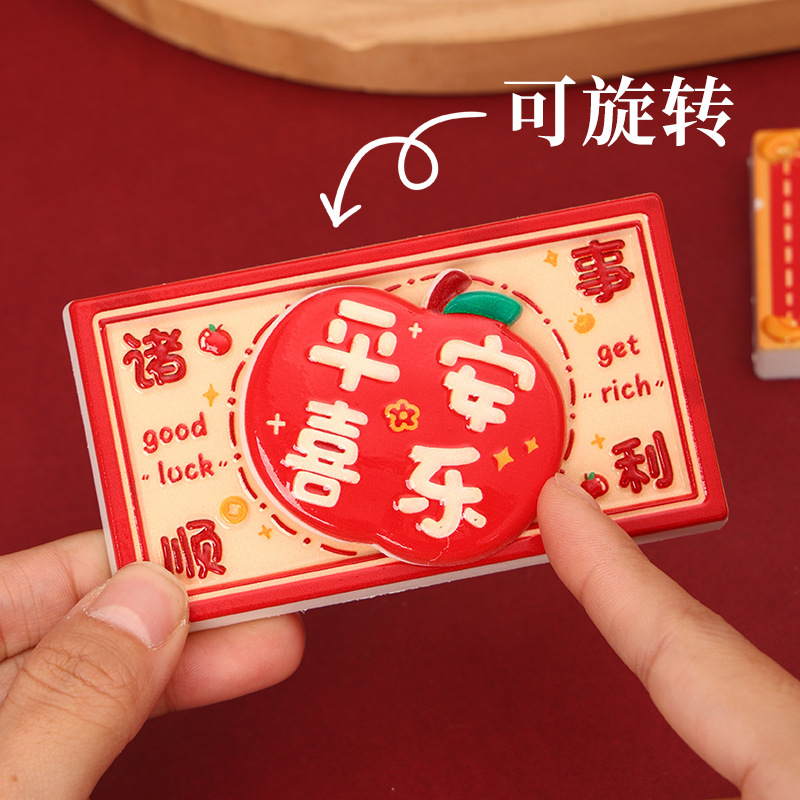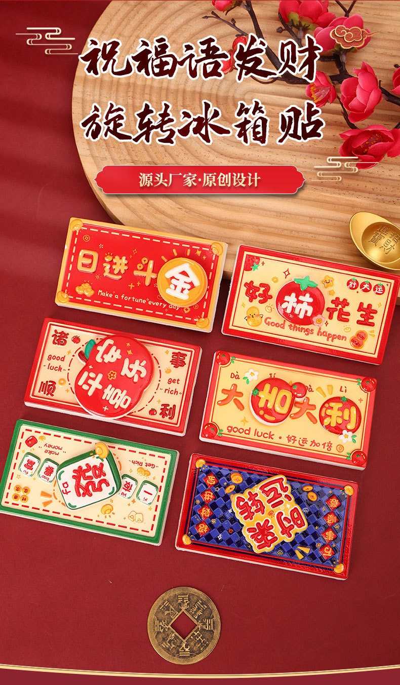 New Year's greetings: Rotating refrigerator stickers, resin festive magnetic suction stickers, creative gifts, attracting wealth, magnetic suction decorative stickers, healing