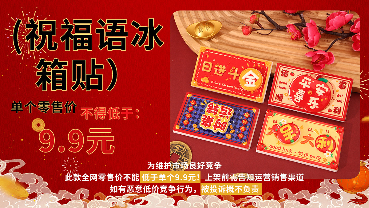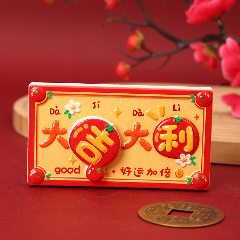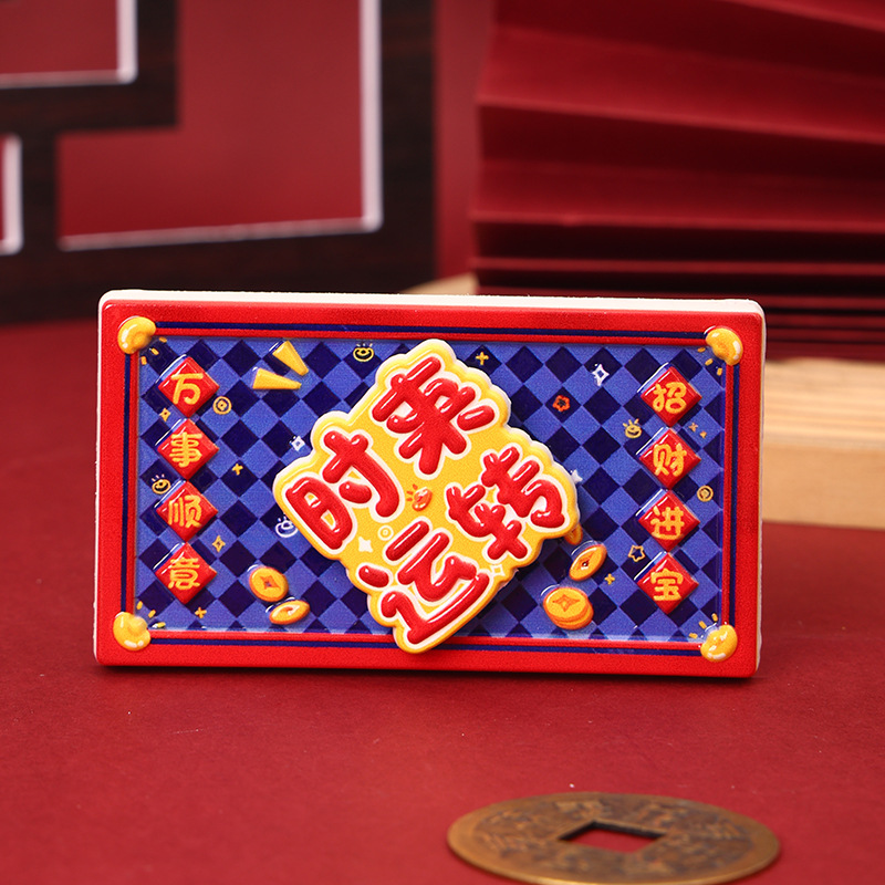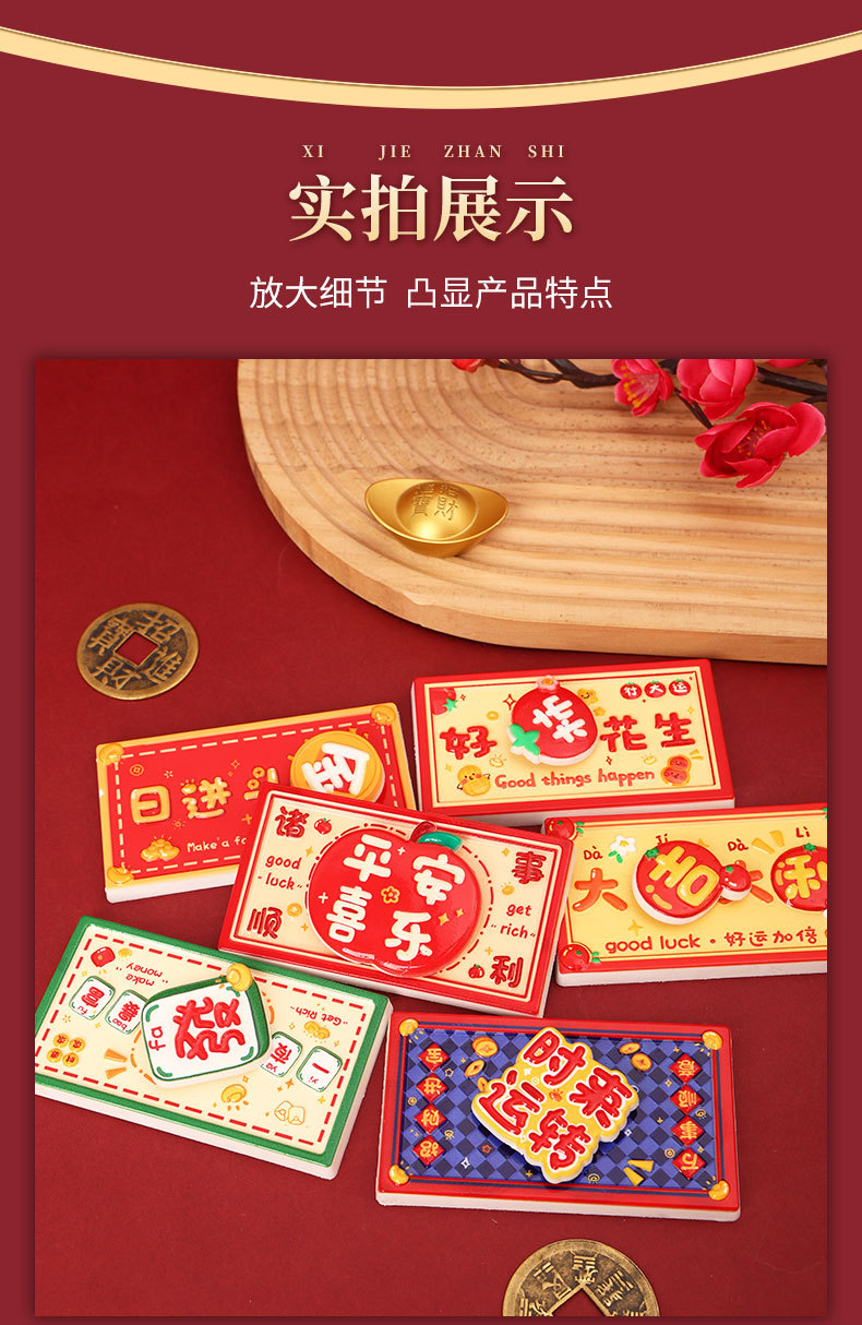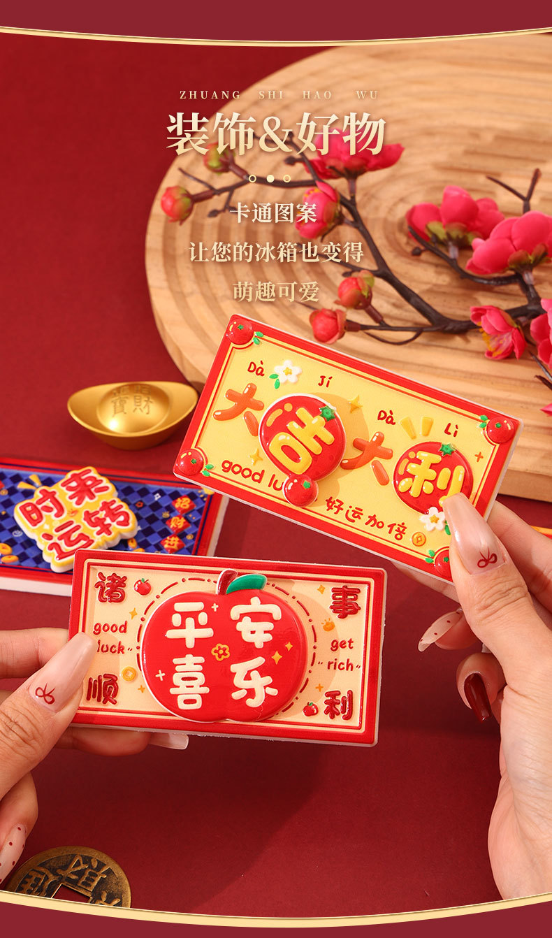 New Year's greetings: Rotating refrigerator stickers, resin festive magnetic suction stickers, creative gifts, attracting wealth, magnetic suction decorative stickers, healing