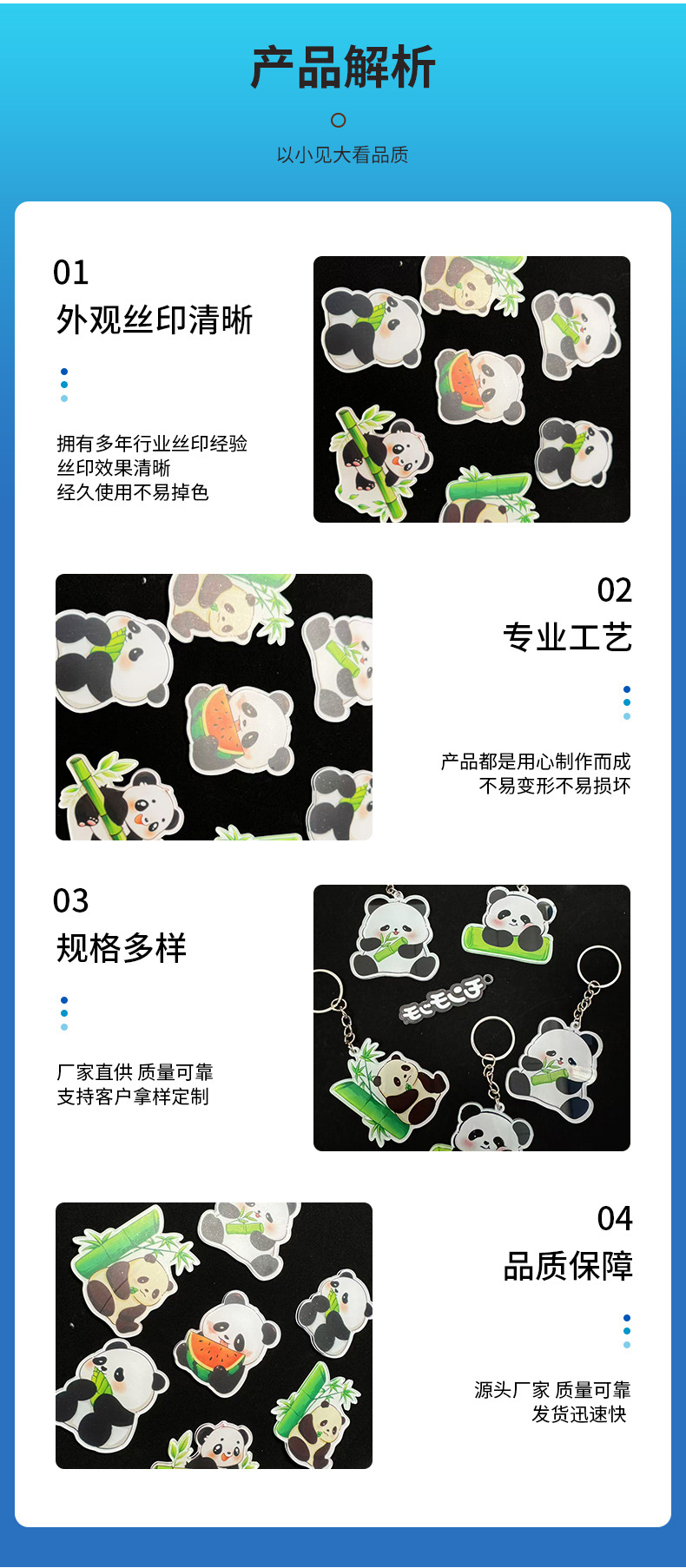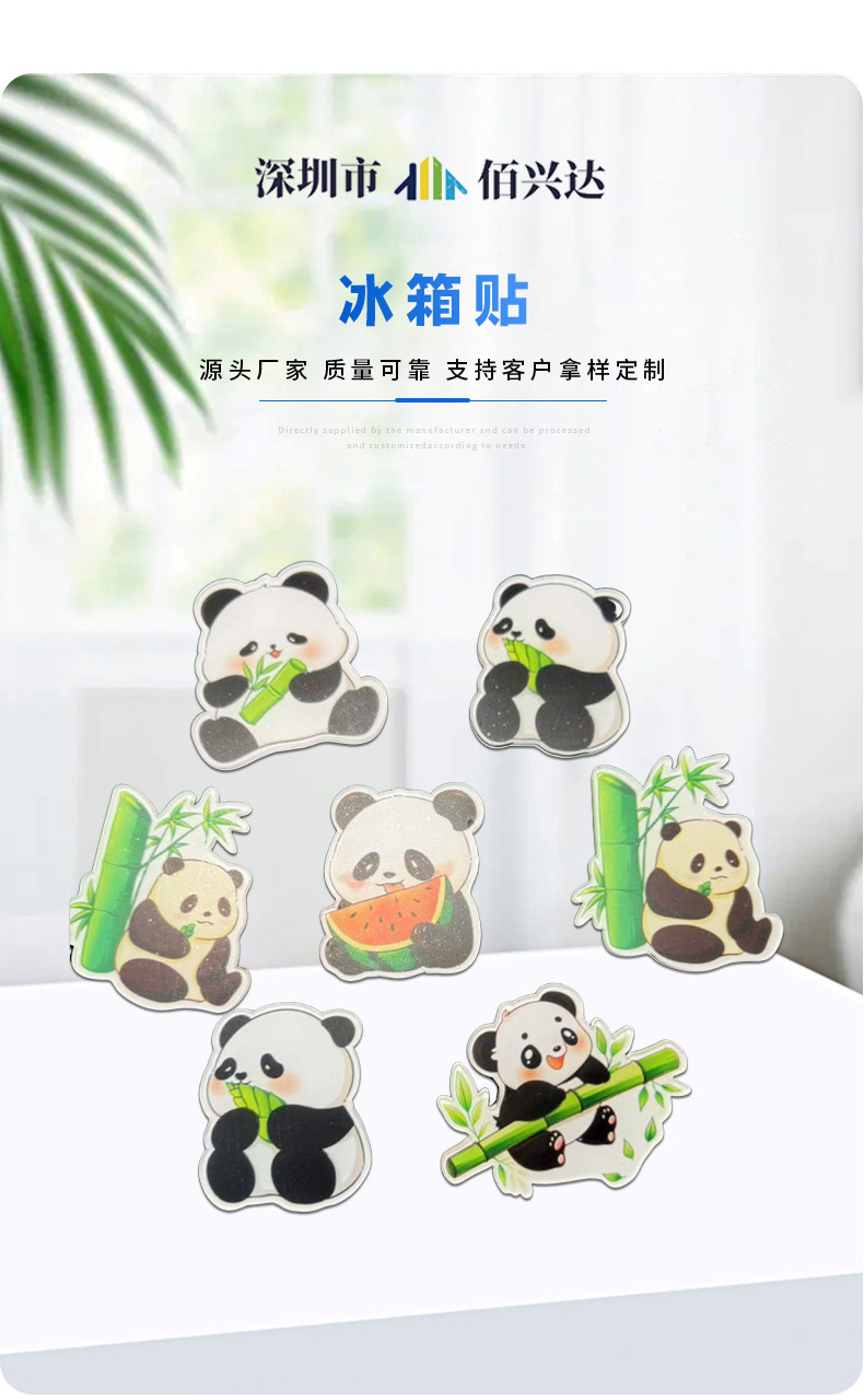 Manufacturer direct sales refrigerator magnetic stickers cute panda souvenirs cultural and creative food toys cartoon acrylic refrigerator stickers