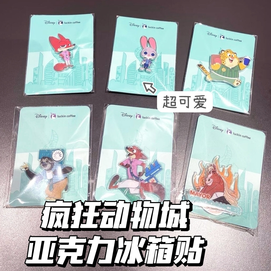 New product launches Luckin collaboration Crazy Animal City cute cartoon metal magnetic badge acrylic refrigerator sticker