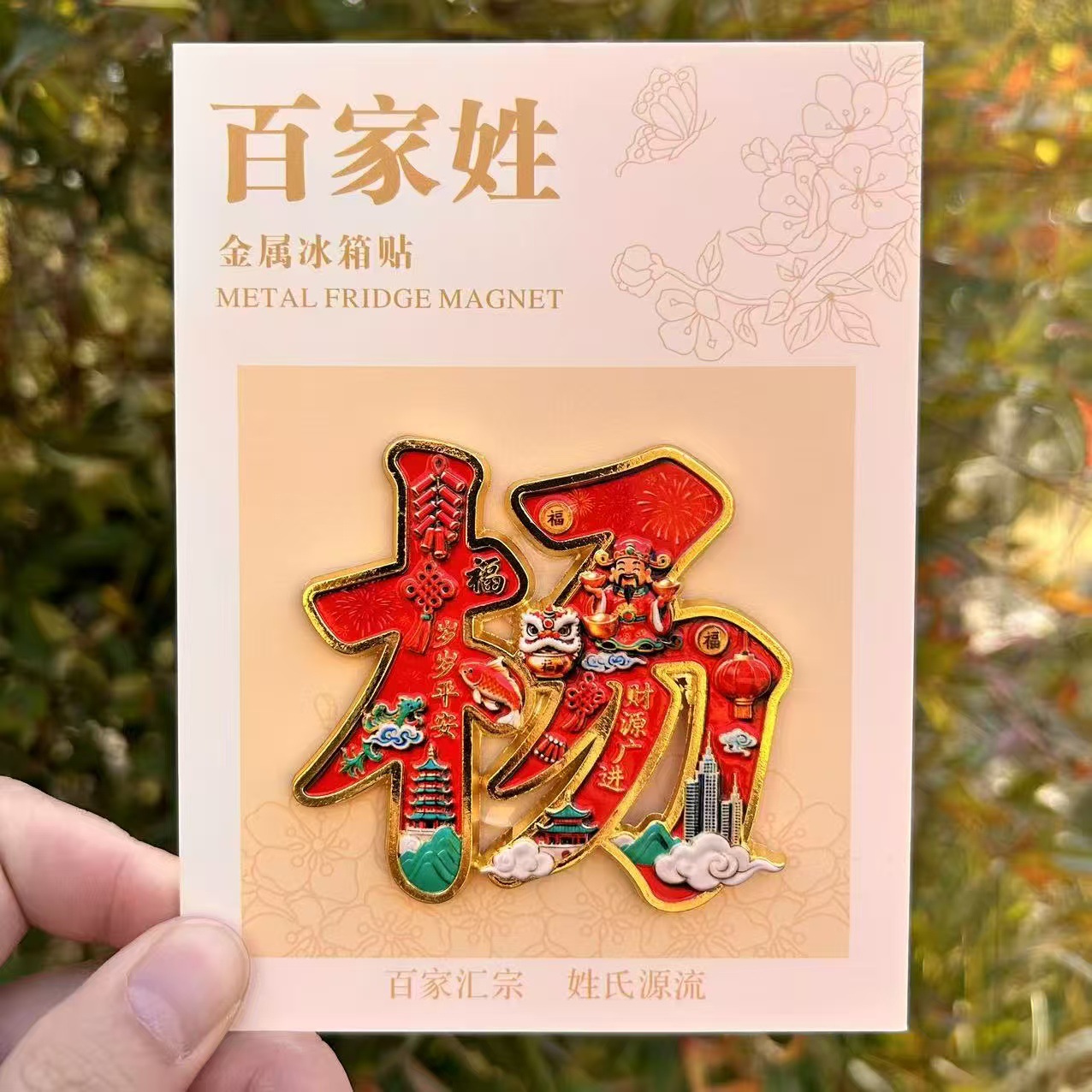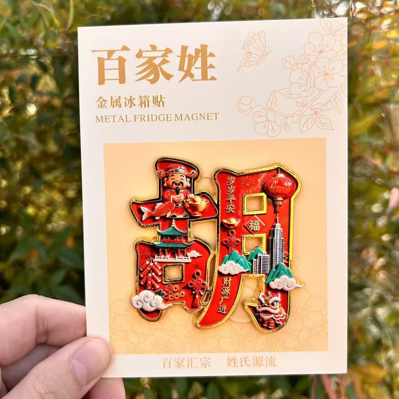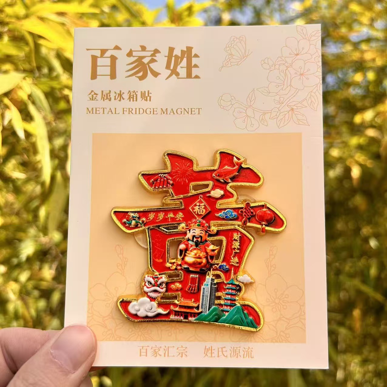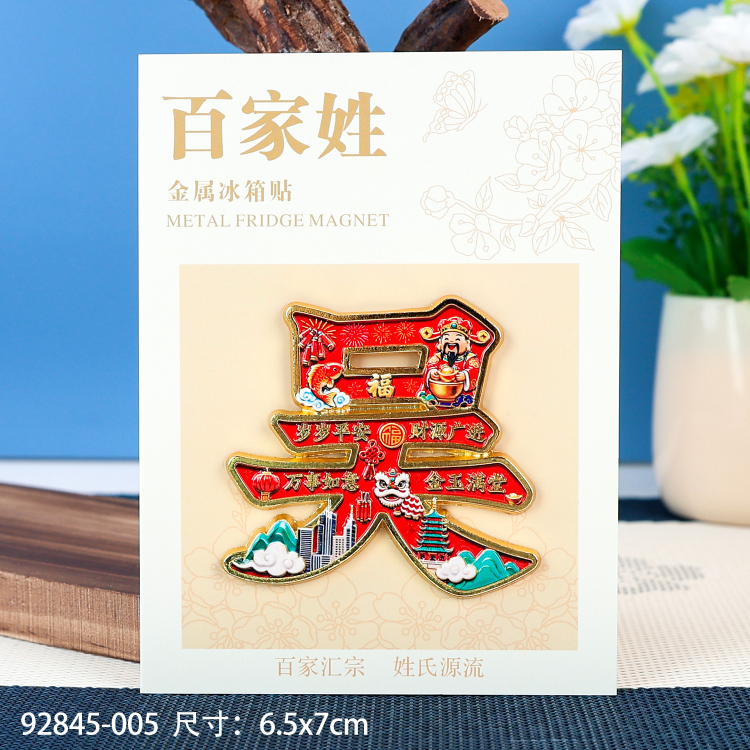 Creative and Creative Chinese Style Hundred Family Surnames Refrigerator Sticker Surname Text Metal Magnetic Refrigerator Sticker Tourist Souvenir