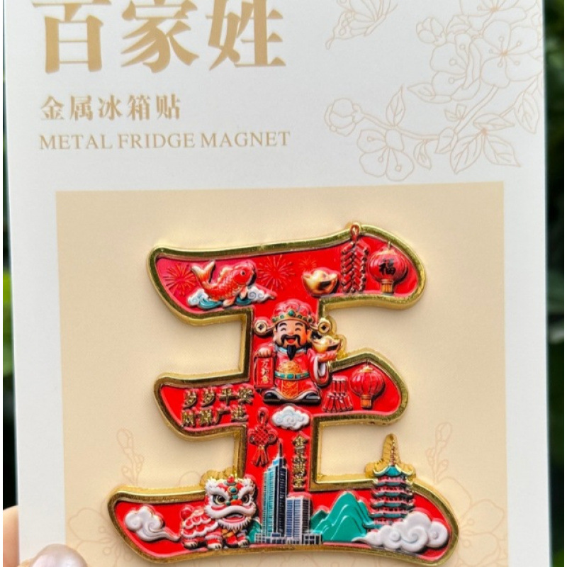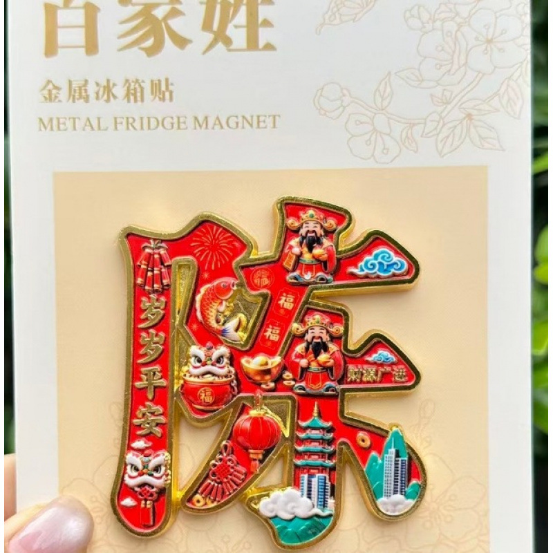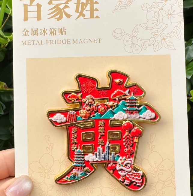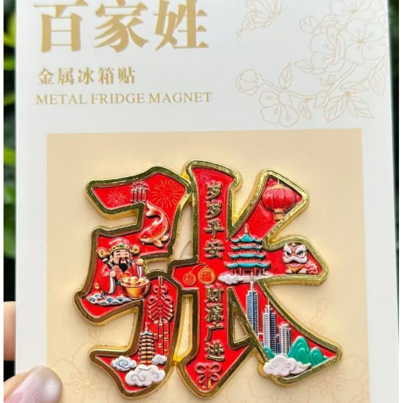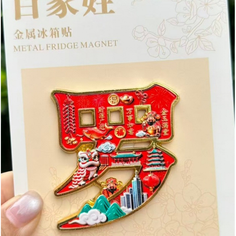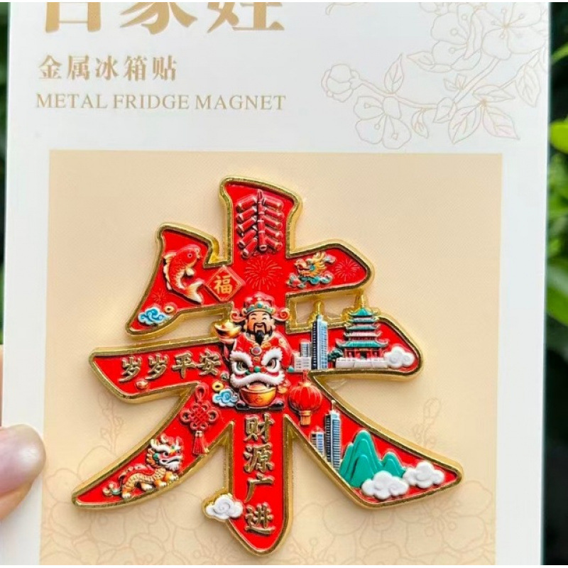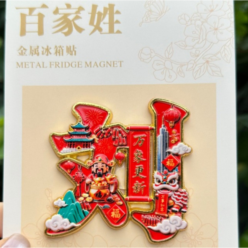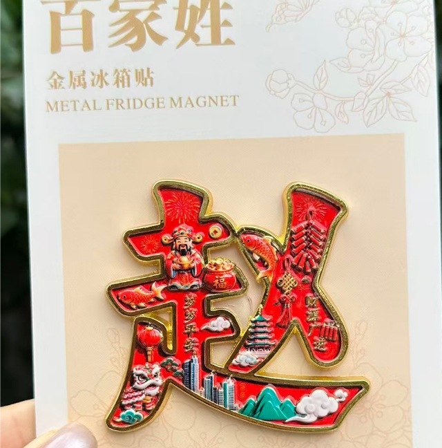 Creative and Creative Chinese Style Hundred Family Surnames Refrigerator Sticker Surname Text Metal Magnetic Refrigerator Sticker Tourist Souvenir