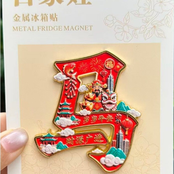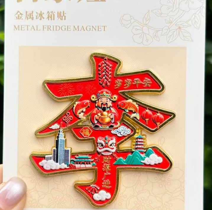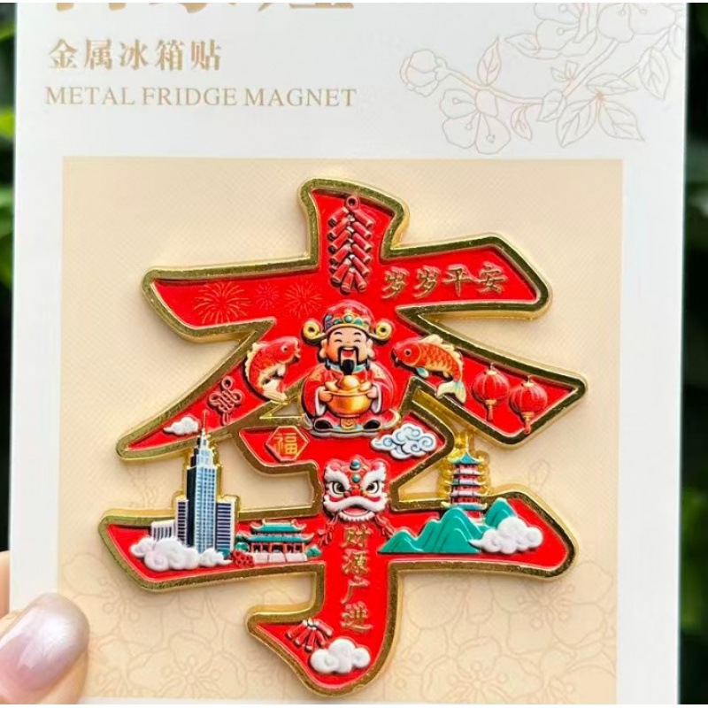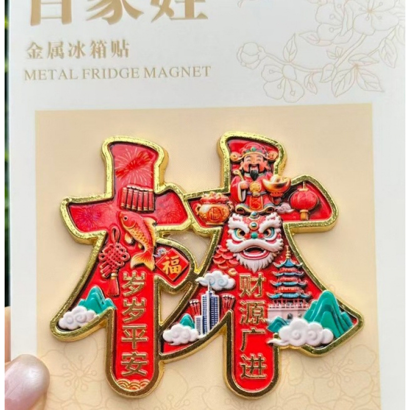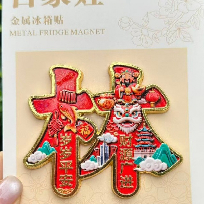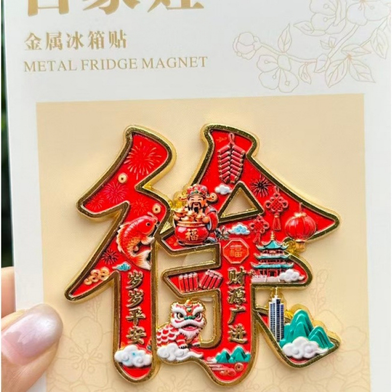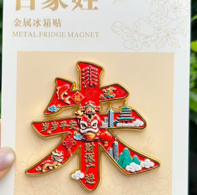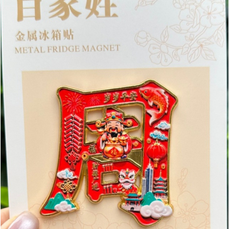 Creative and Creative Chinese Style Hundred Family Surnames Refrigerator Sticker Surname Text Metal Magnetic Refrigerator Sticker Tourist Souvenir