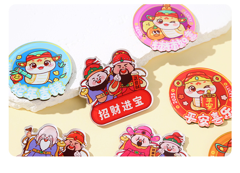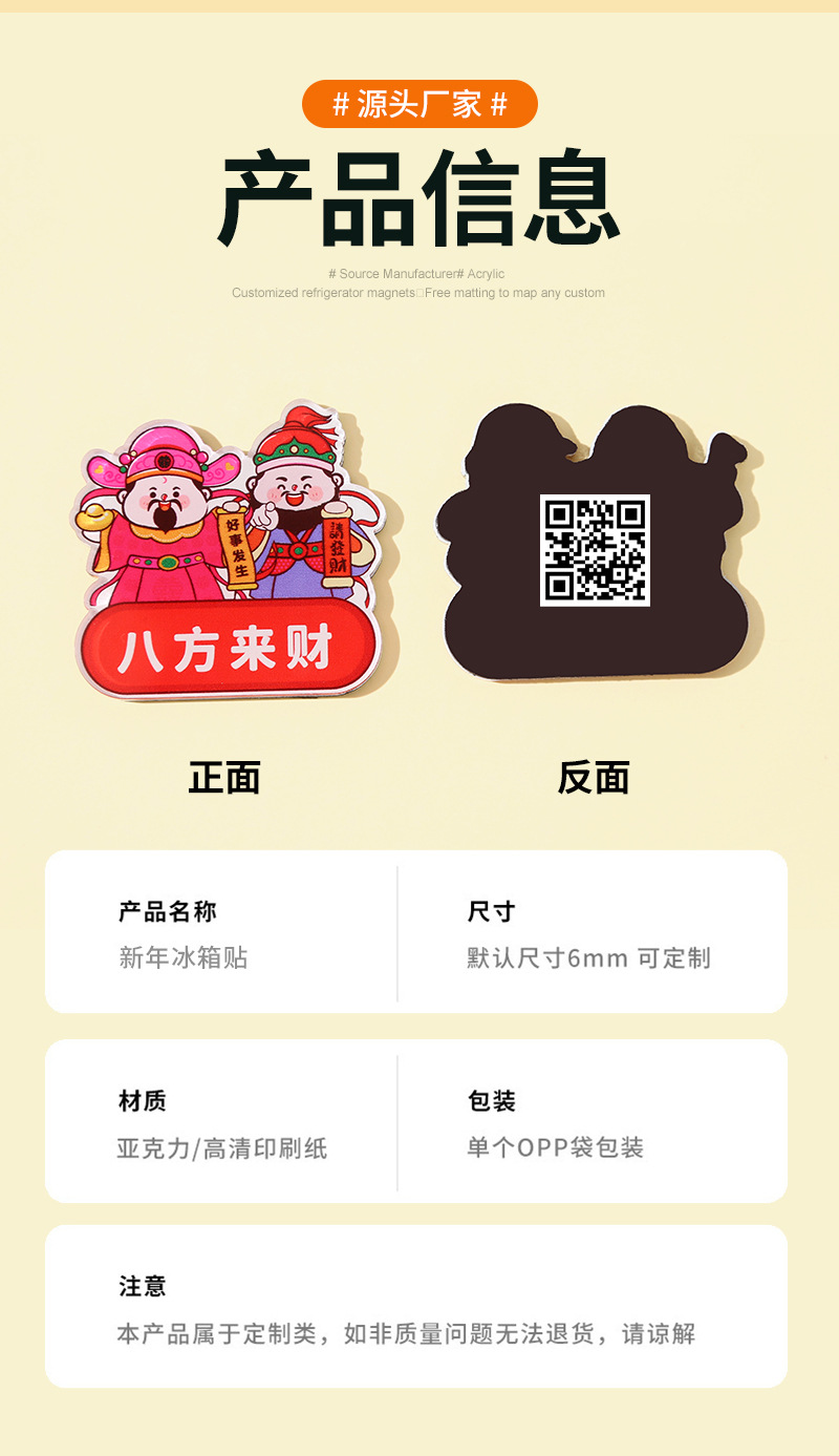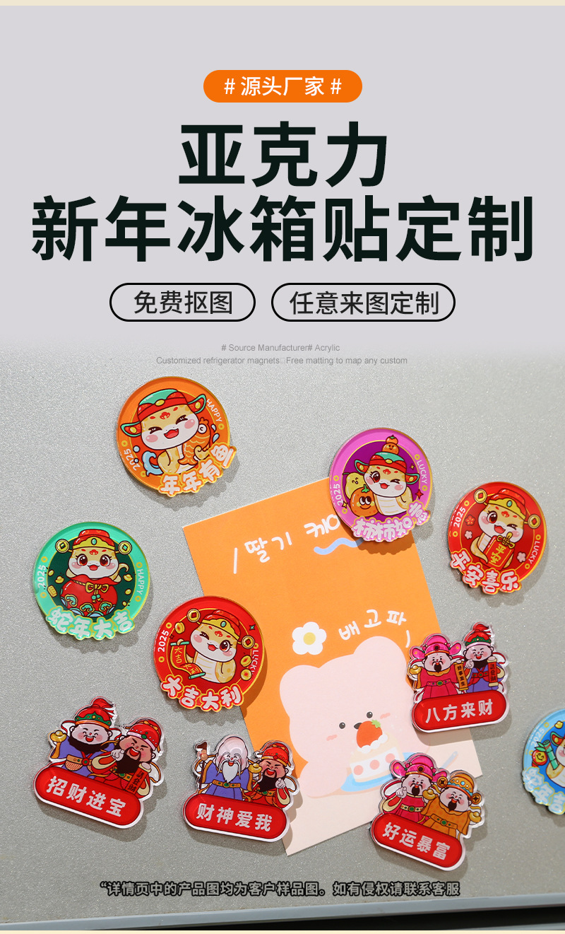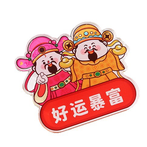 Customized God of Wealth Refrigerator Acrylic New Year Creative Decorative Stickers New Year Flavor Fortune Word Couplets Soft Magnetic Stickers Wholesale