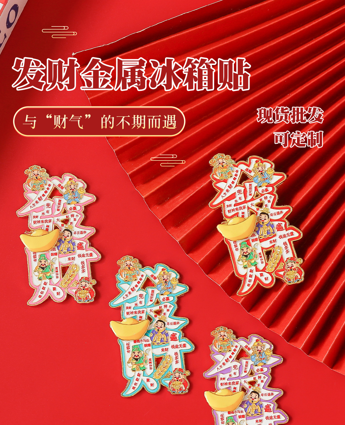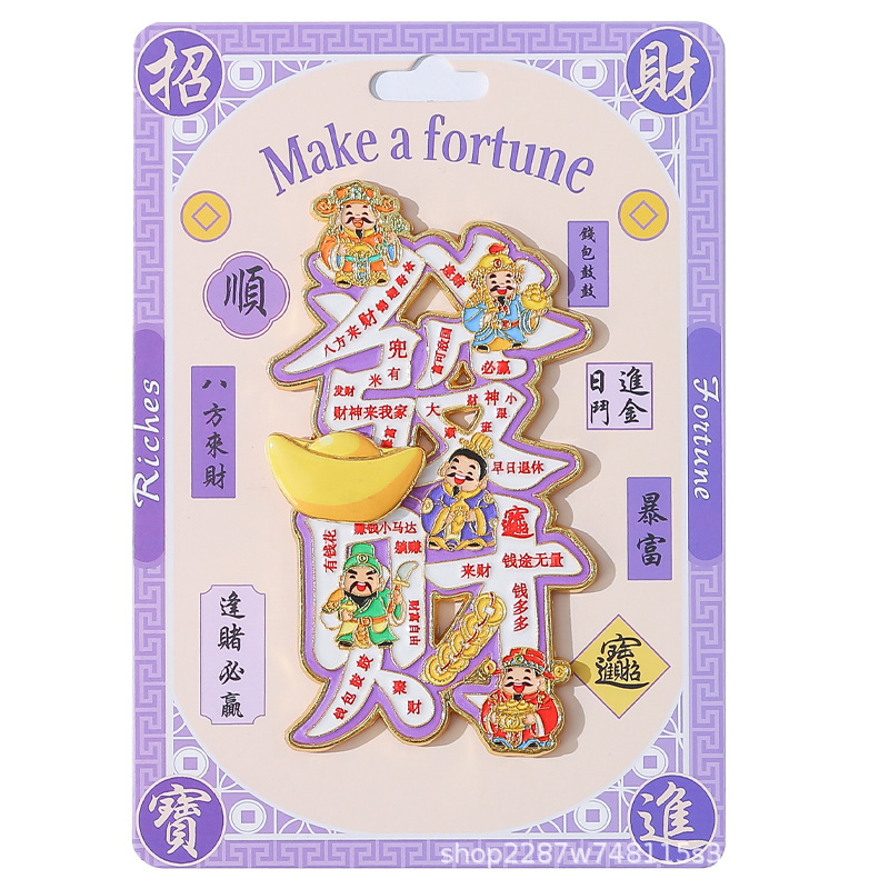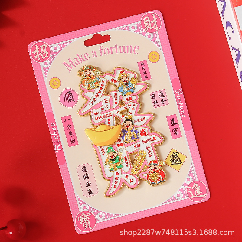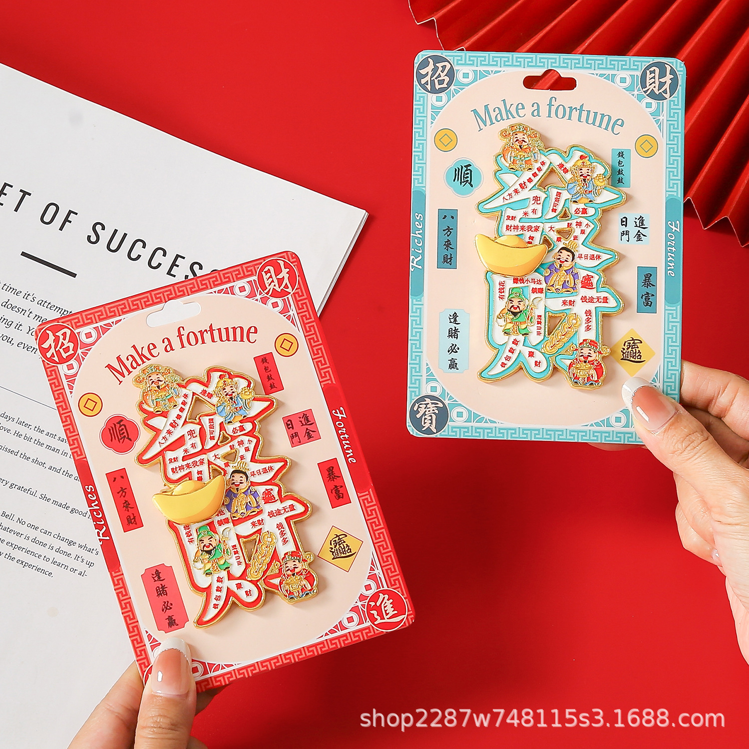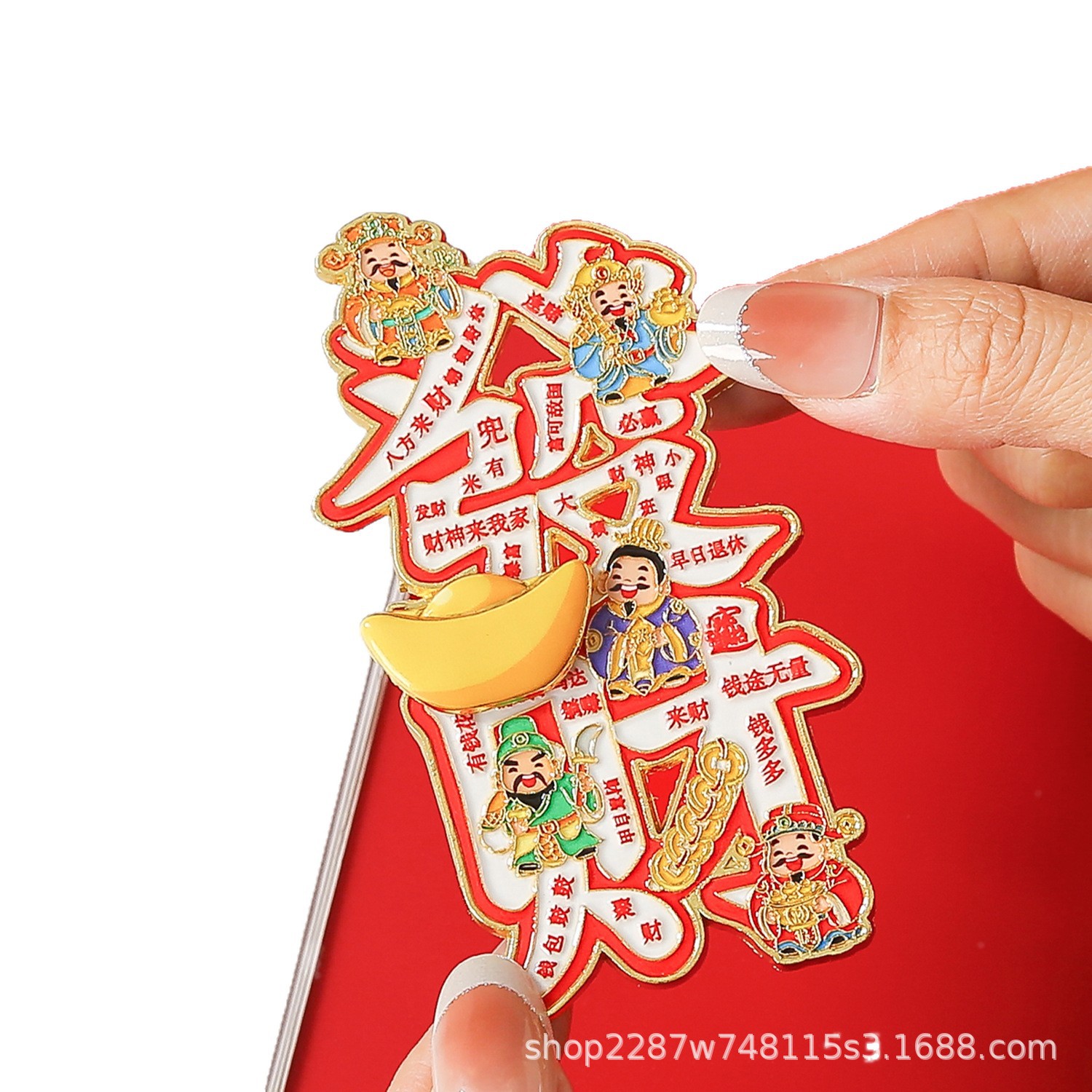 New Year's Wealth Magnetic Ingot Metal Refrigerator Sticker Gift Spot Refrigerator Sticker Magnetic Sticker Spring Festival Cultural and Creative Decoration