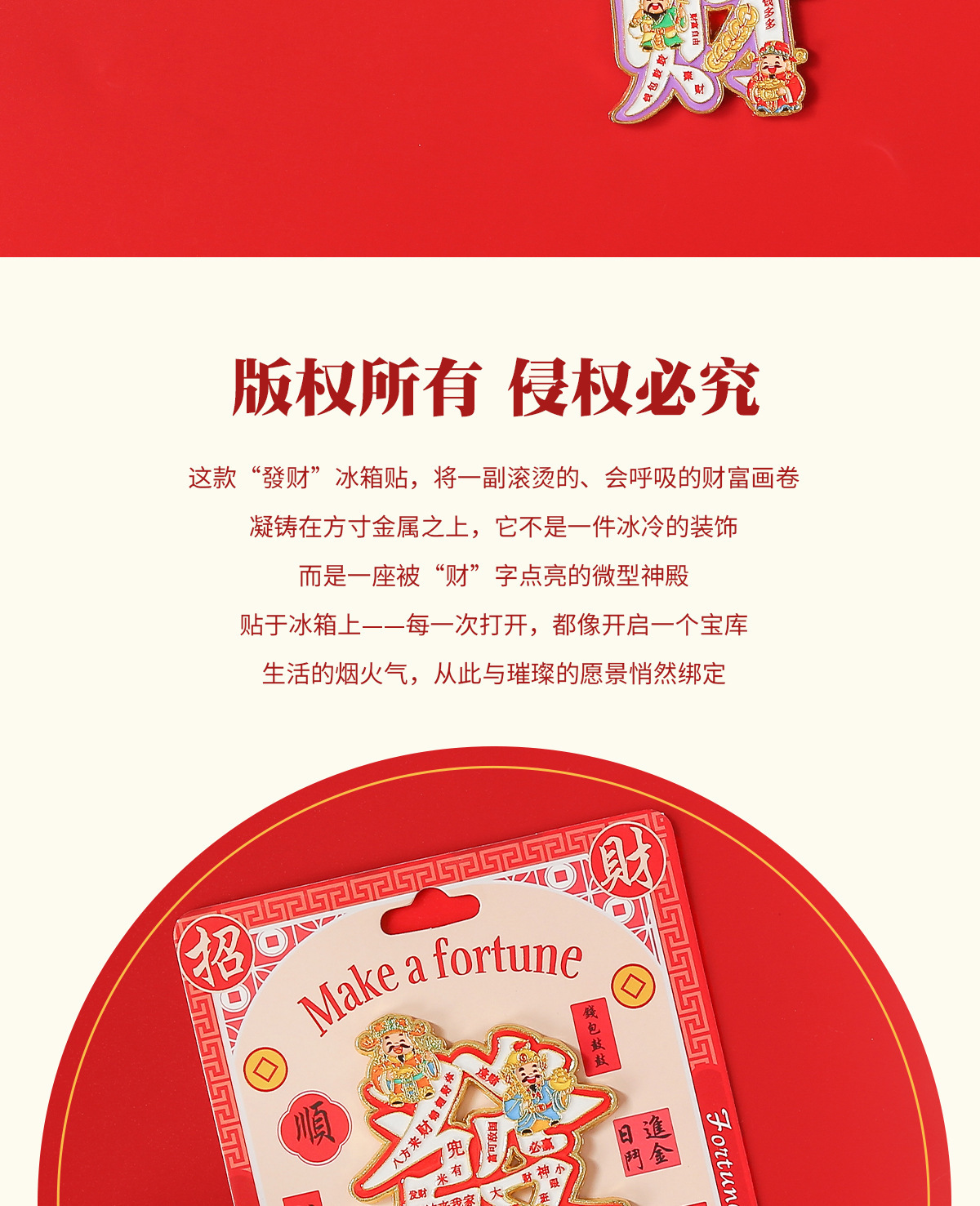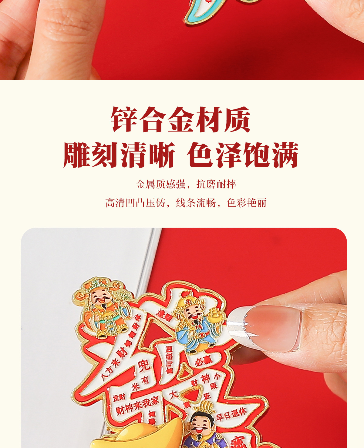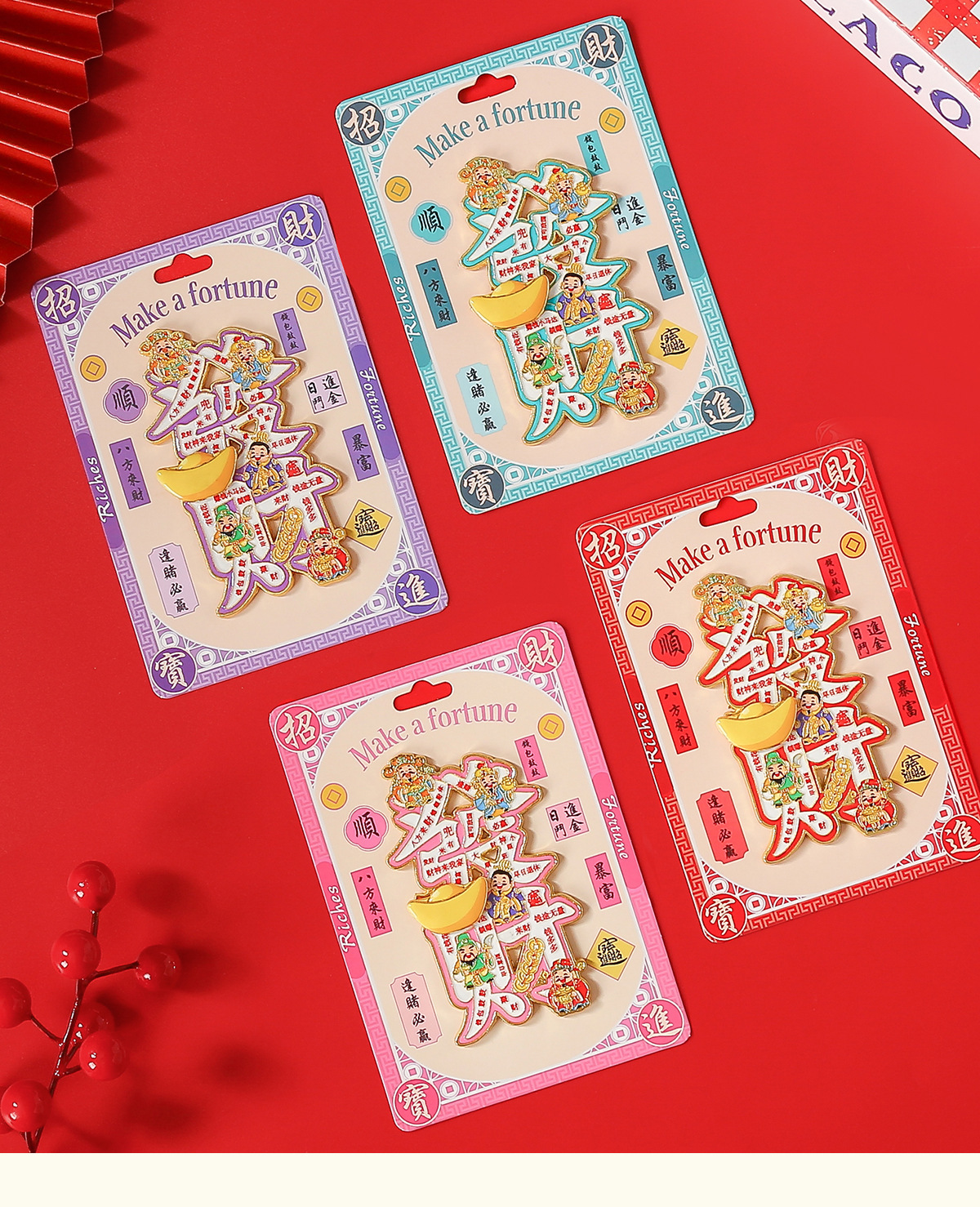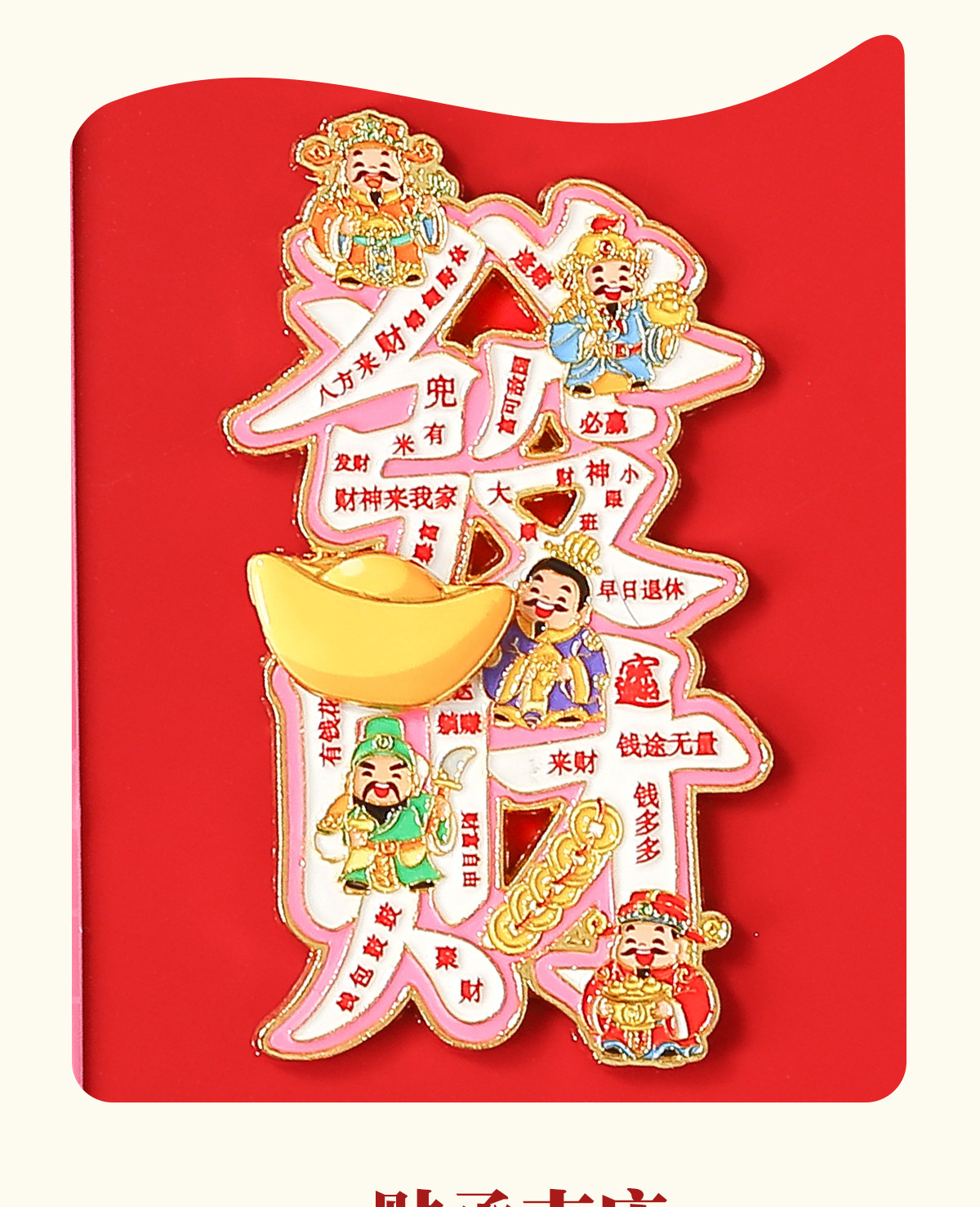New Year's Wealth Magnetic Ingot Metal Refrigerator Sticker Gift Spot Refrigerator Sticker Magnetic Sticker Spring Festival Cultural and Creative Decoration