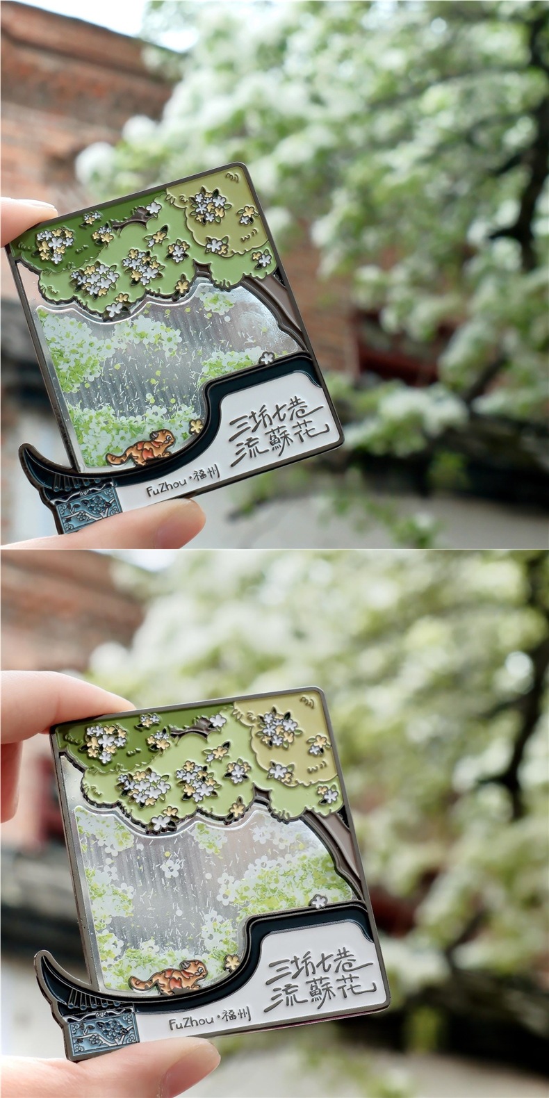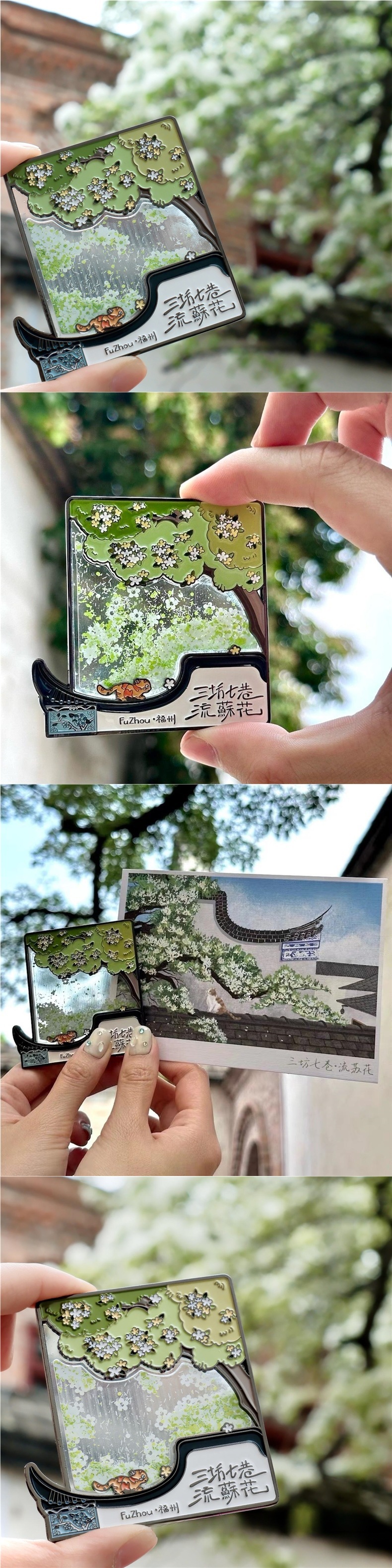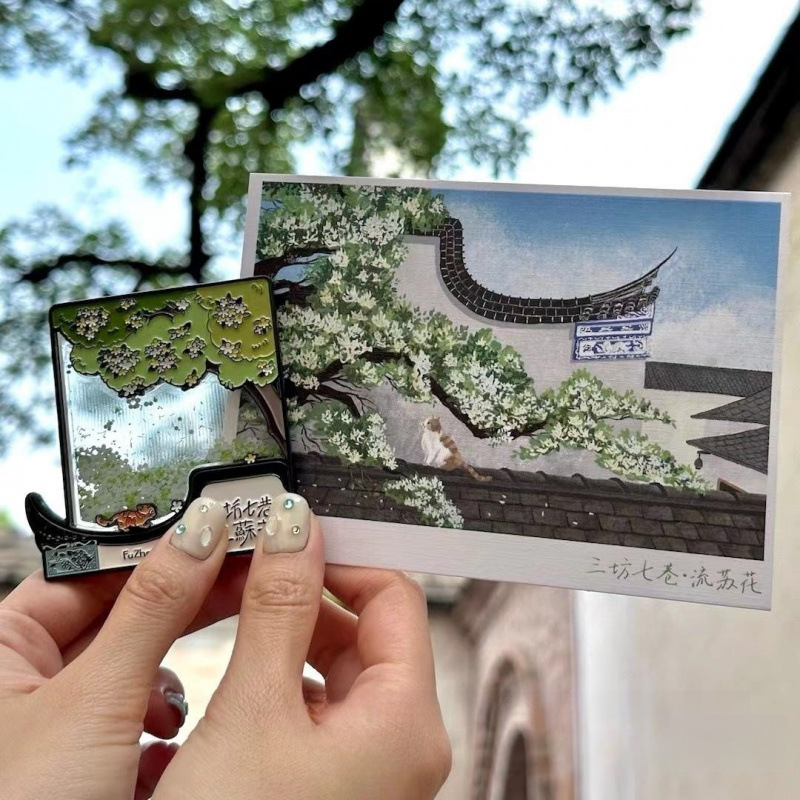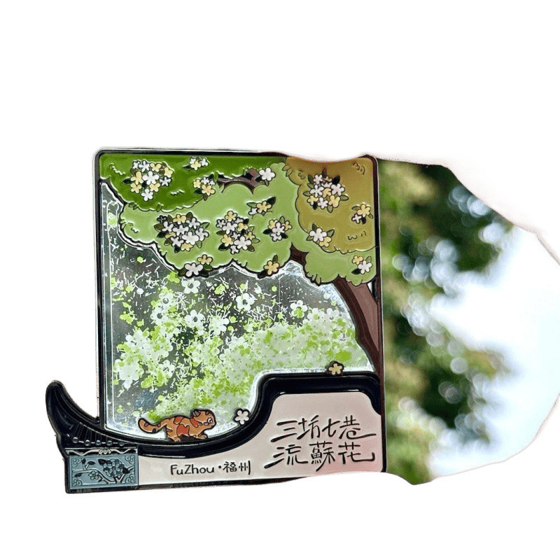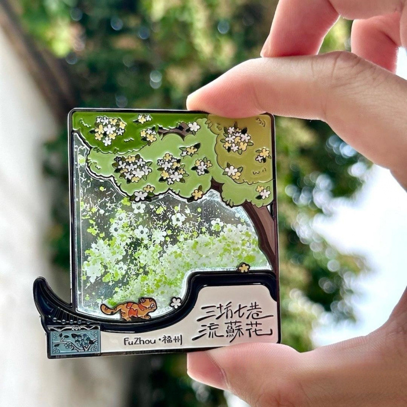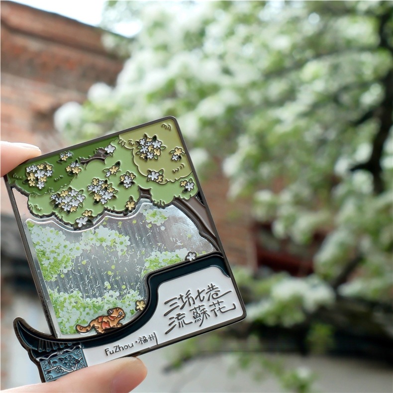 Fuzhou Cultural and Creative Sanfang Qixiang Metal Flowing Sand Refrigerator Sticker with Hand Gift Gift Jewelry Travel Chronicles
