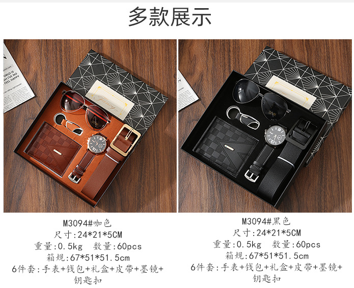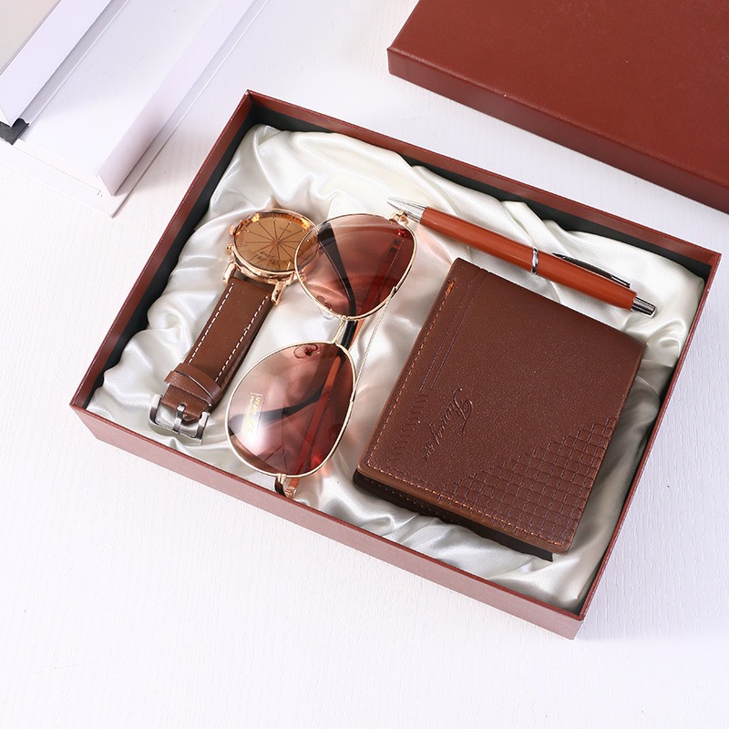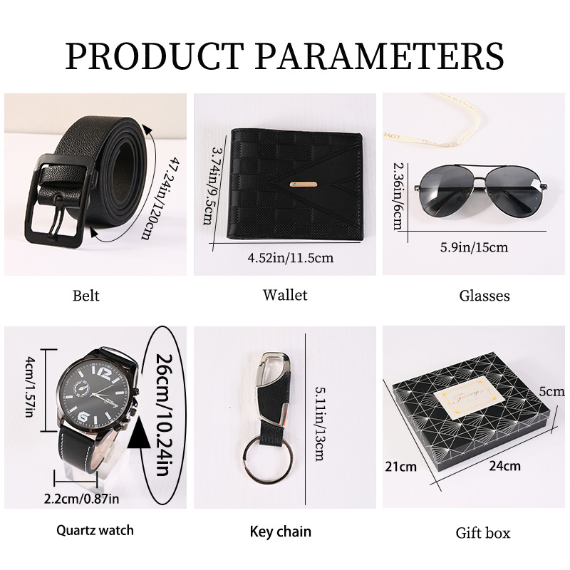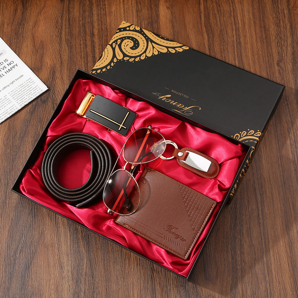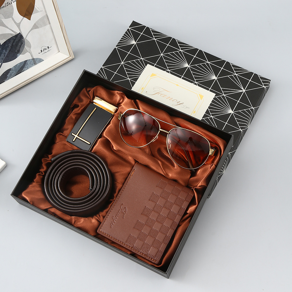 Cross border gift set, men's wallet, belt, quartz watch, sunglasses, souvenirs, Father's Day, Valentine's Day gift for boyfriend