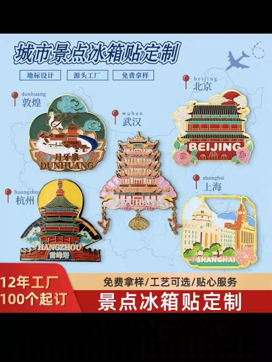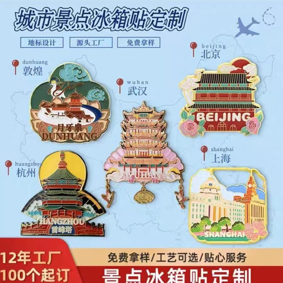 Металлический холодильник, мультипликационный рисунок, архитектурные достопримечательности, магнитные наклейки, креативные сувениры