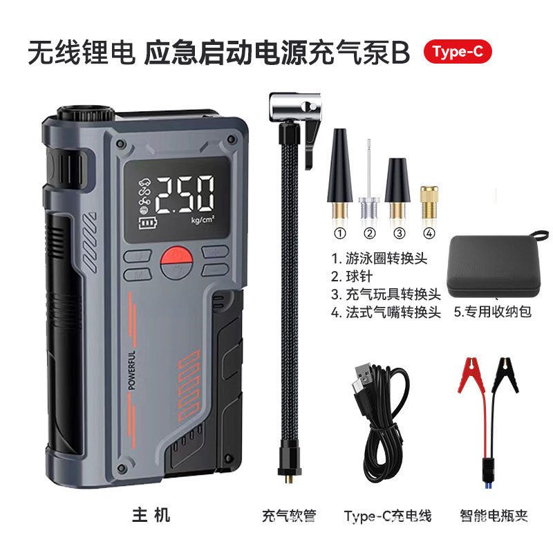 【主要功能】:充气、照明、测胎压、充电宝、SOS、启动车辆