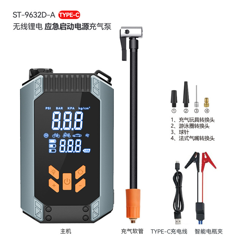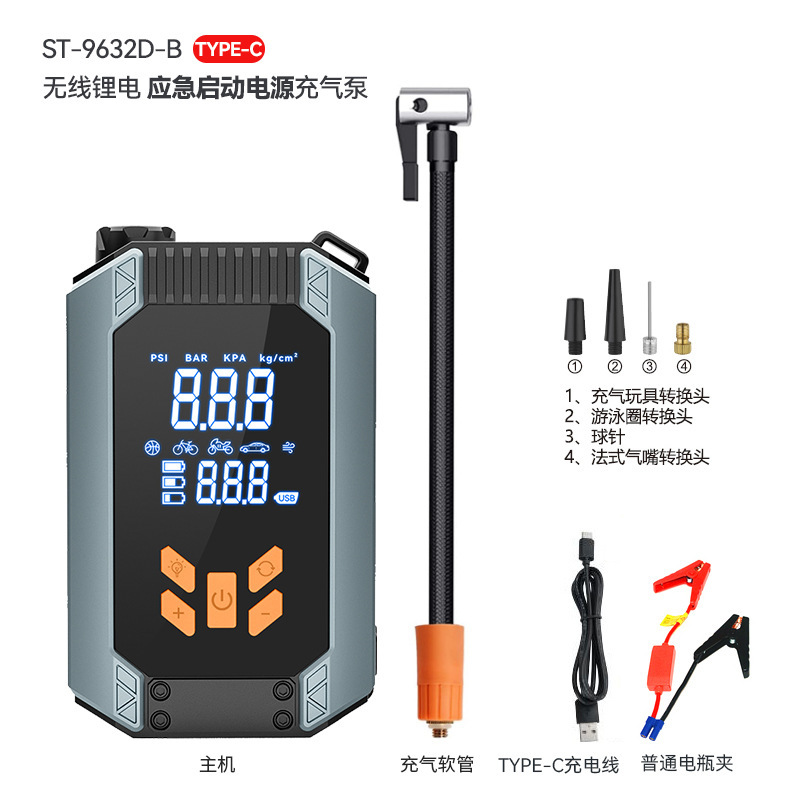 Car mounted wireless inflation pump, portable emergency start power supply integrated machine, automatic tire inflator for automobiles