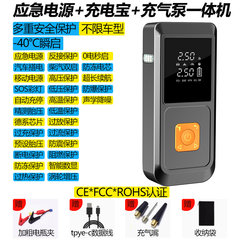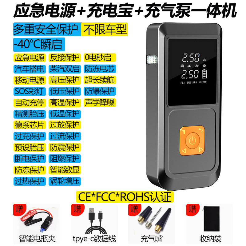 Car emergency starting power supply, car mounted inflation pump integrated machine, multifunctional battery, ignition device, power bank