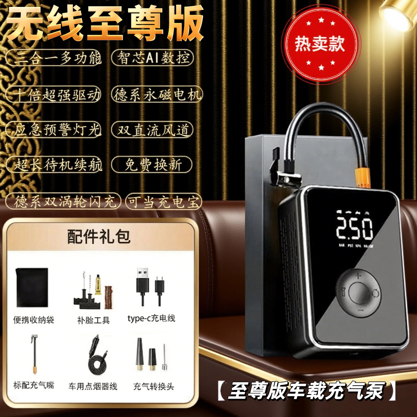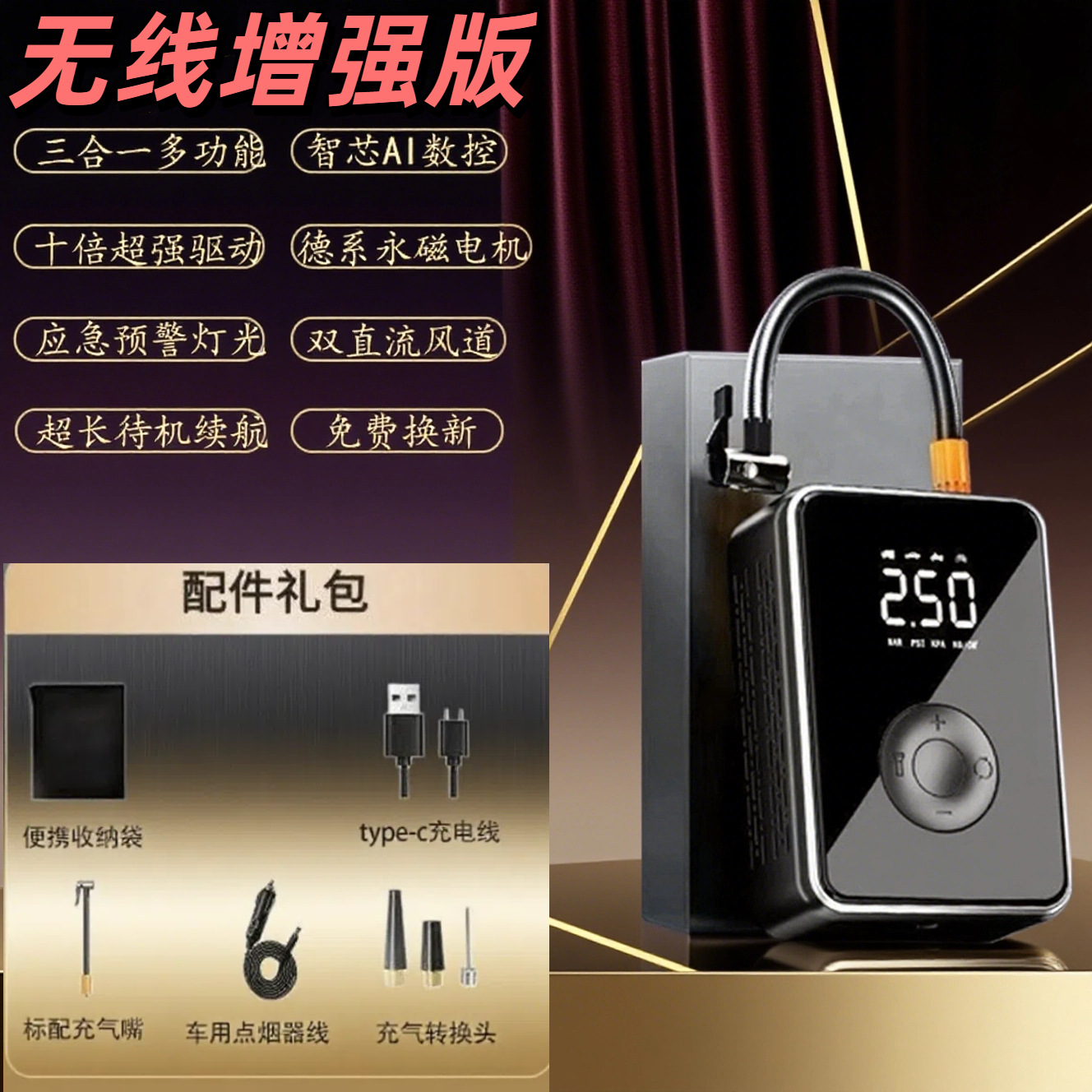 Cross border car inflatable pump emergency start power all-in-one machine, mini power on all-in-one wireless portable inflatable pump