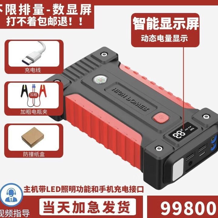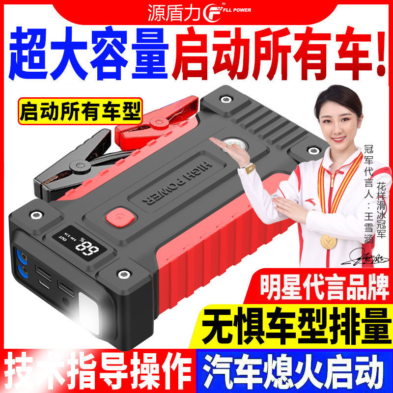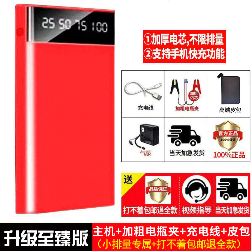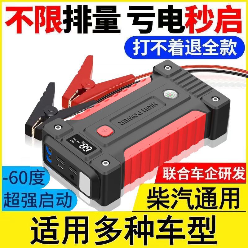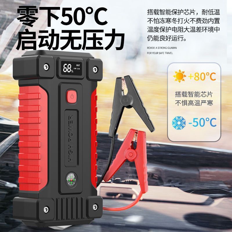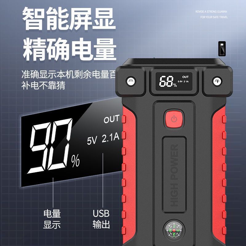 Car emergency starting power supply 12V, portable backup battery, power on, ignition, inflation pump