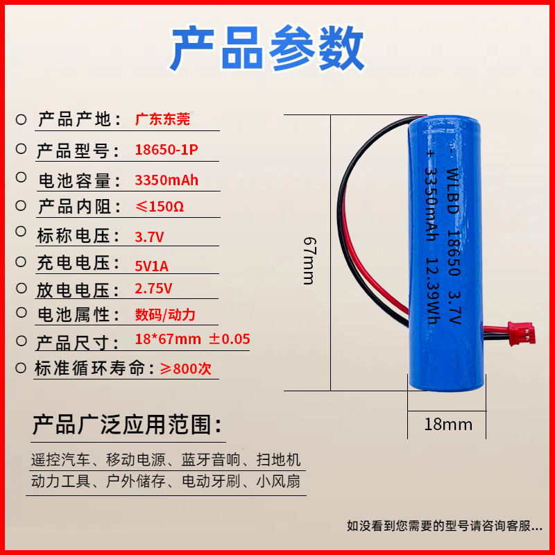 | 使用范围 | 便携式投影仪;水表电池;智能手环;暖手宝;电子玩具枪;激光笔;电子书;照相机;应急灯;露营灯;充气泵;榨汁机;应急灯电池应急电源电池;医疗器械;除螨仪;暖宫宝;车载用品;美容仪;游戏机;玩具模型;按摩仪;指纹锁;LED照明;可视门铃电池;数码相框;扫码器;智能穿戴理疗;挂脖风扇;电动行李箱;无线键盘;电子导航仪;ETC;喷雾器;无线鼠标;键盘;可穿戴设备;声卡;手持风扇;个人护理电子产品;家用吸尘器;电子消费产品 |