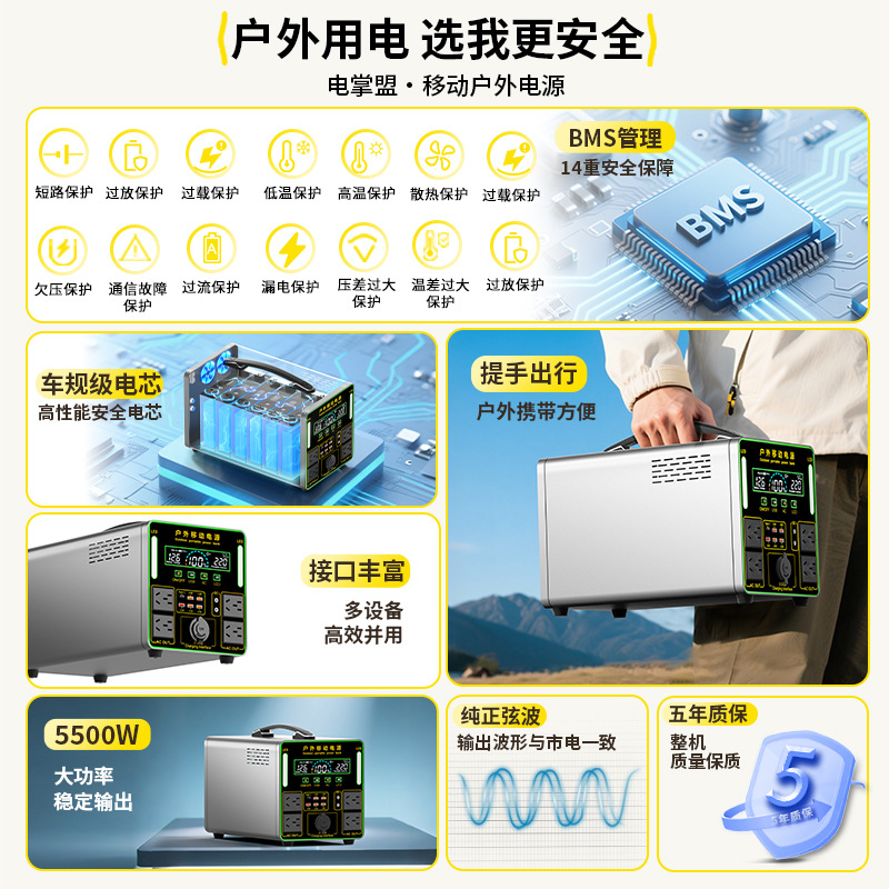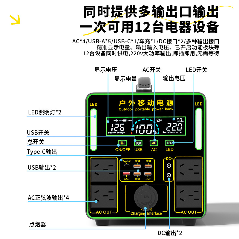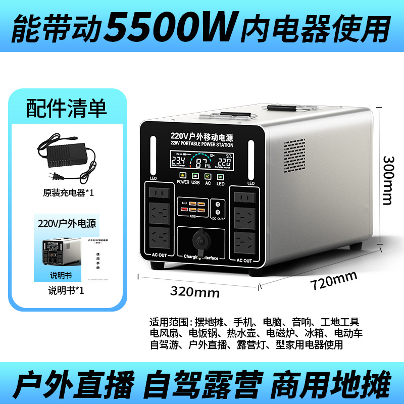 220V outdoor mobile power supply with large capacity for self driving tours, setting up stalls, camping beds, live streaming, home refrigerators, backup cars
