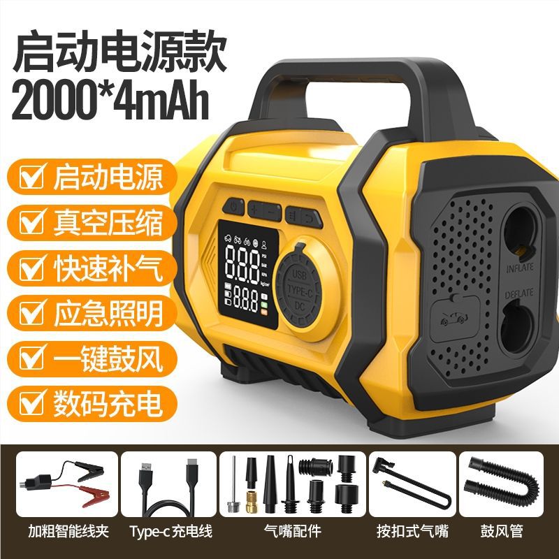 汽车应急启动电源大容量车载打火吹尘充气泵一体机紧急点火搭电宝