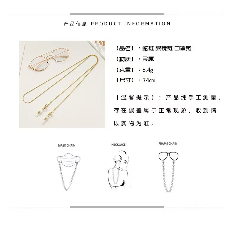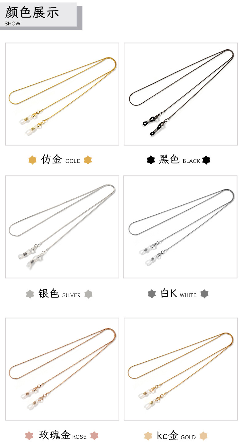 Metal eyeglass chain, high-end feel, snake chain, anti slip chain, simple sunglasses, mask chain, dual-use, elastic hanging rope, hanging chain