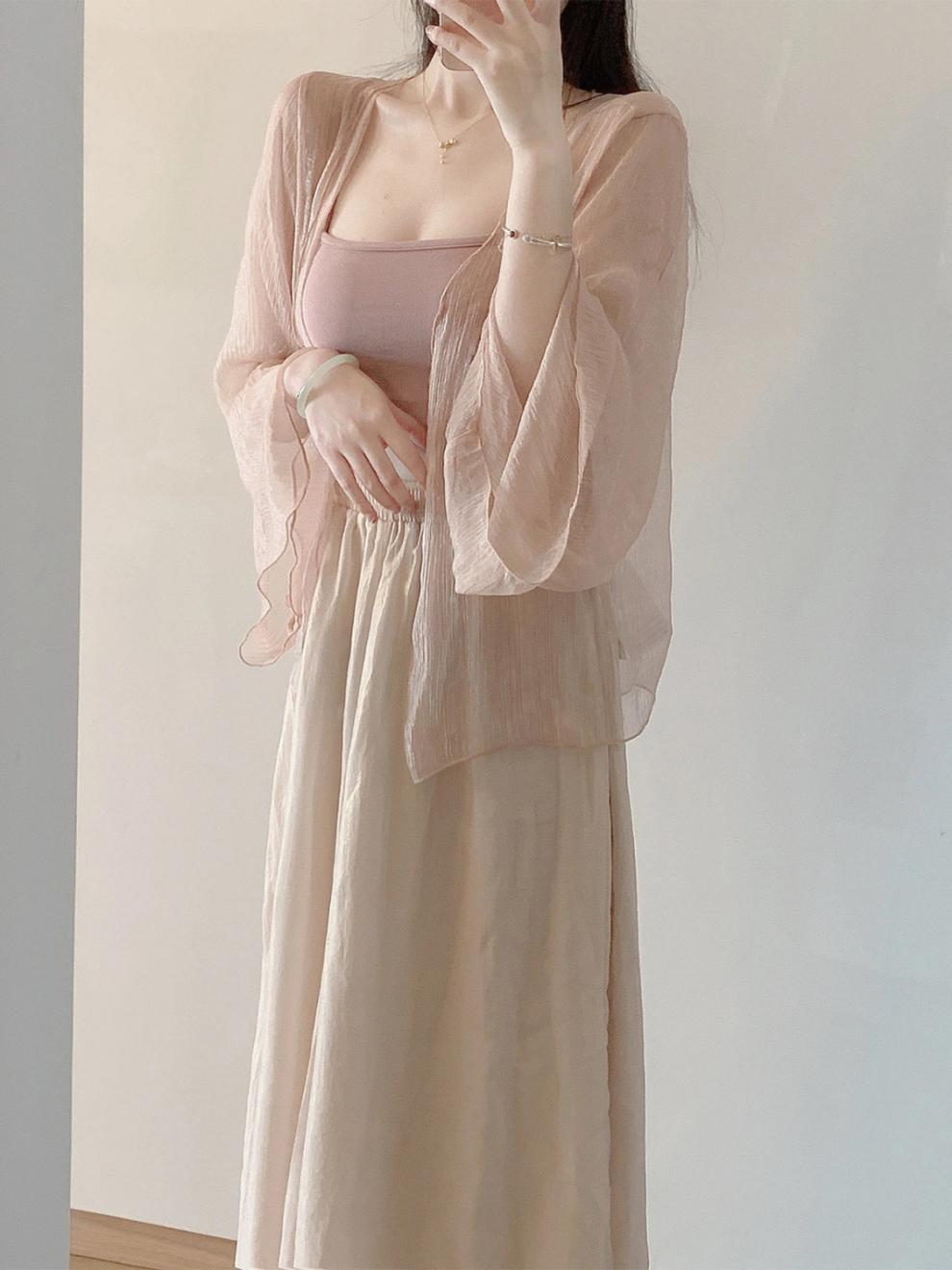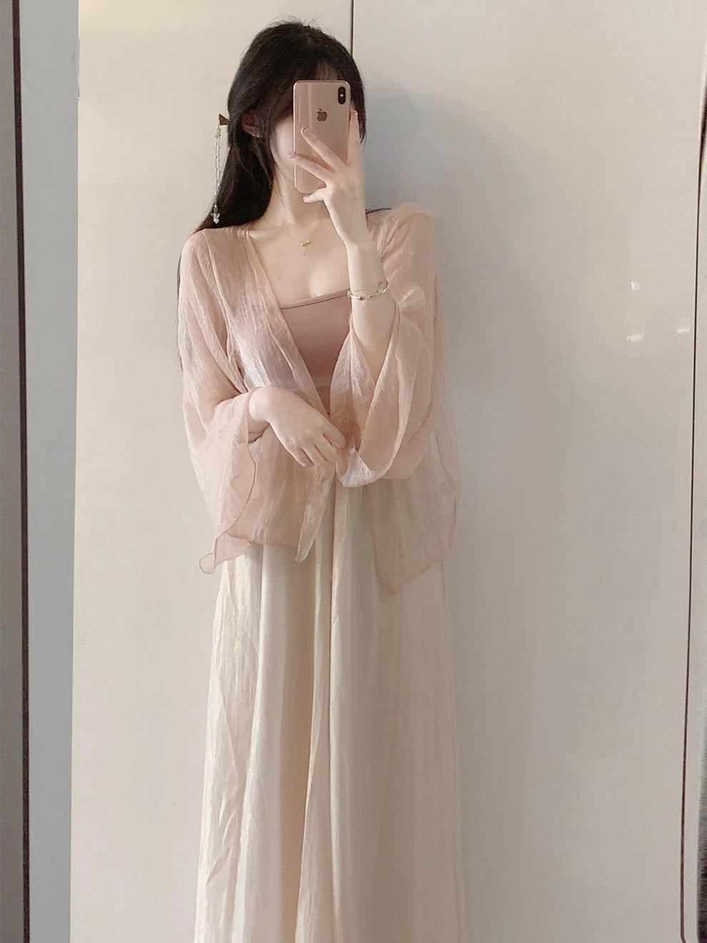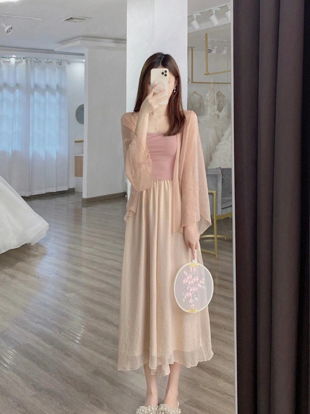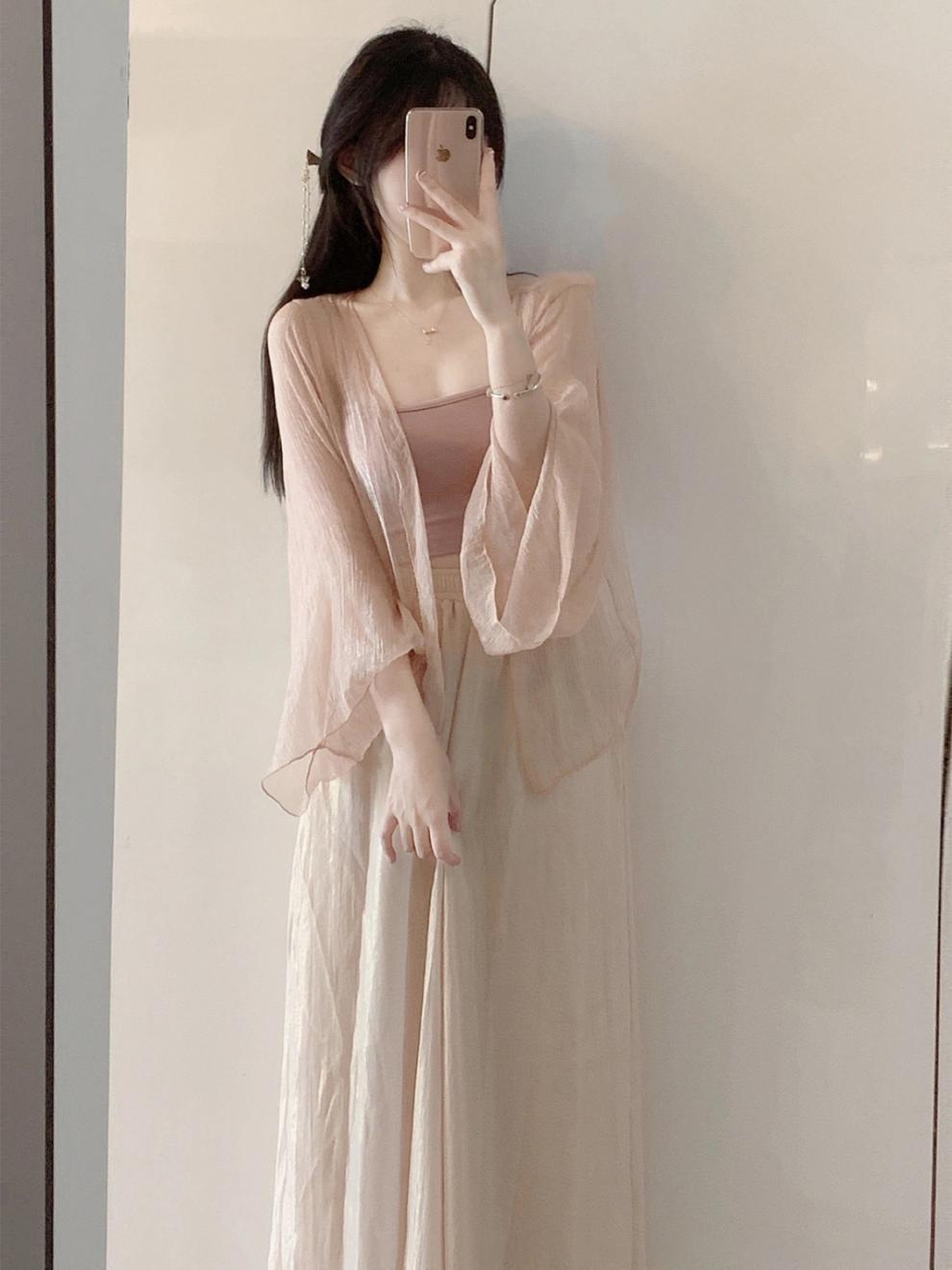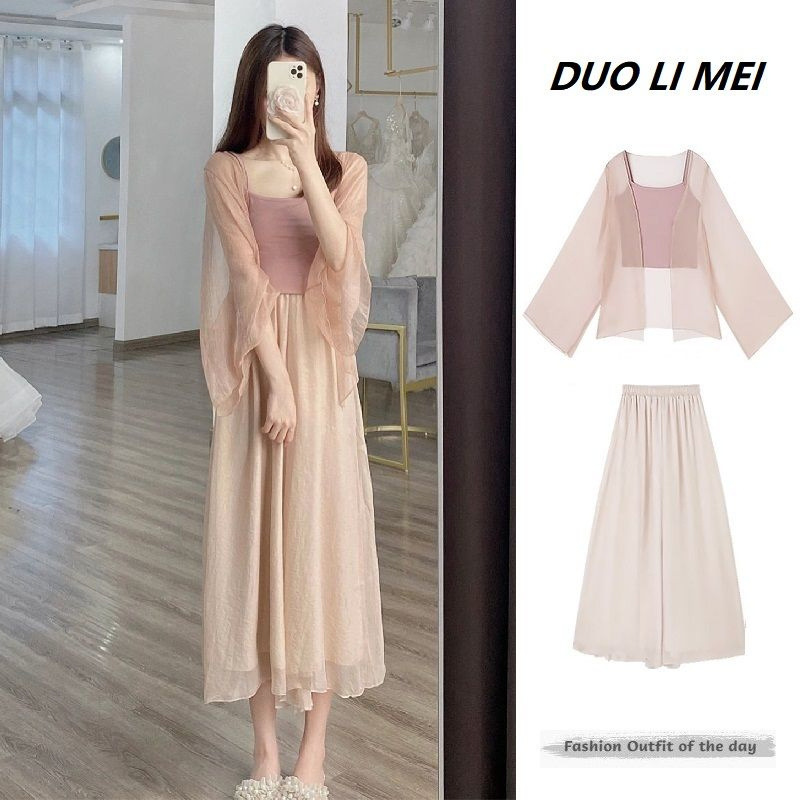 Summer thin glutinous salt women's clothing small, high-end, gentle style three piece set, Chinese style improved Hanfu set