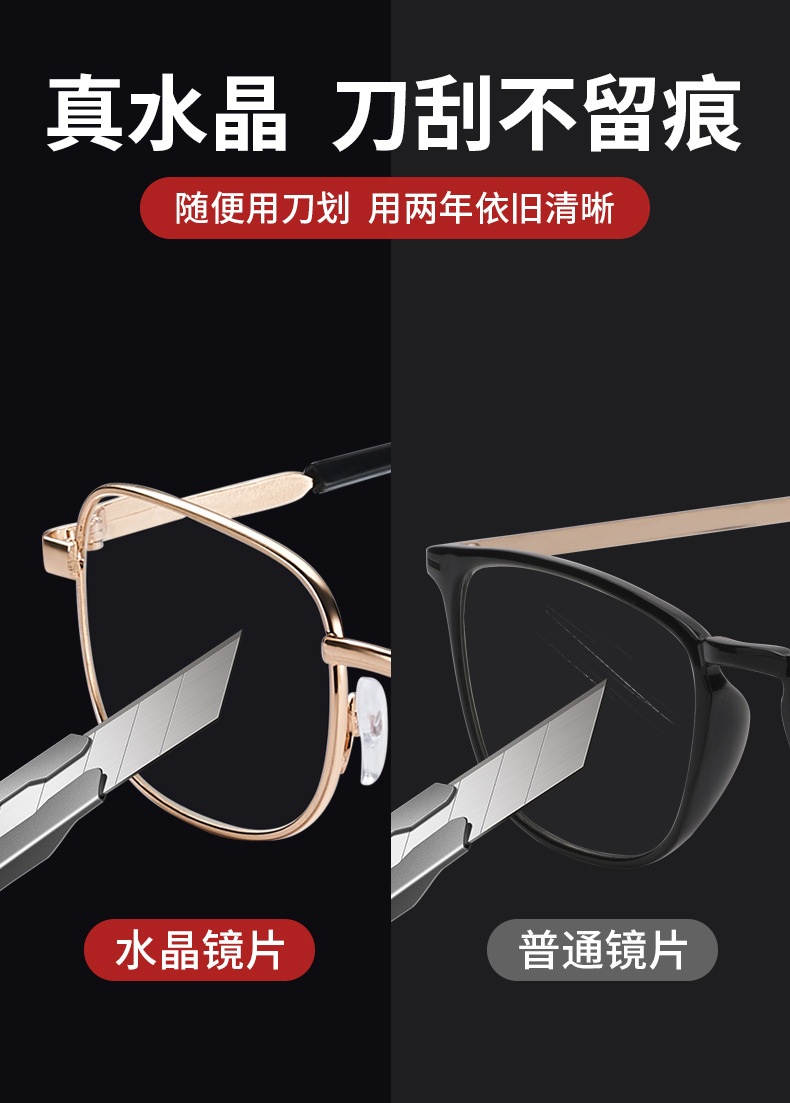 Best selling Donghai crystal glass HD eye protection anti fatigue small red book Tiktok wholesale presbyopia glasses from the same manufacturer
