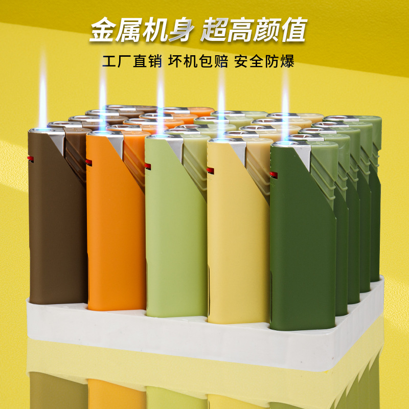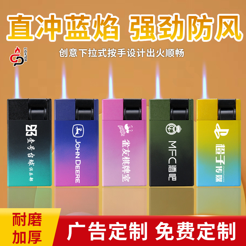 Metal windproof blue flame straight jet lighter printing advertisement inflatable logo laser engraving creative