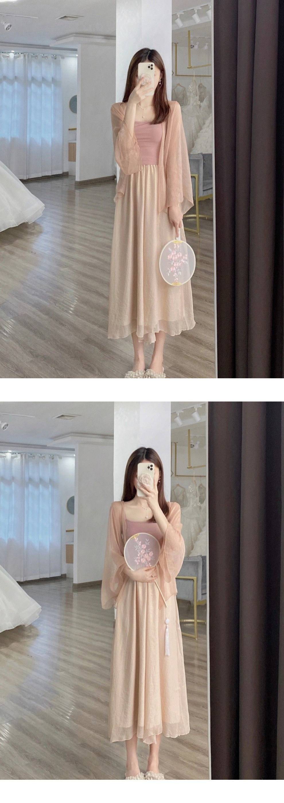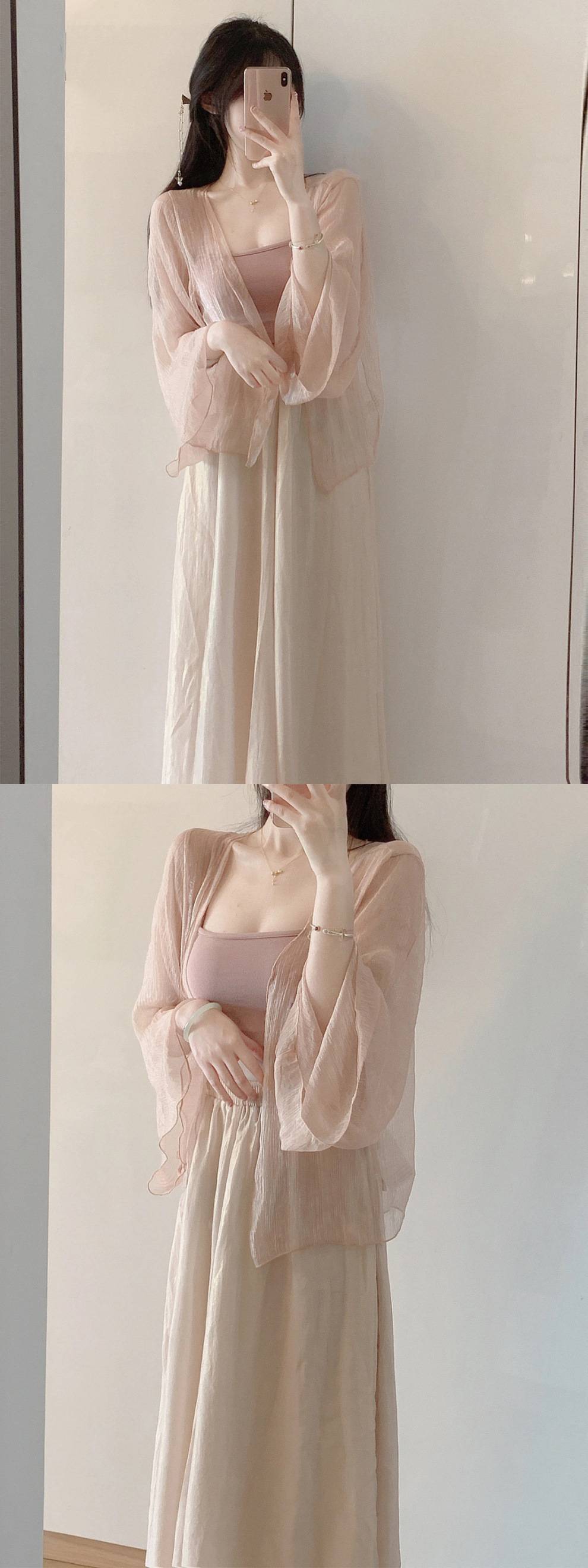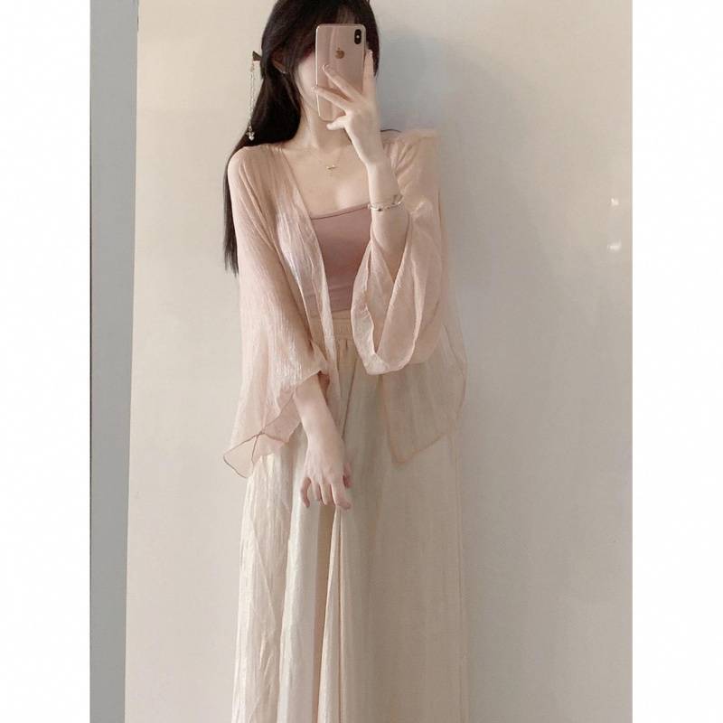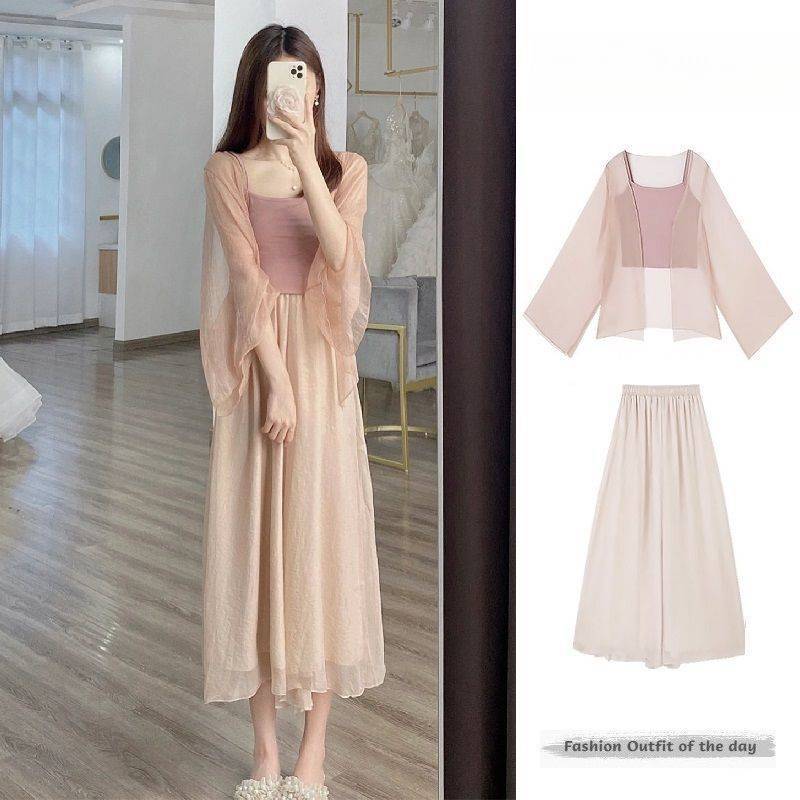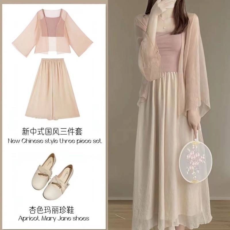 Small stature, high-end summer clothing, gentle summer three piece set, Chinese style, Chinese style, women's clothing, sticky style, salty Hanfu, sunscreen set