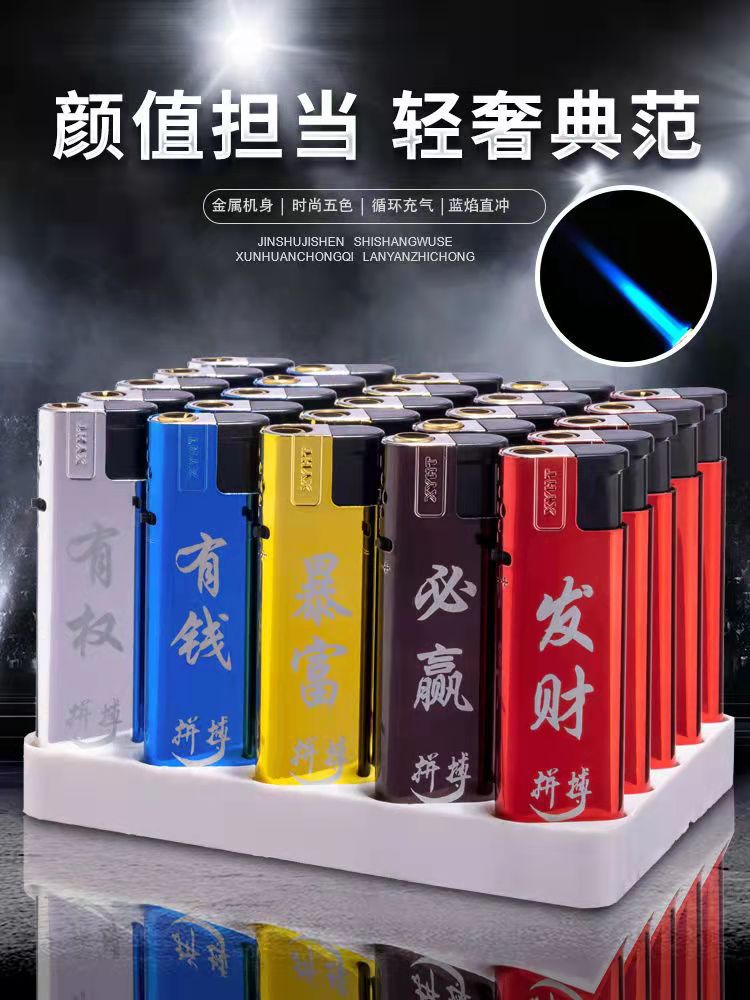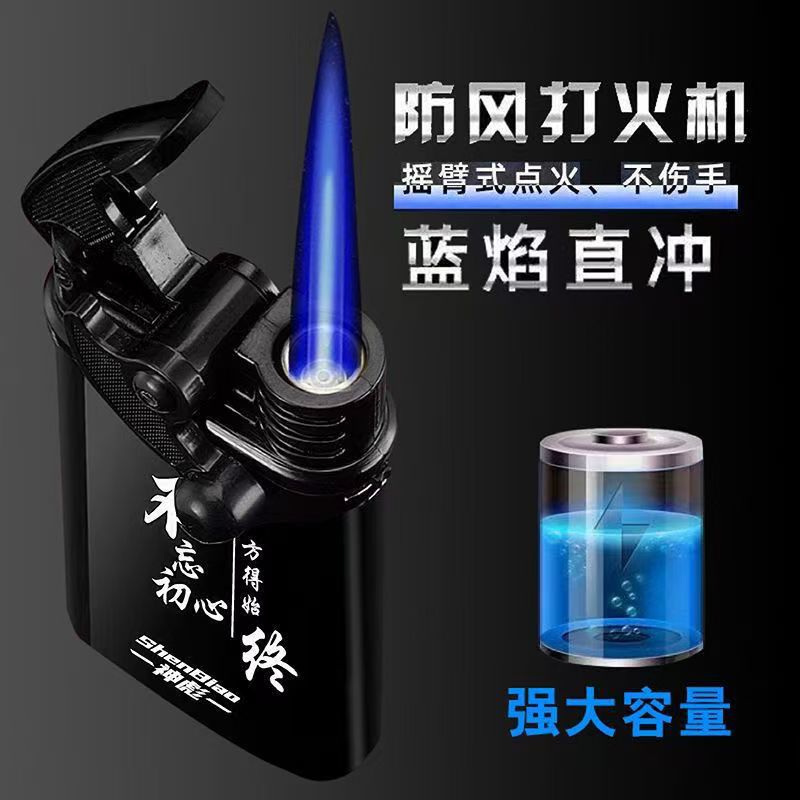 New Creative Phone Arm Inflatable Windproof Lighter with Metal Blue Flame Direct Charge Cool Men's Cigarette Lighting Inscription